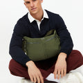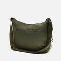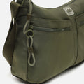 Sie ist aus weichem, mattem Polyester-Ripstop-Gewebe gefertigt, das abriebfest und leicht zu reinigen ist. Zu den Details, die den urbanen Stil der Tasche unterstreichen, gehören Bungee-Kordelzüge und Metallringe sowie ein Ton-in-Ton-Gummilogo M auf der Vorderseite. Das Material ist ideal für wechselhaftes Wetter, weist leichten Regen ab und trocknet schnell.