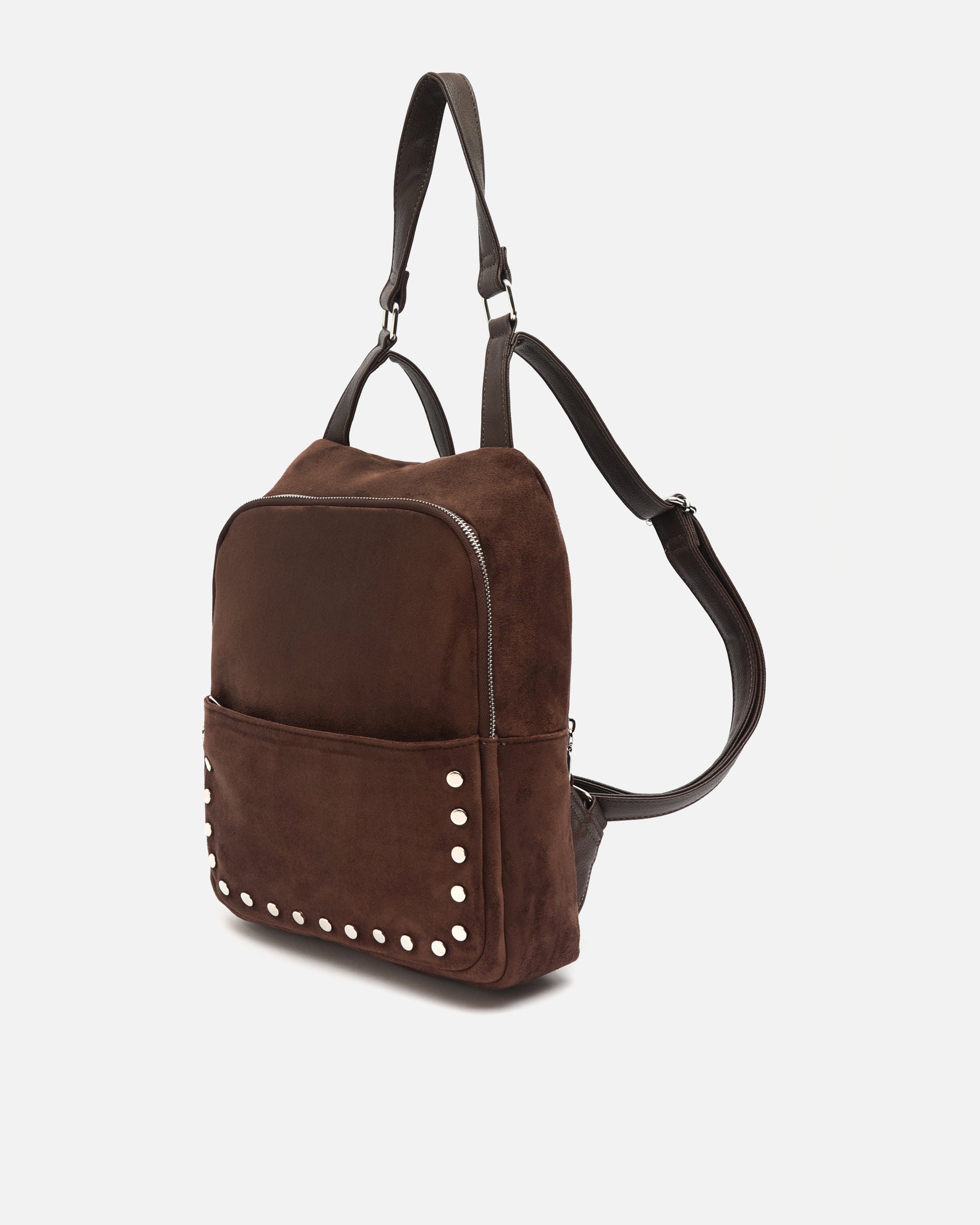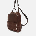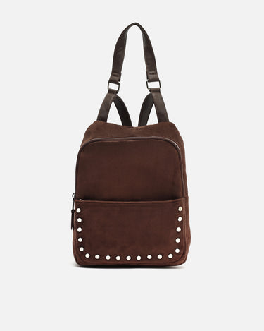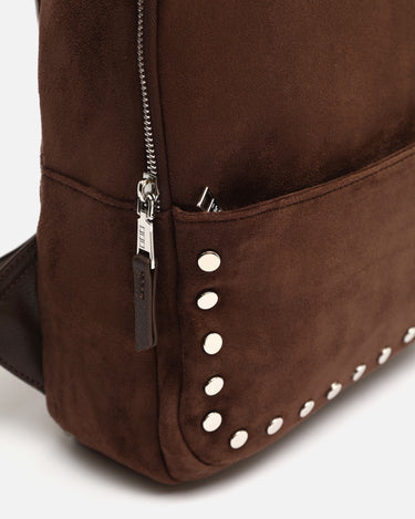 Diebstahlsicherer rucksack in wildlederoptik mit metallverzierungen