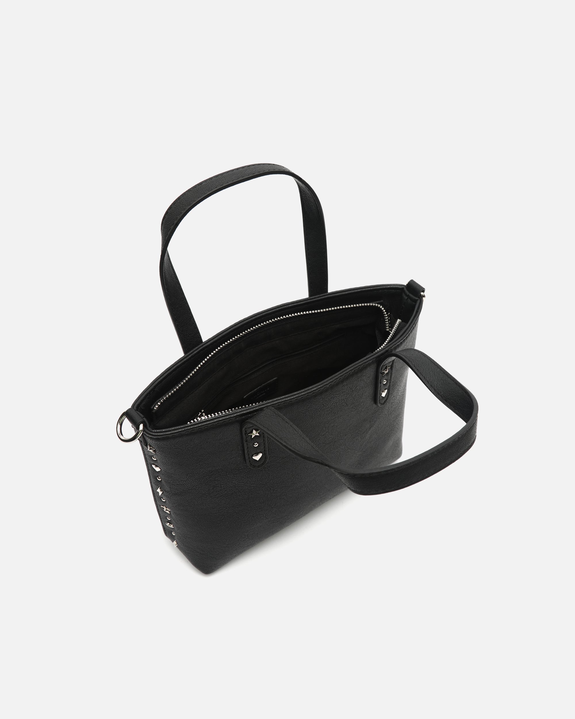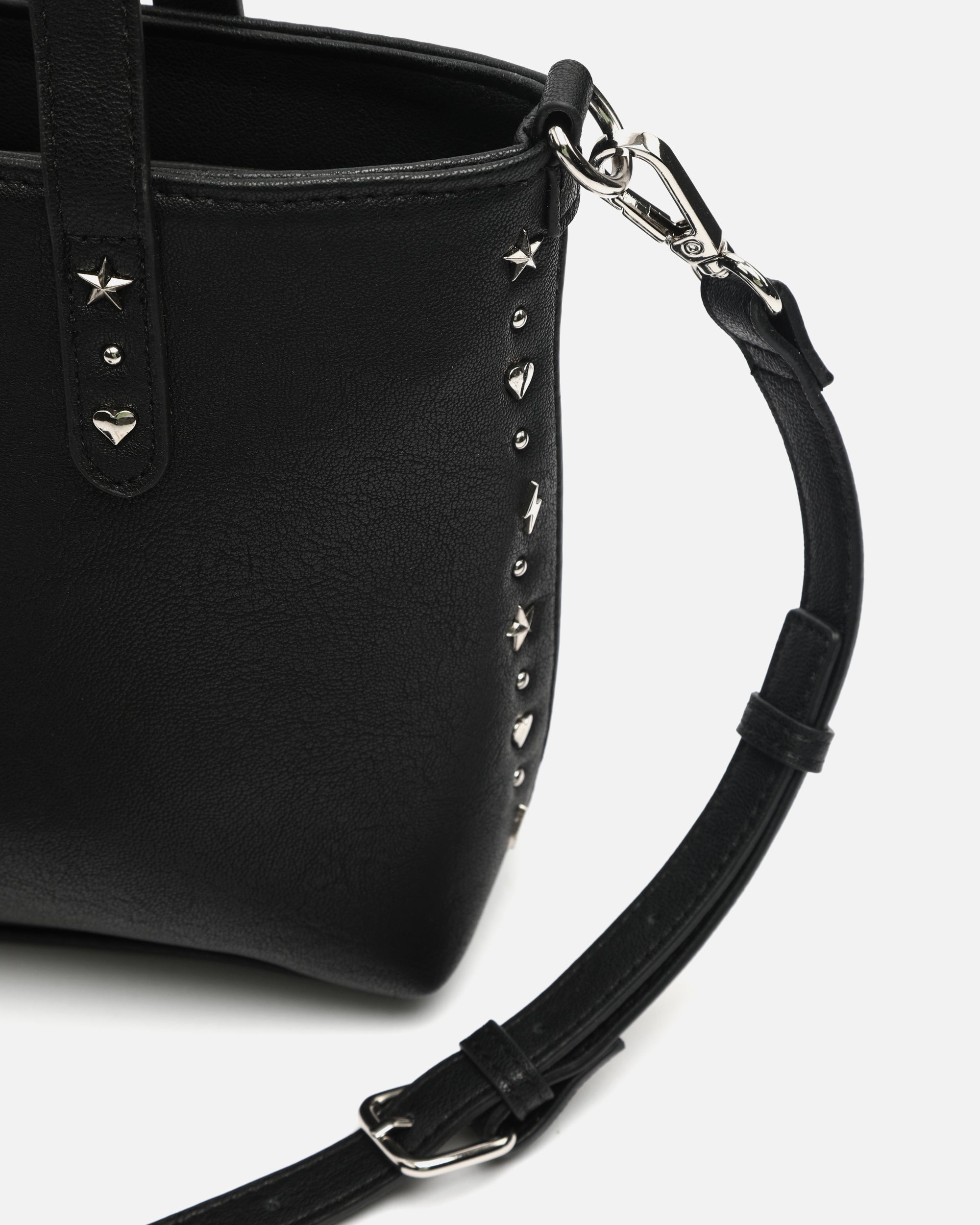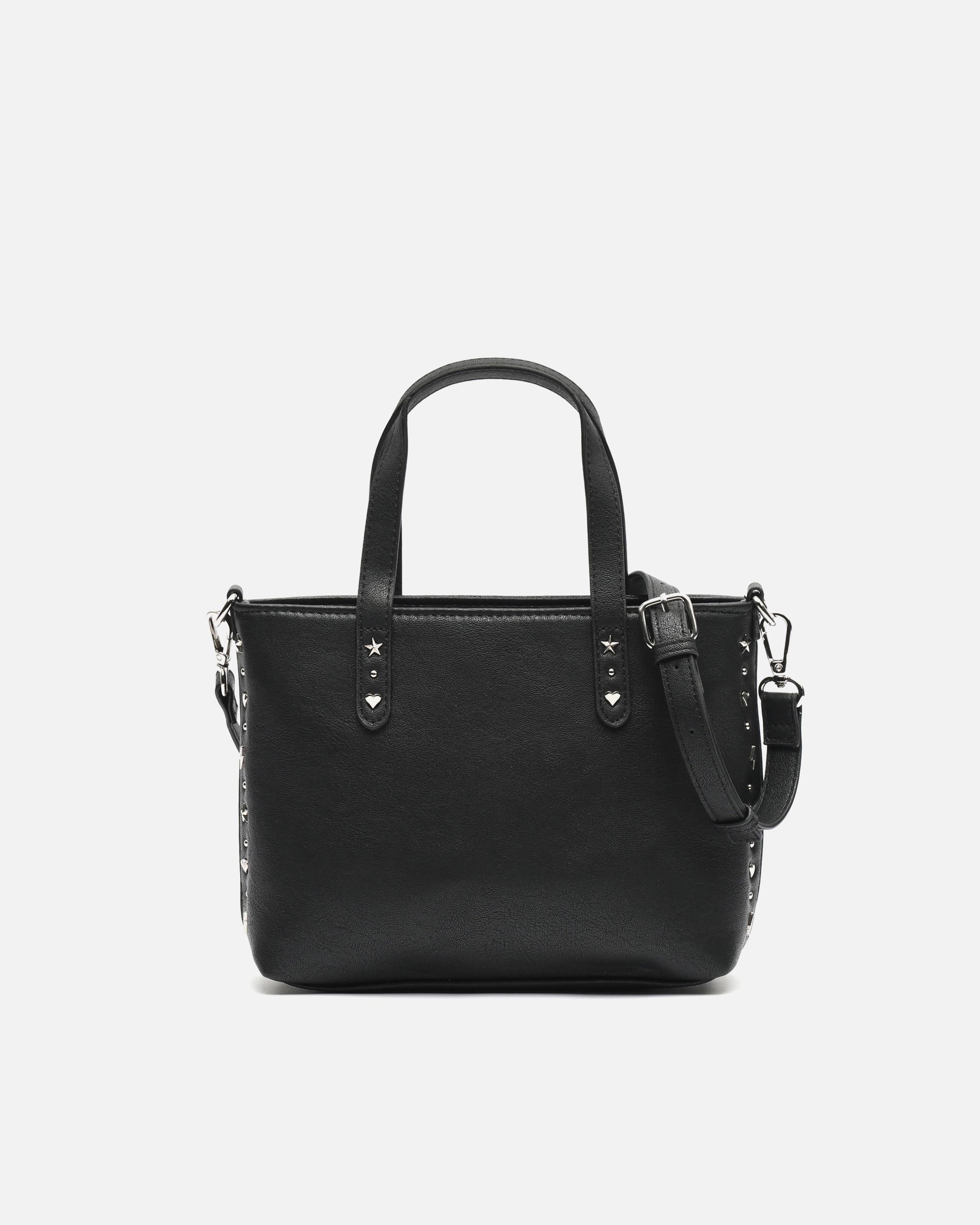 Kleine tragetasche mit schulterriemen und metallverzierungen