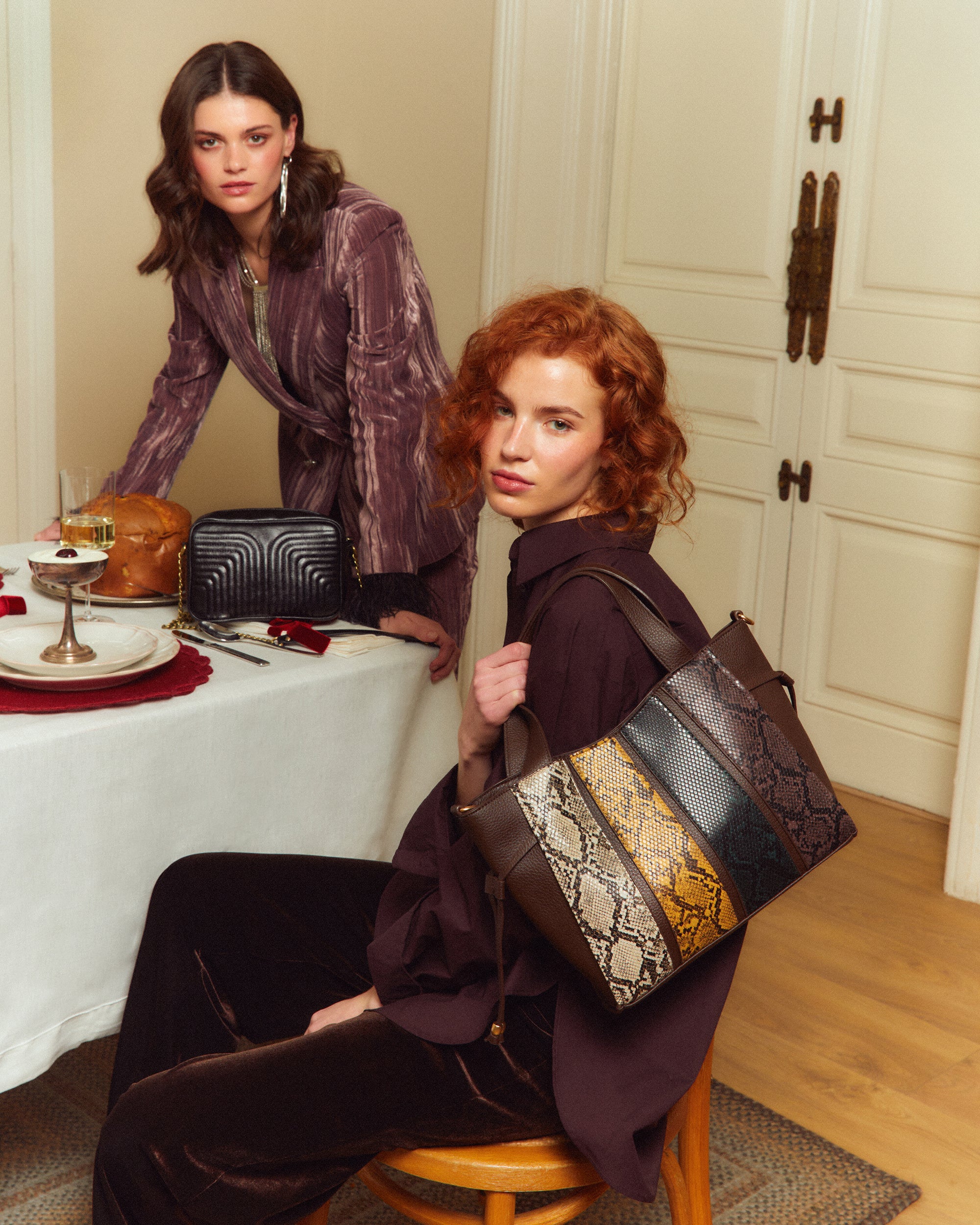 Umhängetasche mit herausnehmbarer kosmetiktasche und animal-print