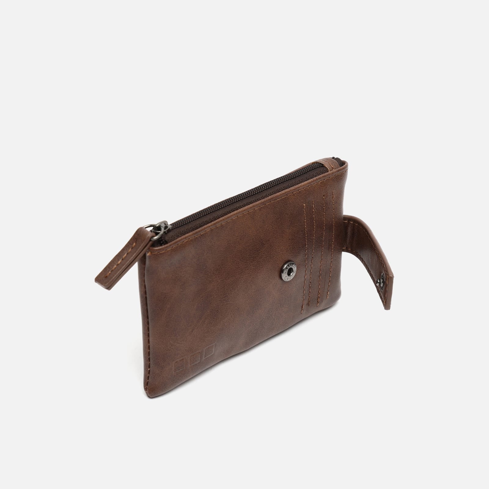 Das Misako Alfi Portemonnaie ist ein kompaktes und funktionelles Portemonnaie, in dem Sie Münzen und andere kleine Wertsachen leicht verstauen können. Sie verfügt über einen Druckknopfverschluss und hat die perfekte Größe, um sie in jeder Tasche oder Handtasche zu tragen. Dieses zeitlose Accessoire aus glattem Leder mit mattem Finish verfügt über zwei vertikale Kartenfächer und eine Lasche mit Metallverschluss, die die Karten sicher hält und ein Verrutschen bei Bewegungen verhindert. Auf der Vorderseite befindet sich ein zusätzliches flaches Reißverschlussfach, in dem Quittungen oder Schlüssel diskret aufbewahrt werden können. Die vernickelten Beschläge und Griffe werten das Design auf und sorgen für Langlebigkeit.