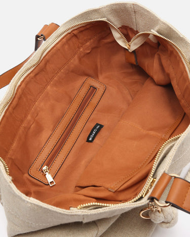 Die Misako Shopper-Tasche ist der perfekte Verbündete, um Ihre Habseligkeiten auf stilvolle und funktionelle Weise zu transportieren. Sie verfügt über ein geräumiges Hauptfach und eine Innentasche mit Reißverschluss, in der Sie Ihre persönlichen Gegenstände sicher und organisiert aufbewahren können. Die Tasche wird mit einem abnehmbaren Kordelzug geliefert, der der Tasche einen Hauch von Stil und Vielseitigkeit verleiht. Sie können es als dekorative Verzierung oder als praktische Möglichkeit zur Sicherung Ihrer Habseligkeiten verwenden. Mit ihrem geräumigen Design und dem Reißverschluss bietet Ihnen die Misako Shopper-Tasche den Komfort und die Sicherheit, die Sie täglich brauchen.