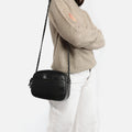 Sie verfügt über eine Außentasche mit Magnetverschluss, ein Hauptfach mit Reißverschluss und einen Schulterriemen, sodass Sie sie über der Schulter oder quer über den Körper tragen können.