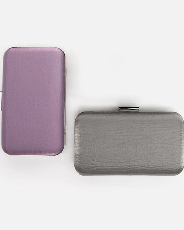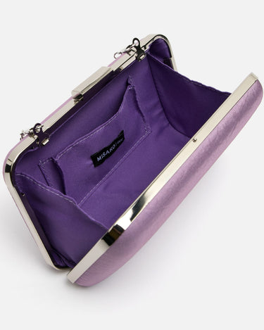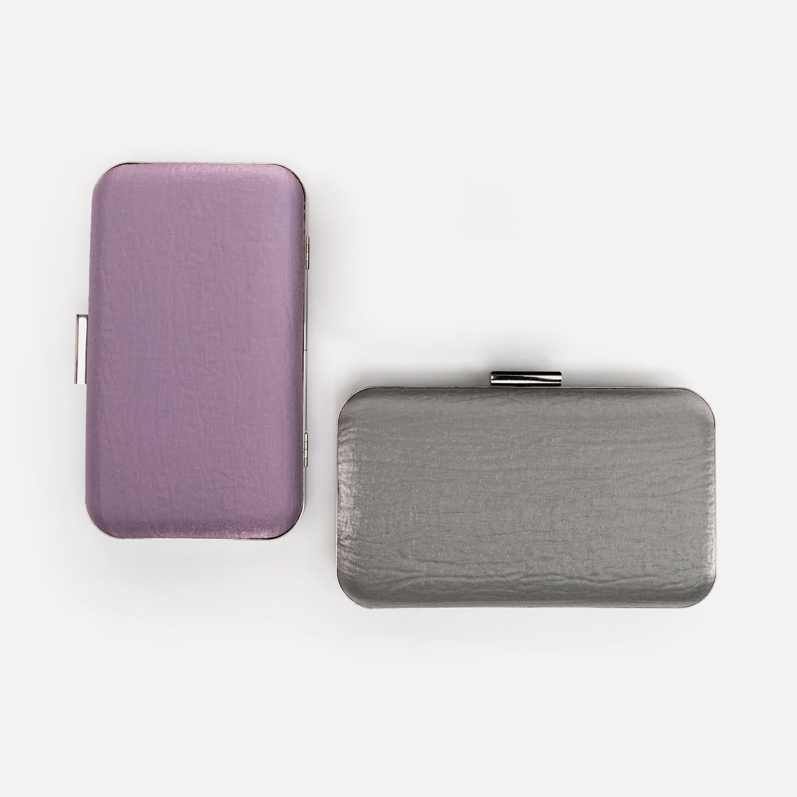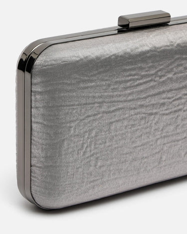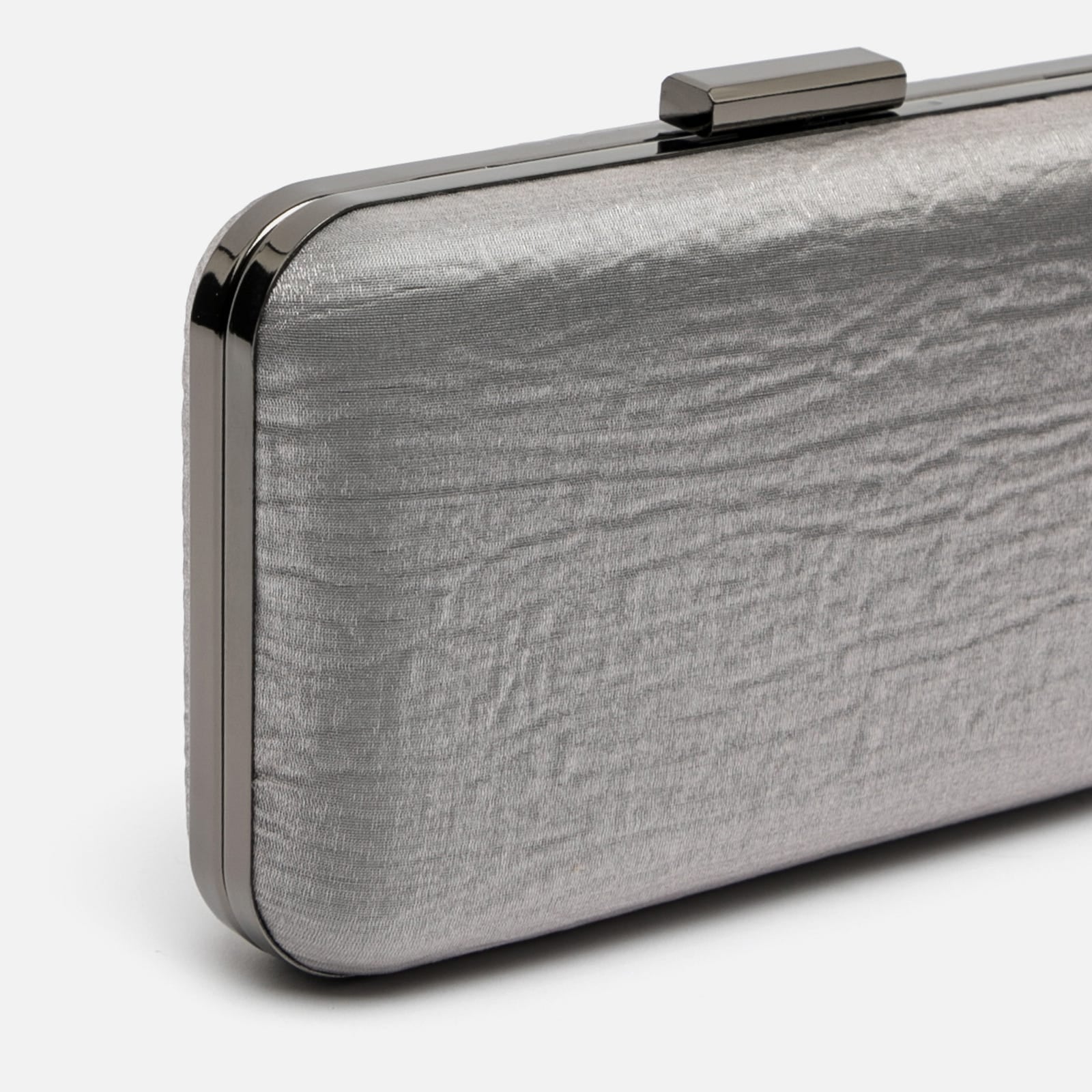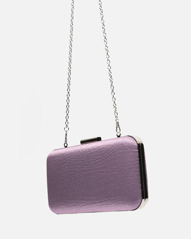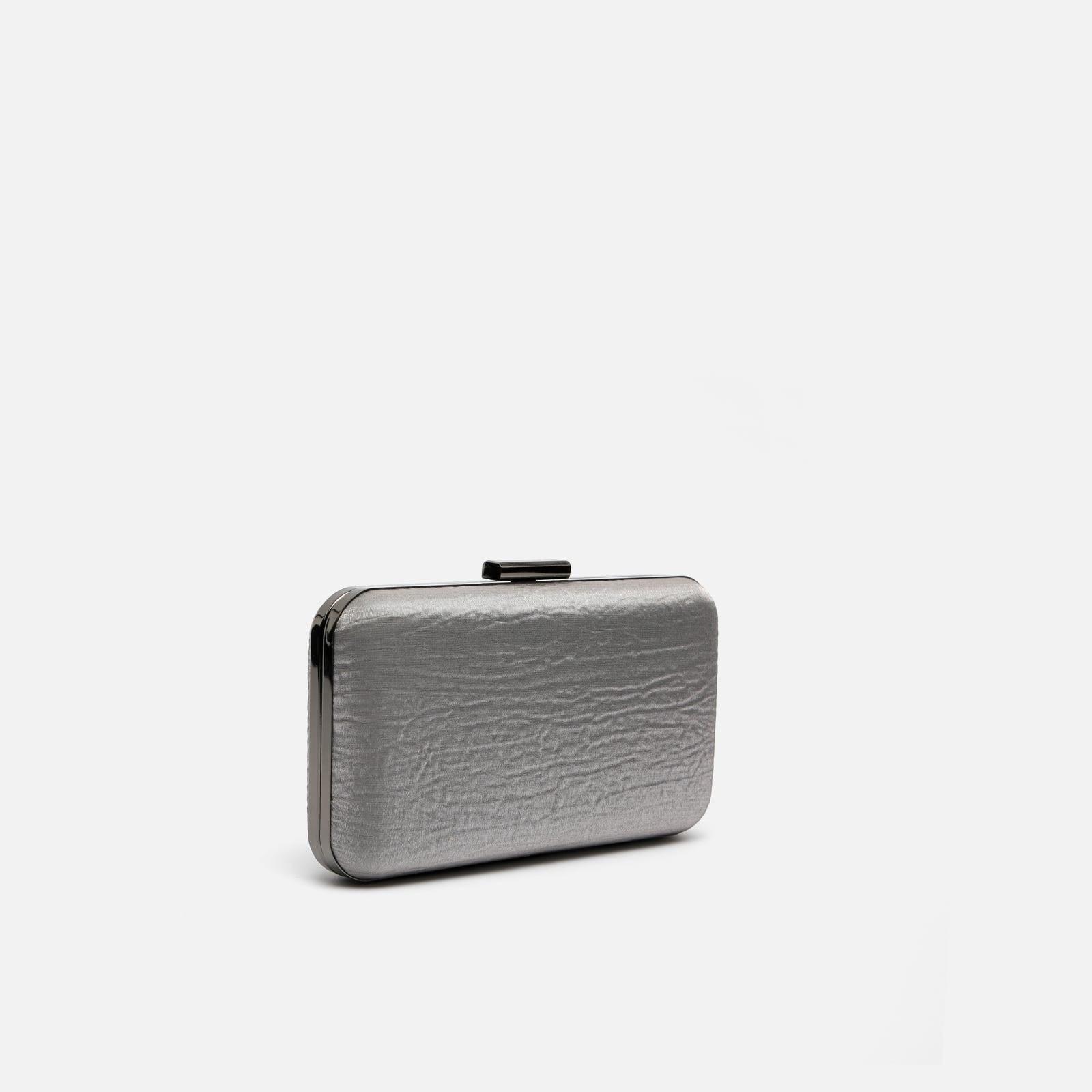 Satinierte Clutch-Tasche von Misako. Fach mit Metallverschluss. Enthält eine Kette.