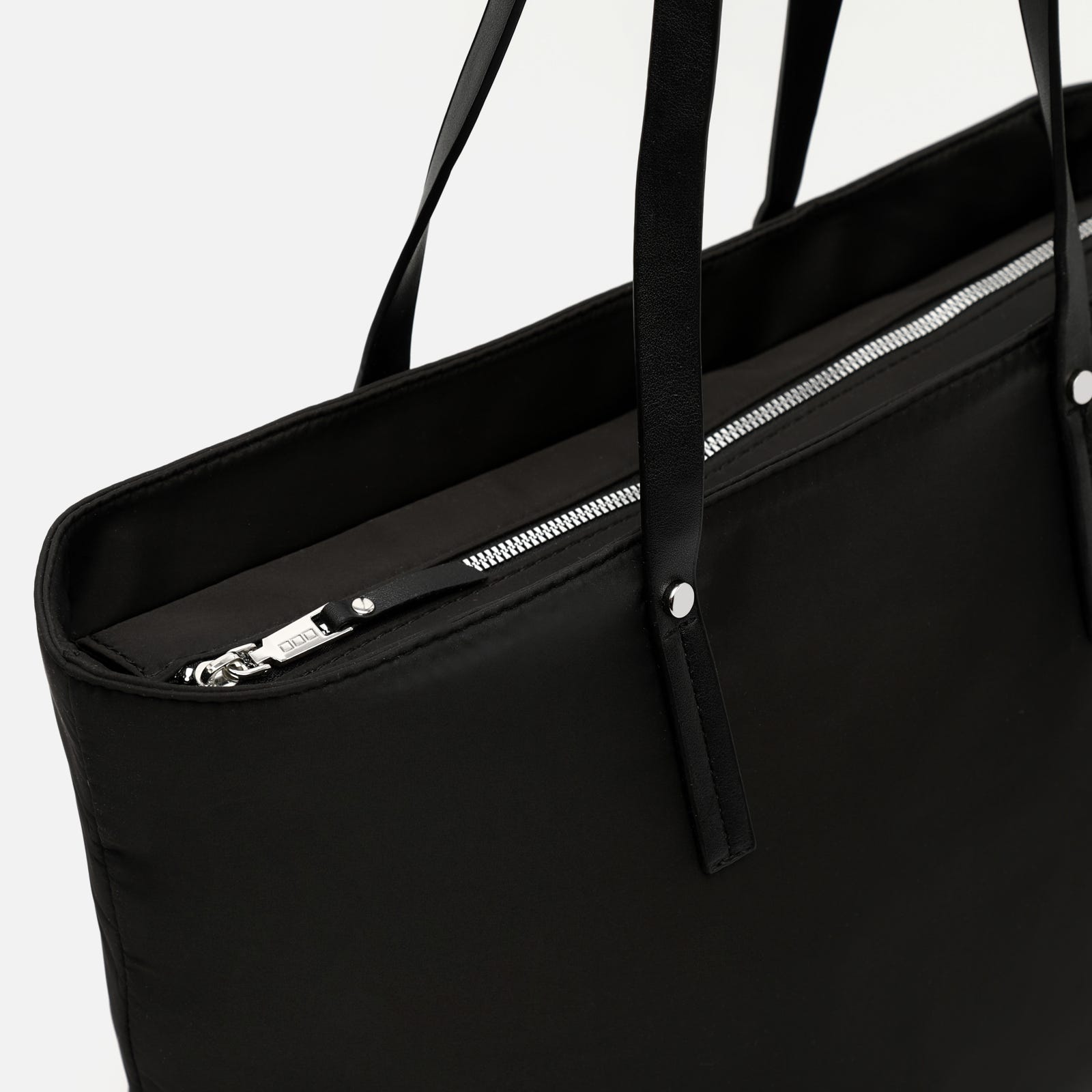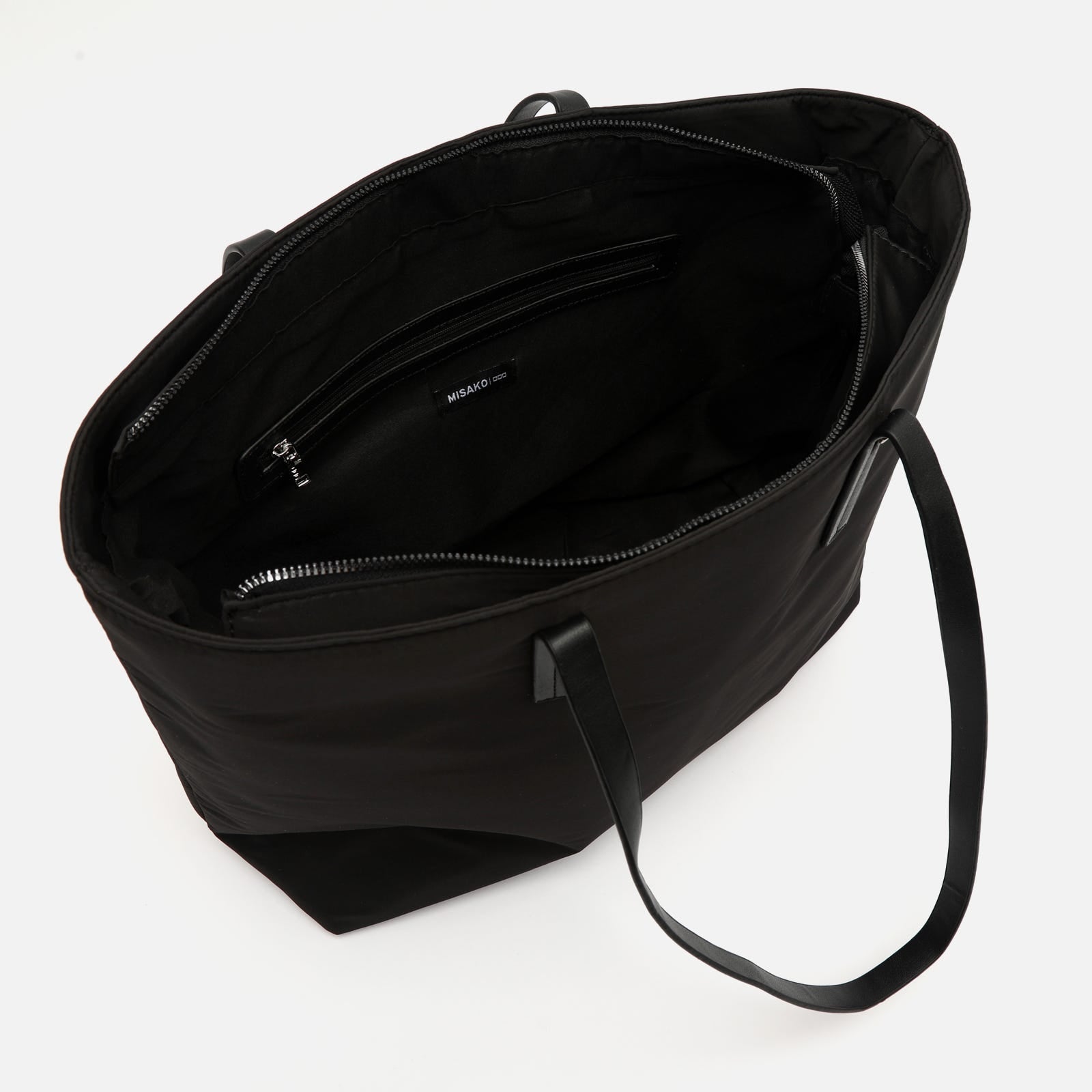 Lucre von Misako ist eine praktische und vielseitige Shopper-Tasche, die Sie im Alltag begleitet. Sie ist aus strapazierfähigem Nylon gefertigt und verfügt über Griffe in Lederoptik, die ihr einen eleganten Touch verleihen und ein bequemes Tragen über der Schulter ermöglichen. Ihr geräumiges Innenfach mit Reißverschluss oben eignet sich perfekt für Dokumente, Tablets, persönliche Accessoires und alles, was Sie im Laufe des Tages benötigen, und bietet stets absolute Sicherheit.