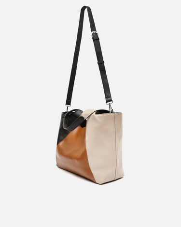 Dreifarbige umhängetasche mit abnehmbarem schulterriemen