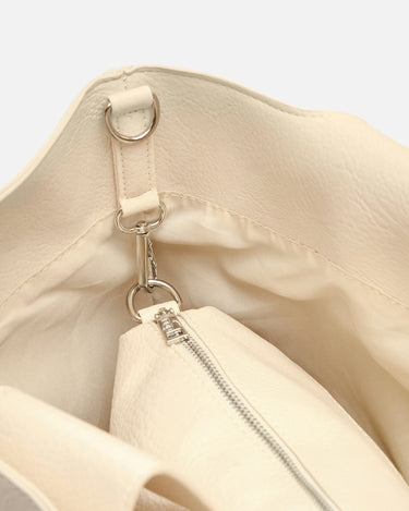 Sie ist aus Kunstleder mit mattem Finish gefertigt, fühlt sich weich an und hat eine flexible Struktur. Sie verfügt über ein geräumiges Hauptfach mit Magnetknopfverschluss und eine herausnehmbare Kosmetiktasche, die die Organisation erleichtert und auch separat als Beuteltasche oder Clutch verwendet werden kann.