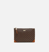 Bedruckte Monogramm-Kulturtasche. Verstärkungen an den unteren Enden. Reißverschlussverschluss.