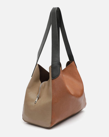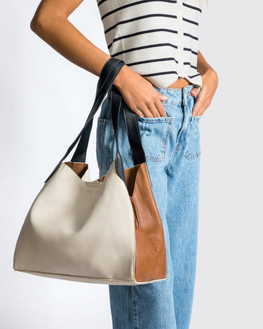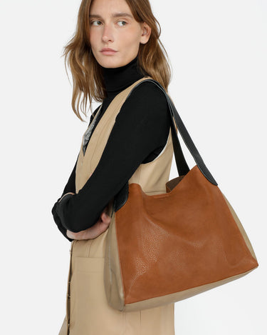 Die Misako Hobo Bag vereint Boho-Komfort und urbanen Stil. Die Tasche aus genarbtem Leder mit farbigem Blockdesign in kräftigen Farben ist das ideale Accessoire, um Ihren legeren und lässigen Frühlings- und Herbstlooks den letzten Schliff zu verleihen. Sie verfügt über ein großes, originelles Mittelfach, das als Innenteiler fungiert und es Ihnen ermöglicht, Ihre Habseligkeiten einfacher zu organisieren, sowie einen sicheren Platz für Ihre wertvollsten Gegenstände bietet. Und wenn Sie noch mehr Sicherheit brauchen, finden Sie in diesem Fach eine zusätzliche kleine Reißverschlusstasche - keine Ausreden mehr, um die Schlüssel nicht zu finden, die sich immer zwischen Ihren Sachen verstecken!