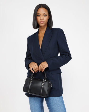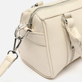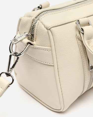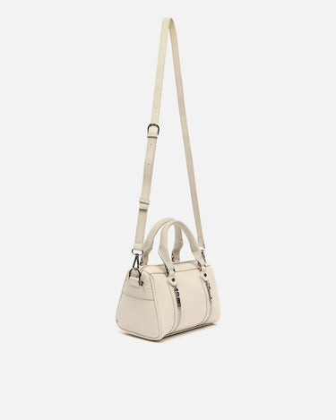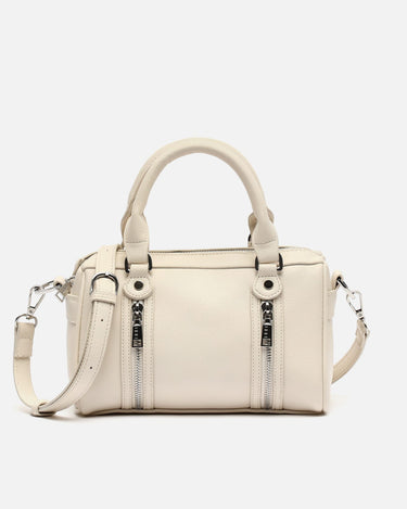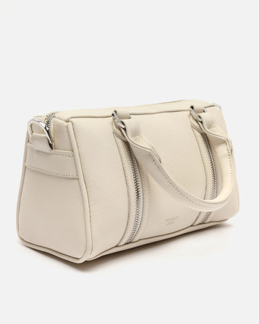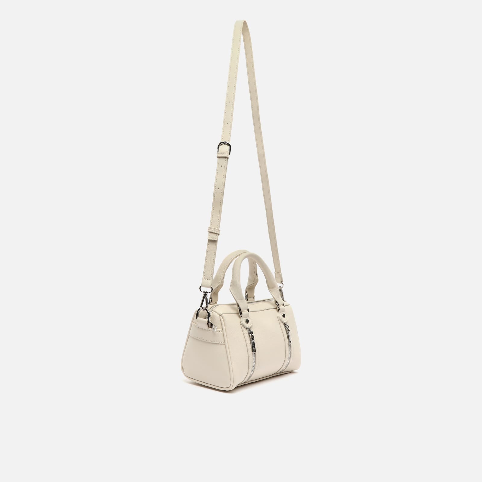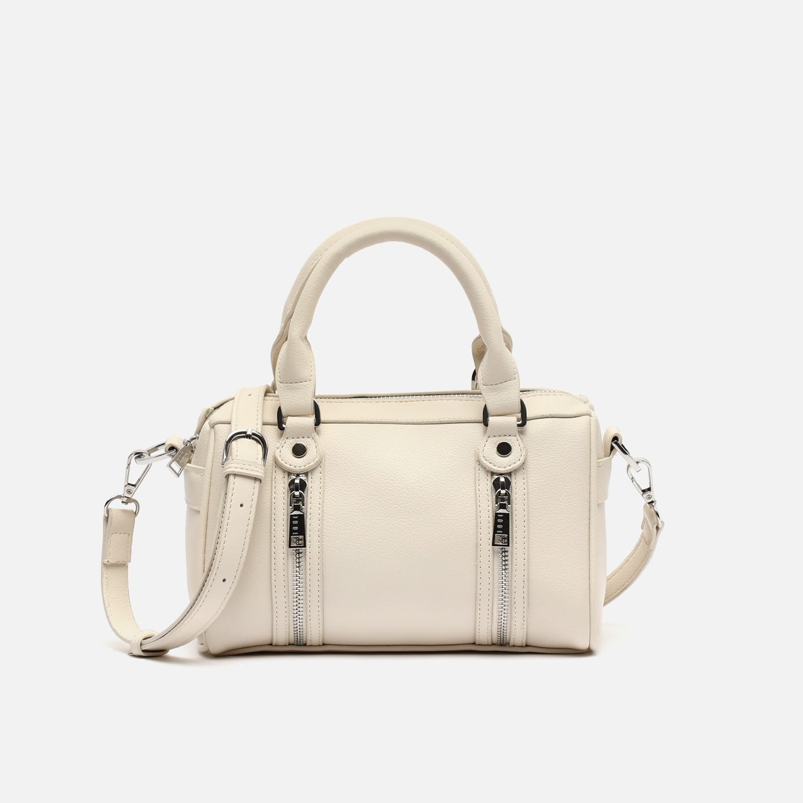 Diese kleine Tragetasche mit Schulterriemen passt dank ihrer neutralen Farben perfekt zu all Ihren Looks, ob tagsüber oder abends. Sie verfügt über ein Hauptfach mit einem Innenfach und einem Reißverschluss, in dem Sie Ihre Sachen sicher aufbewahren können. Der Reißverschluss auf der Vorderseite verleiht ihr einen modernen Touch. Die Tasche hat Tragegriffe und einen verstellbaren, abnehmbaren Schulterriemen, so dass Sie sie nach Belieben tragen können. Ideal für ein vielseitiges und funktionelles Styling.