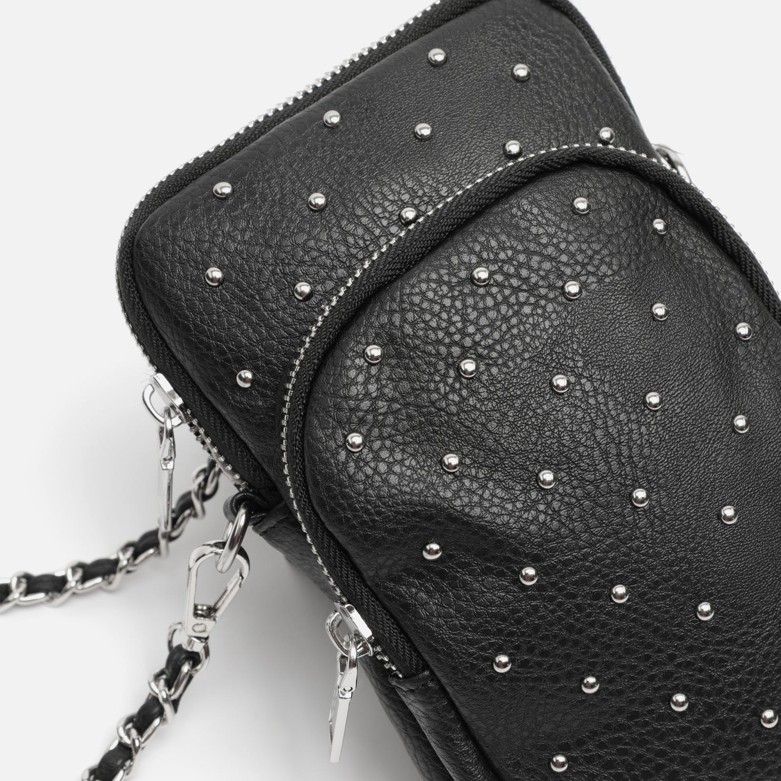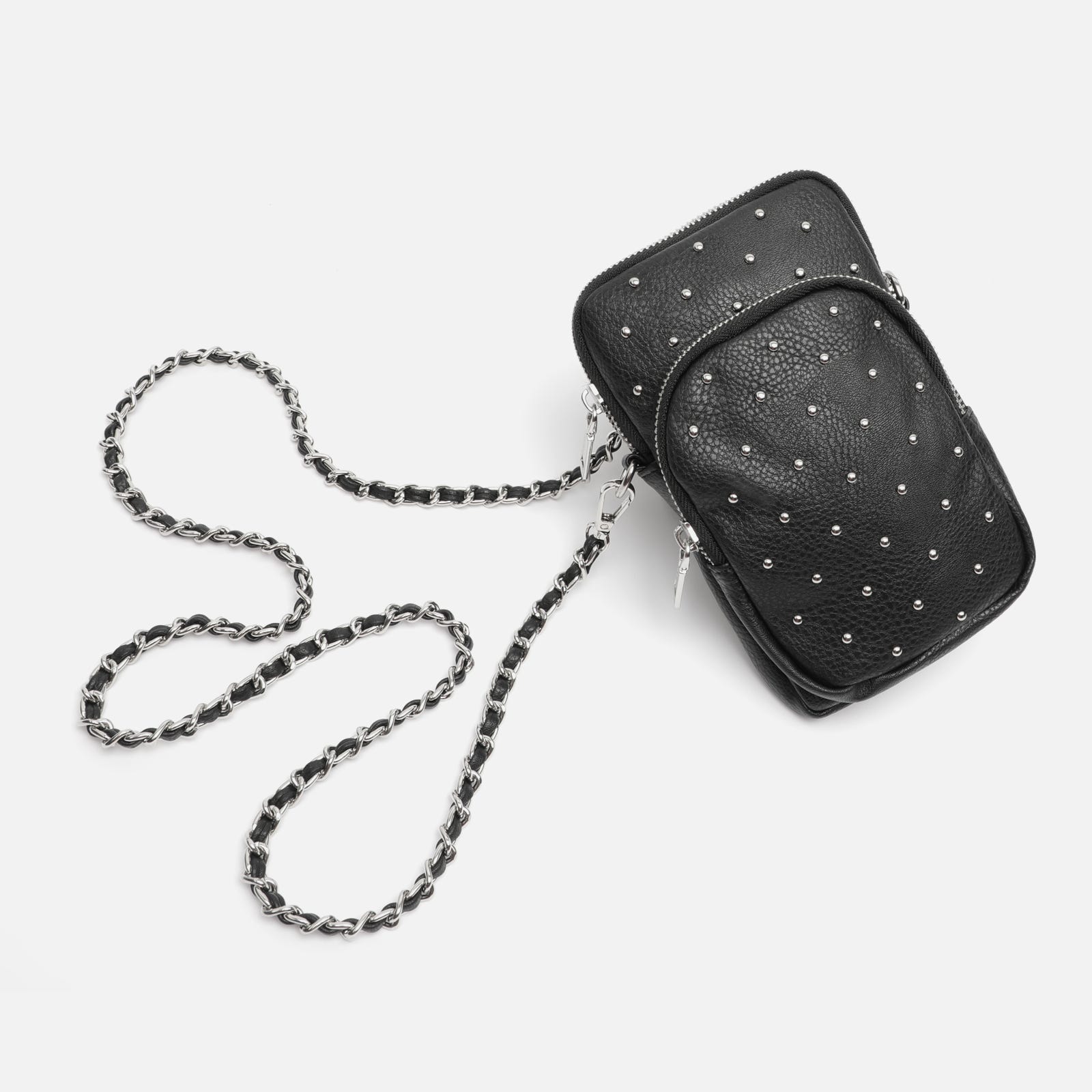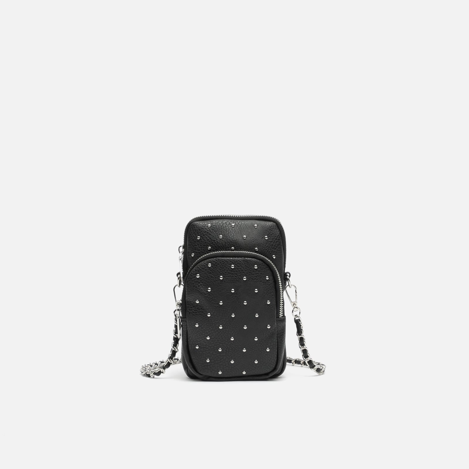 Mini umhängetasche für mobiltelefon mit metallischen details