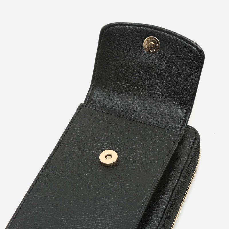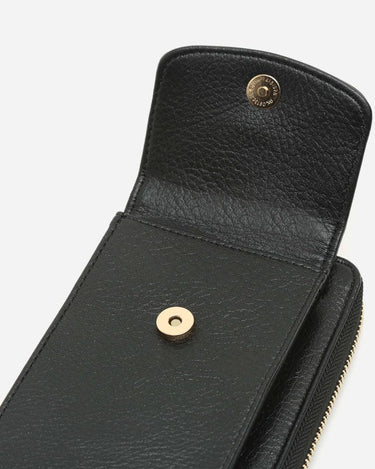 Klein und sehr praktisch ist der Tequila eine Zwei-in-Eins-Lösung: Eine Handtasche für das Handy, die auch als Geldbörse dient. Sie verfügt über eine Haupttasche mit Knopfverschluss und eine größere Innentasche mit Reißverschluss. Darin befinden sich verschiedene Fächer, um Karten aufzubewahren. Du kannst sie entweder um den Hals tragen oder über die Schulter legen, dank ihres langen und schlanken oberen Griffs.