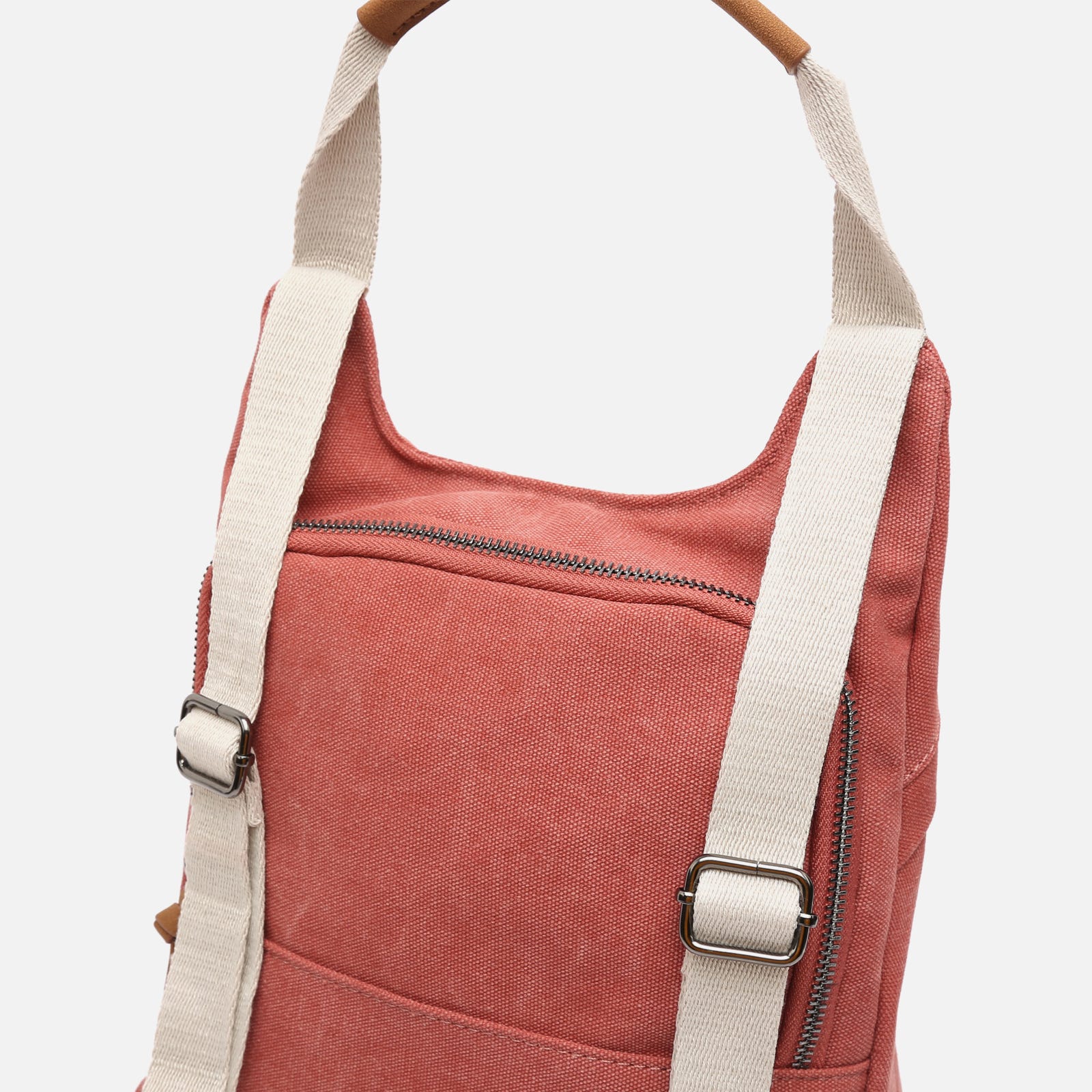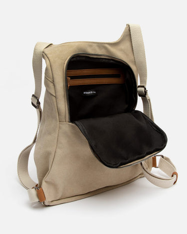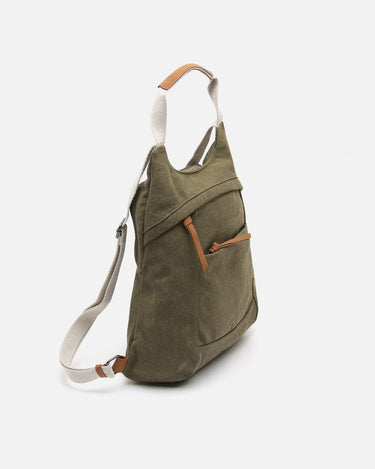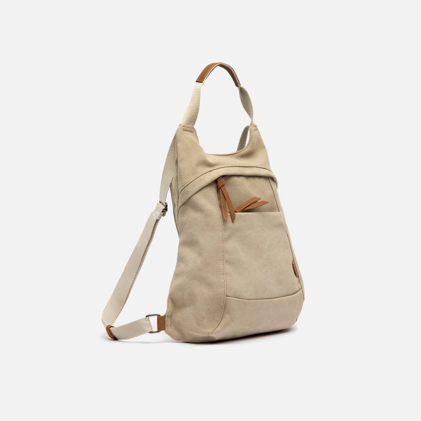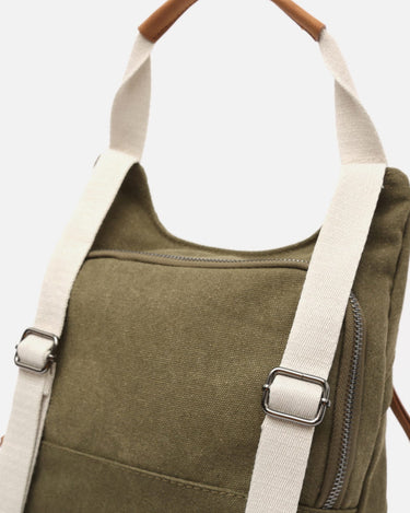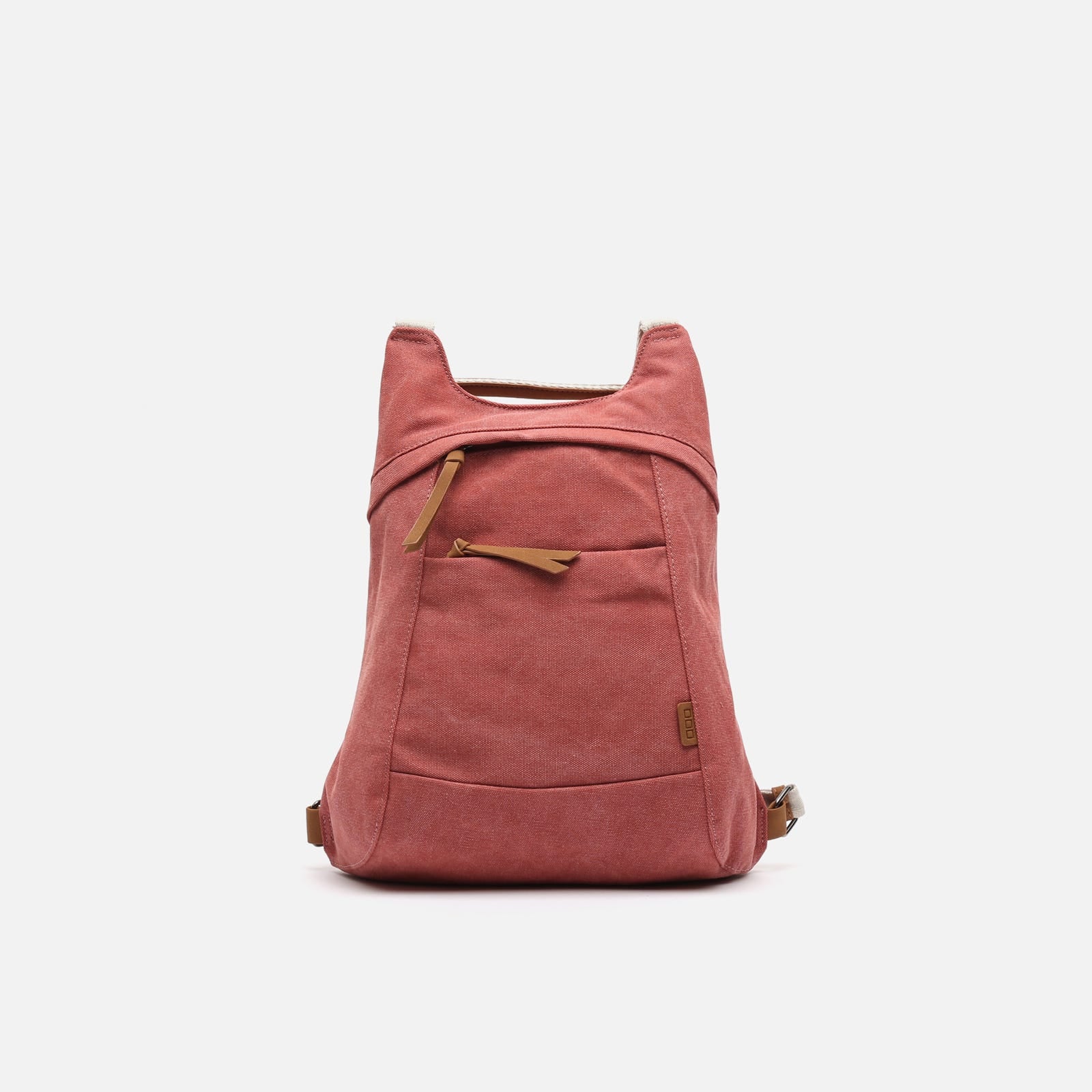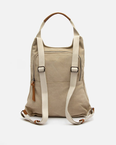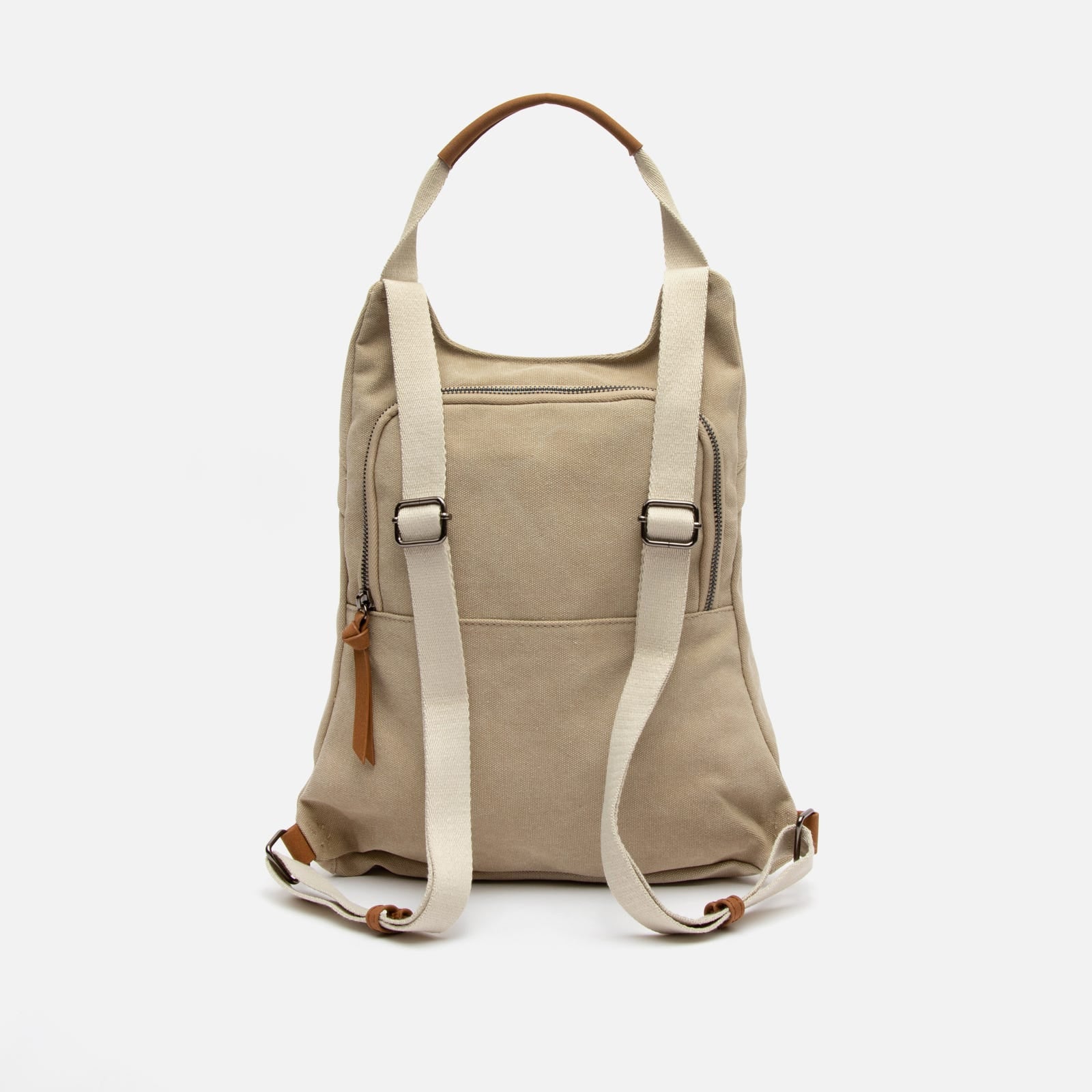 Backpack. Back compartment with zip closure. Two front compartments with zip closure. Adjustable handles.