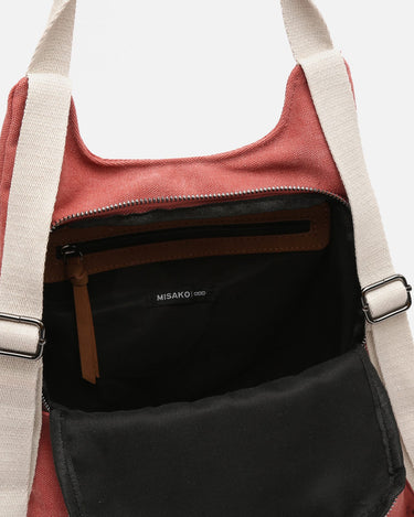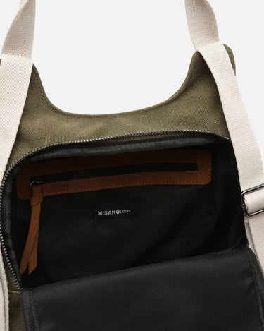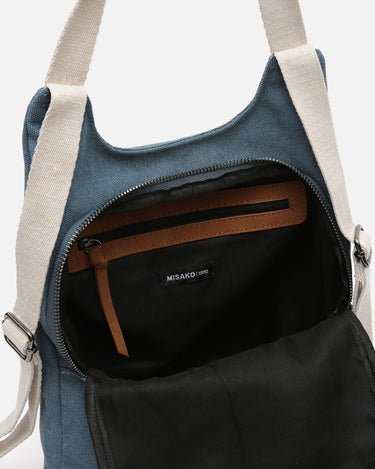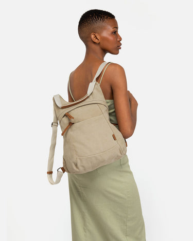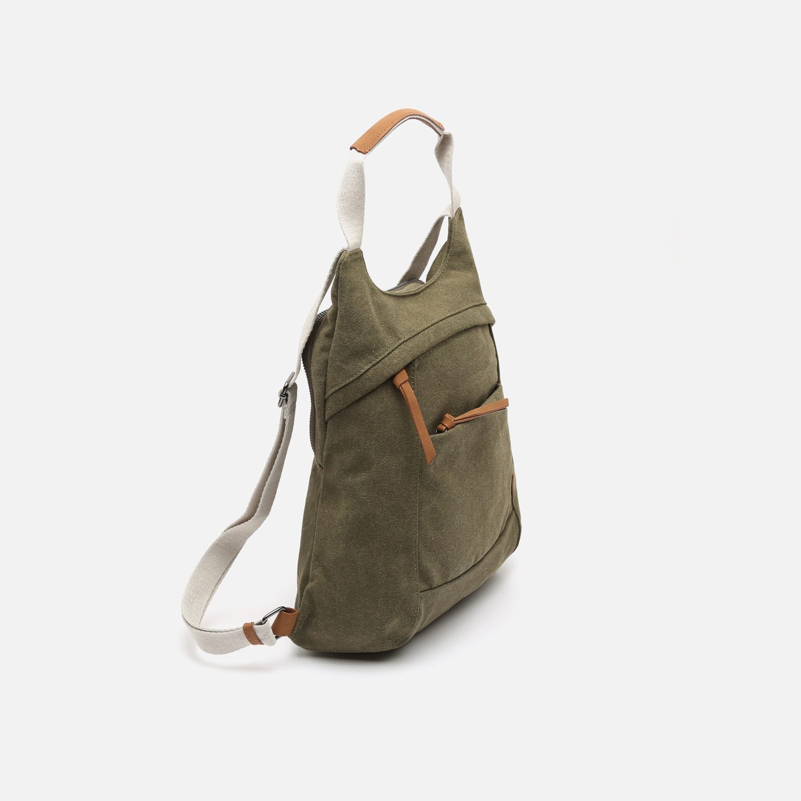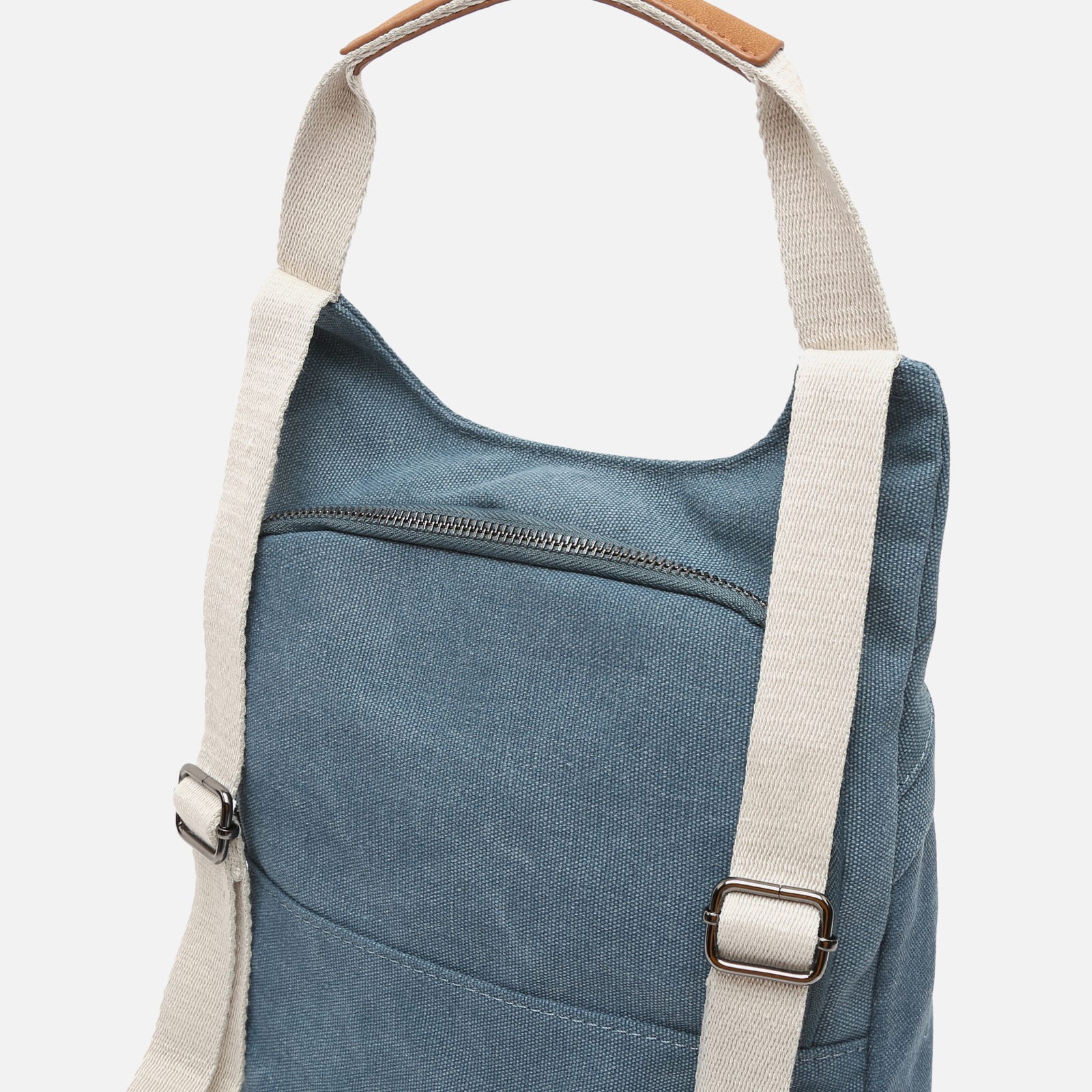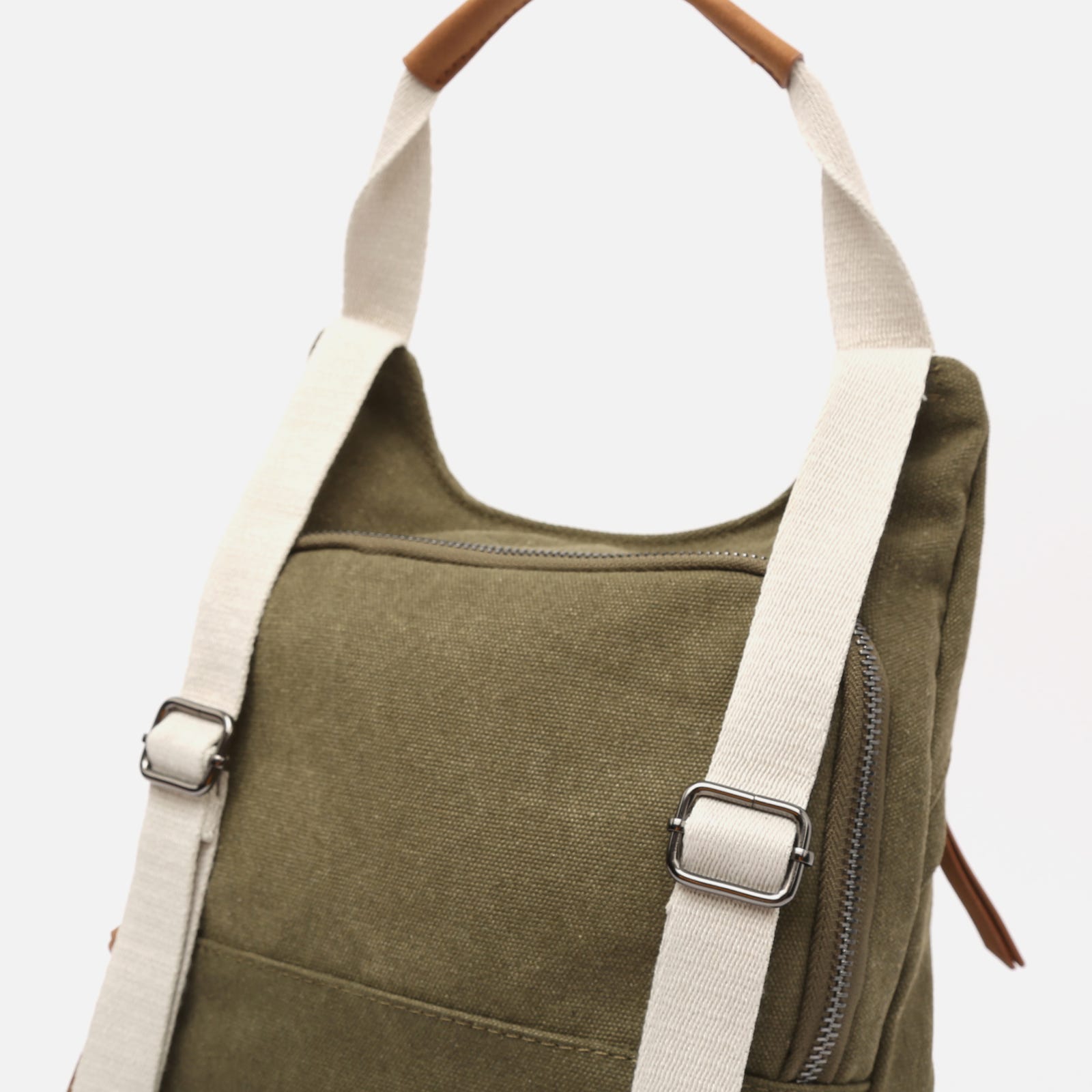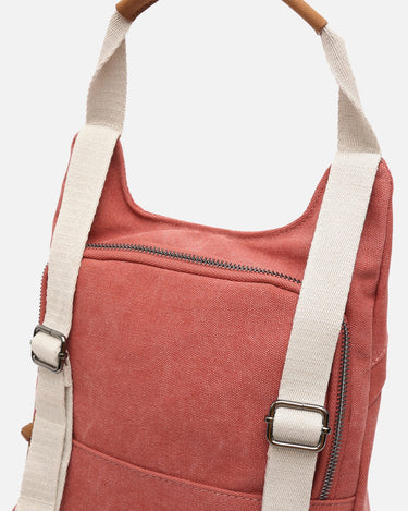 Backpack. Back compartment with zip closure. Two front compartments with zip closure. Adjustable handles.