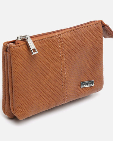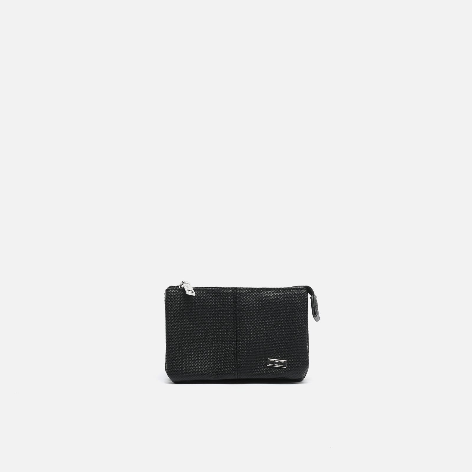 Misako's Engri wallet with leather effect and grainy texture, stands out for its large main compartment and an exterior zipped pocket that makes it easy to keep documents, coins, notes and cards perfectly organised without taking up extra space. This wallet is finished to combine strength, easy care and durability. The unicolour design in seasonal shades will go perfectly with any handbag, while the metal logo plaque adds a sophisticated touch. It is the ideal accessory for everyday use.