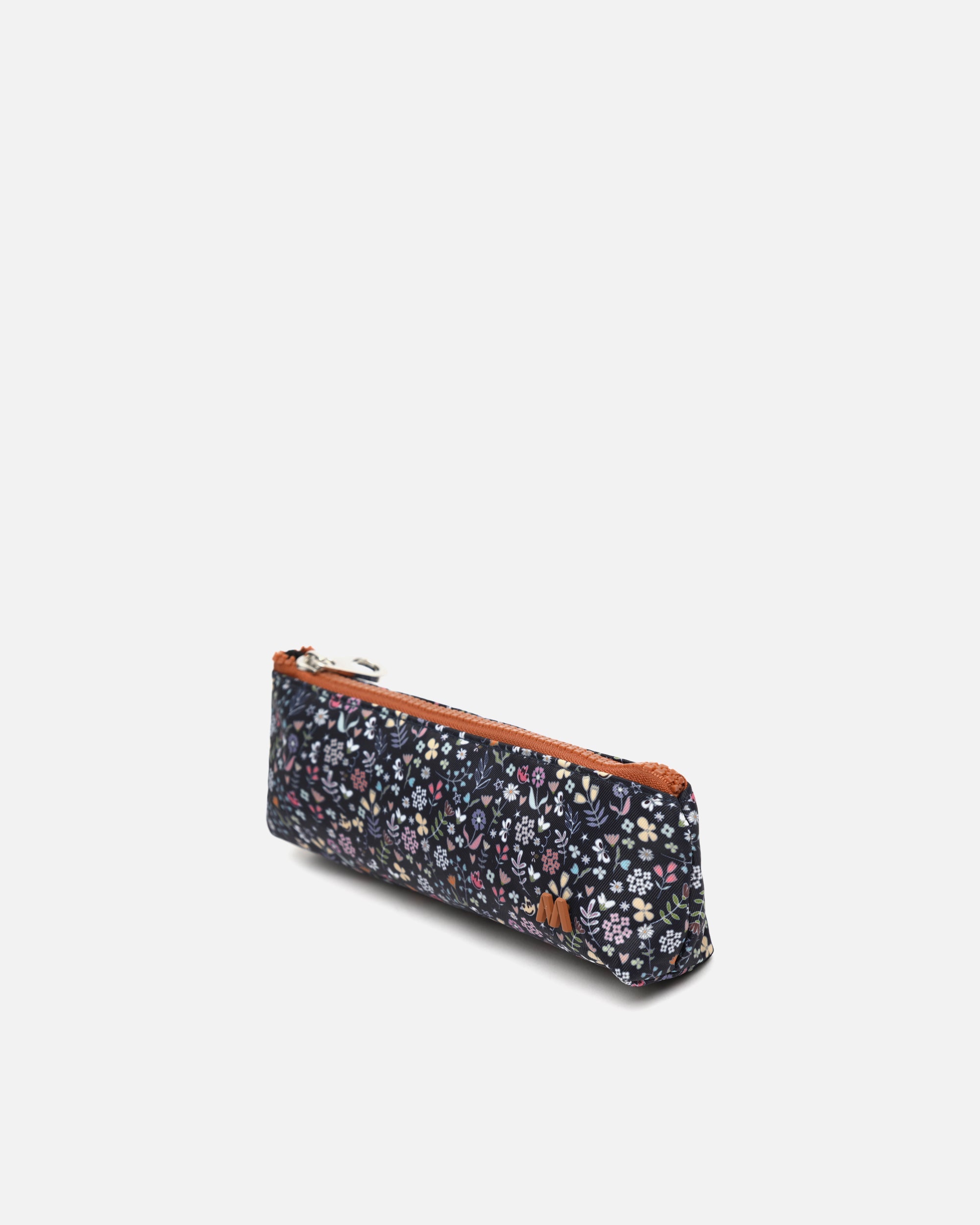 Made from durable fabric, its delicate, feminine print makes it the perfect ally for those who enjoy details with personality. Its design features a top zip with metal pull, allowing convenient access and keeping your essentials, such as pens, cosmetics or small accessories, organised.