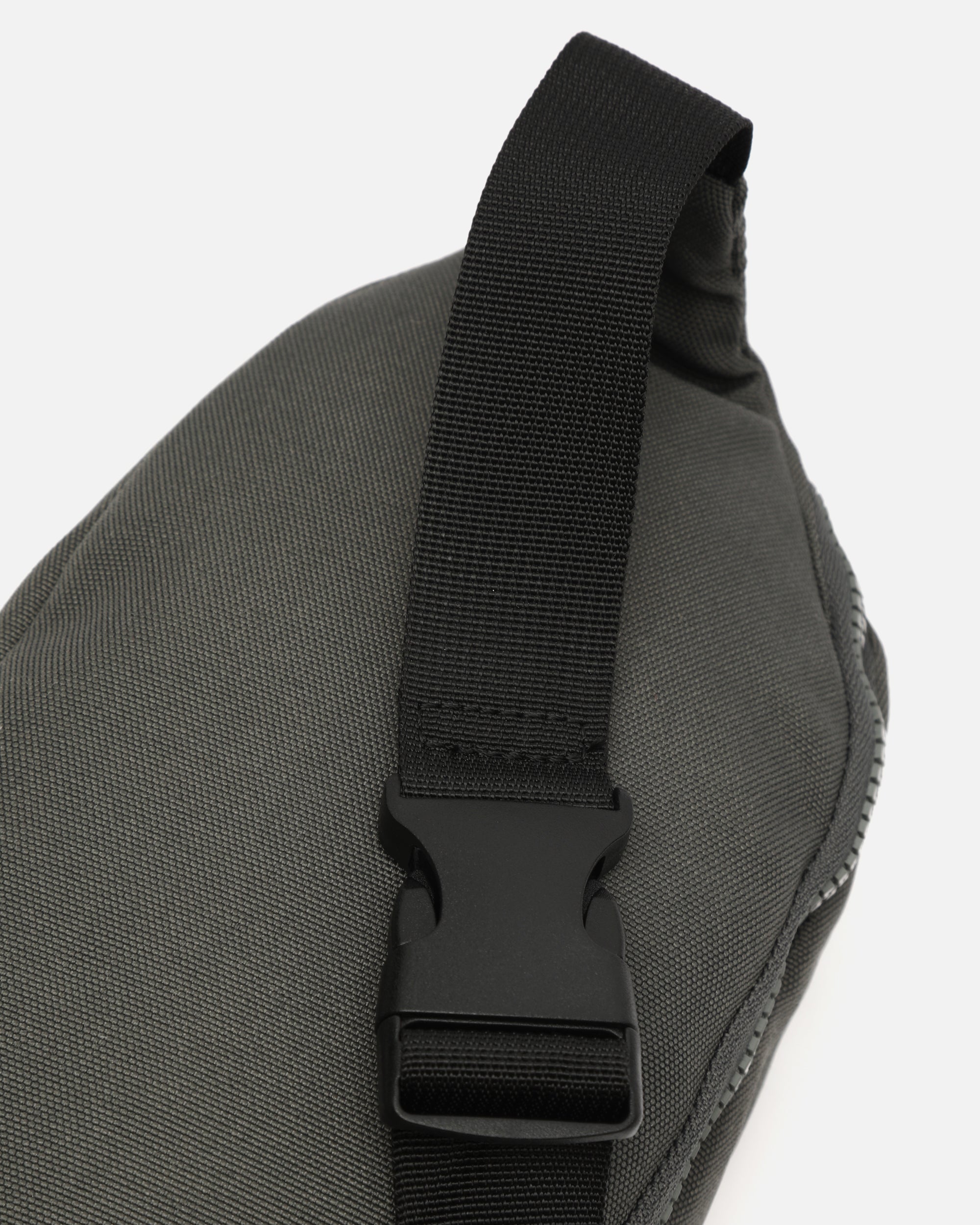 Made from premium technical fabric, its clean, minimalist finish adds a sophisticated touch that adapts to both urban settings and rural getaways. Its ergonomic shape and adjustable strap with a sturdy buckle closure fit comfortably against your body.
