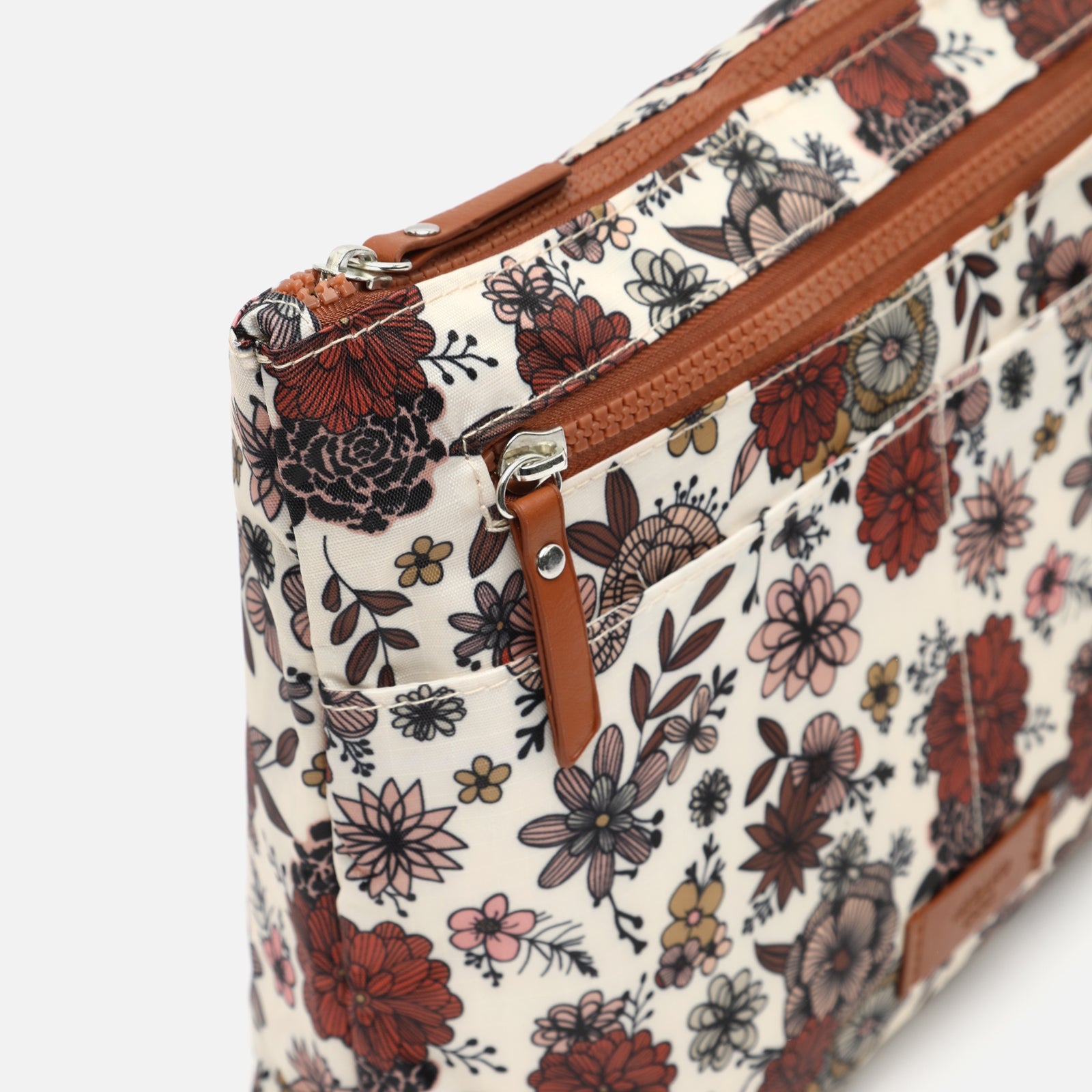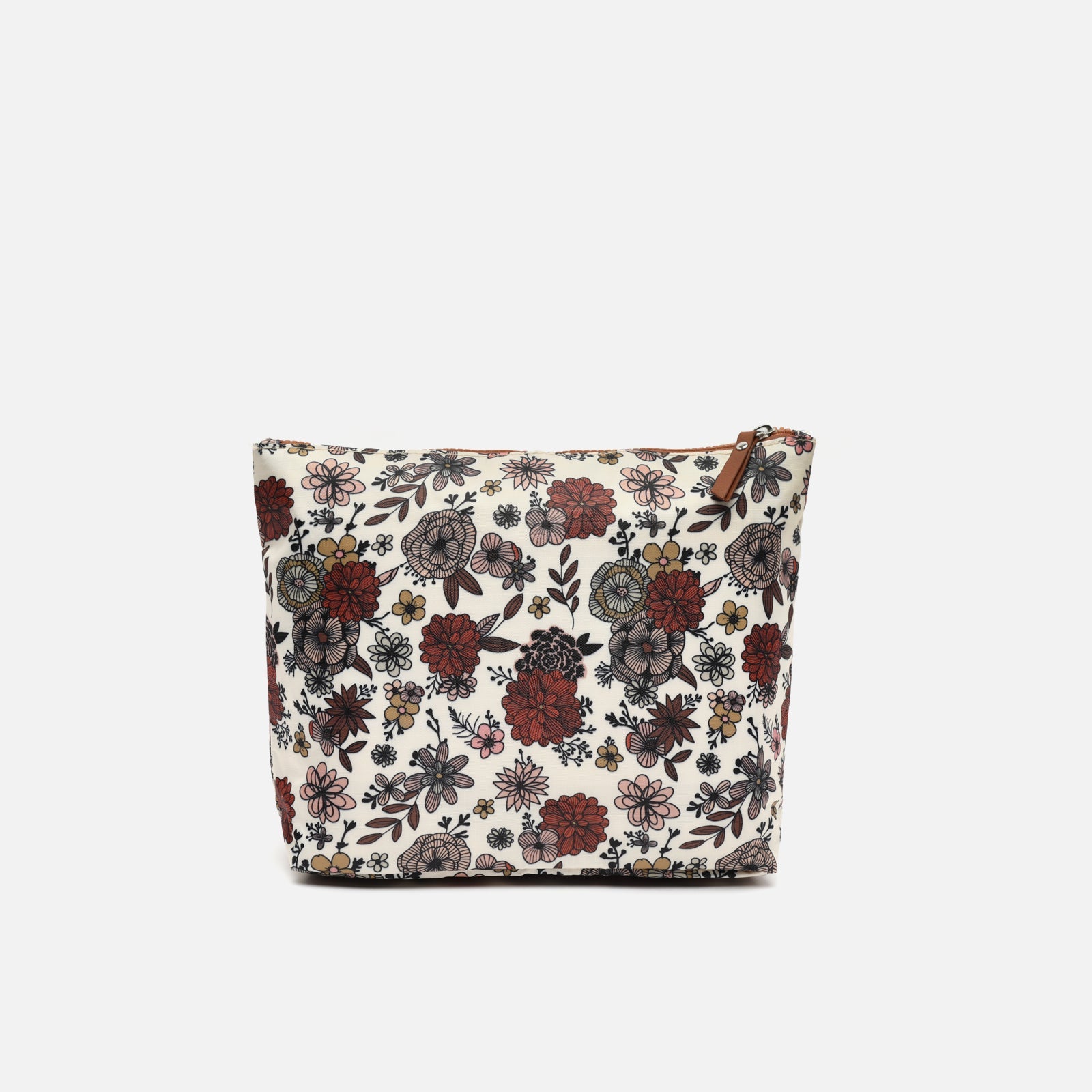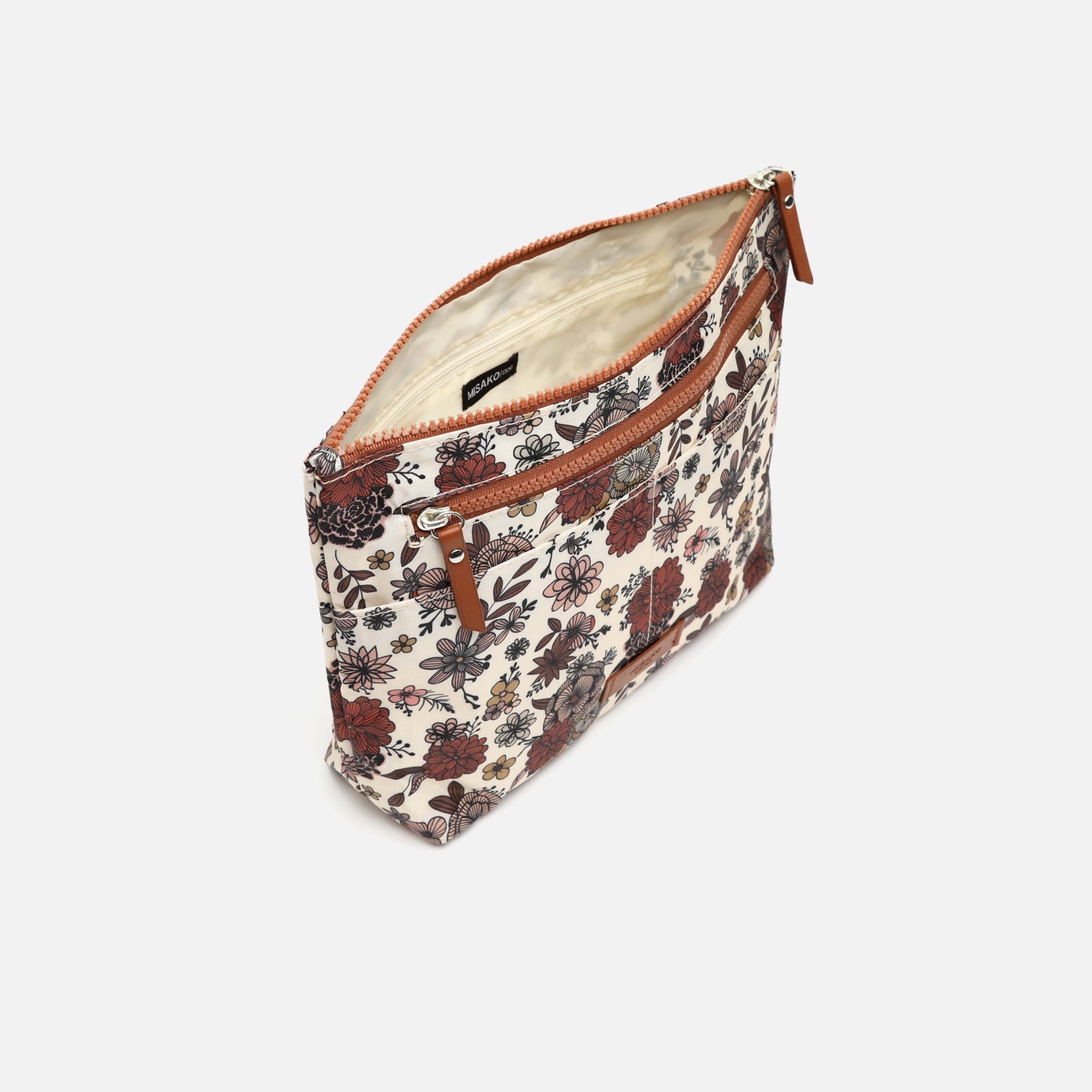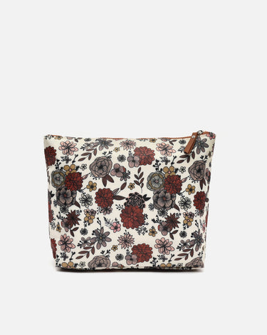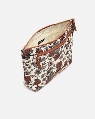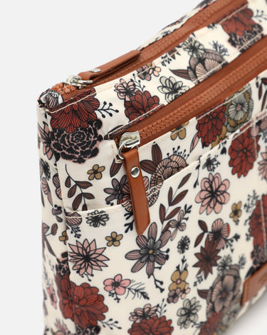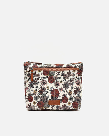 The Nilus organiser by Misako, with a charming floral print in earth tones, burgundy and black, combines practicality with a delicate aesthetic.