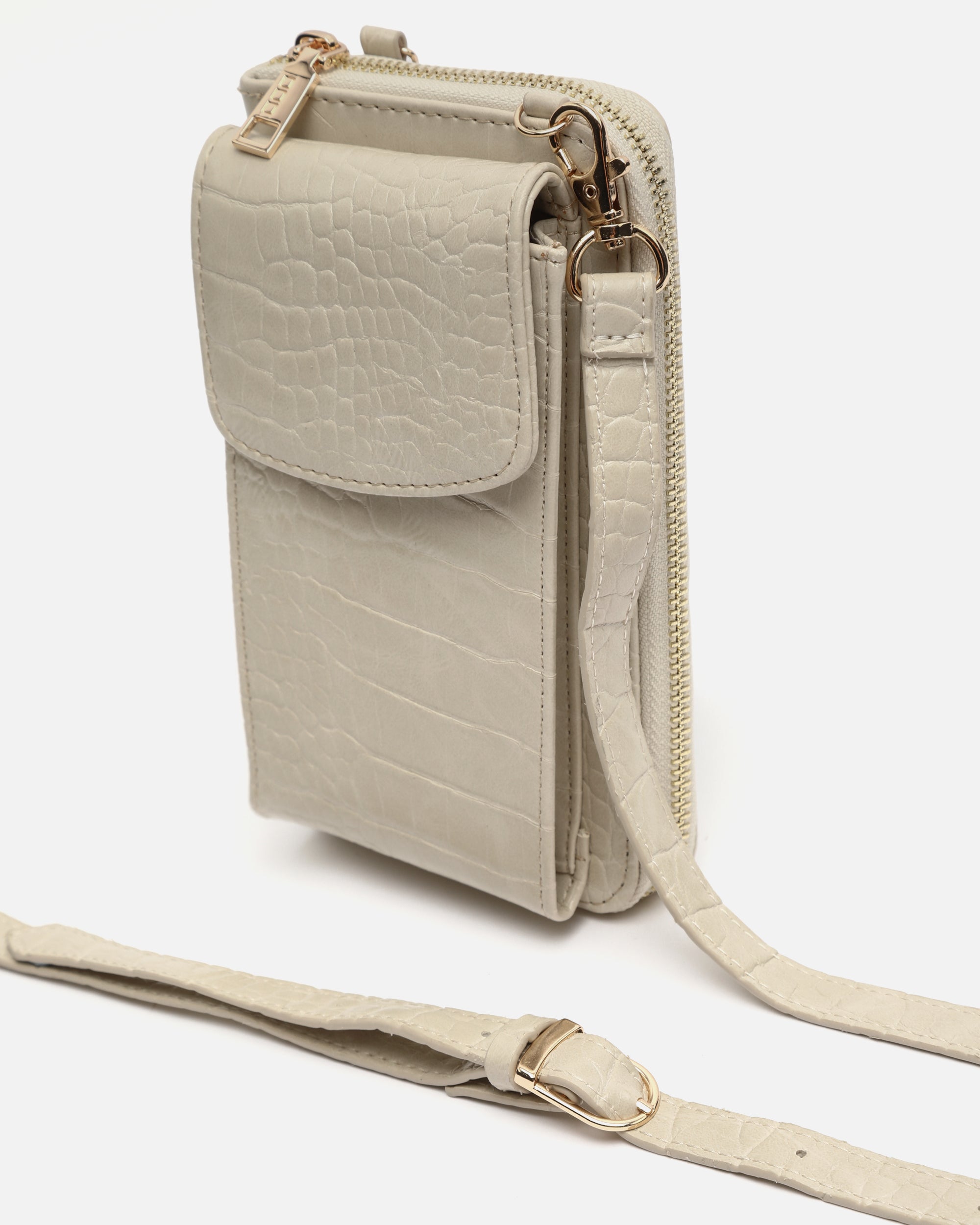 The main compartment has pockets for your cards and notes, as well as an additional zipped pocket designed to keep your coins safe. The front features a flap pocket, ideal for keeping your mobile phone close at hand. Its adjustable and detachable strap allows you to carry it over your shoulder or across your body, easily adapting to your daily routine.
