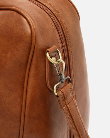 Crafted from leather-effect material for a sophisticated finish, this bag combines aesthetics and functionality to perfection. It has a spacious main compartment lined with soft, premium quality polyester and with a zip closure, ideal for organising your clothes and personal belongings.
