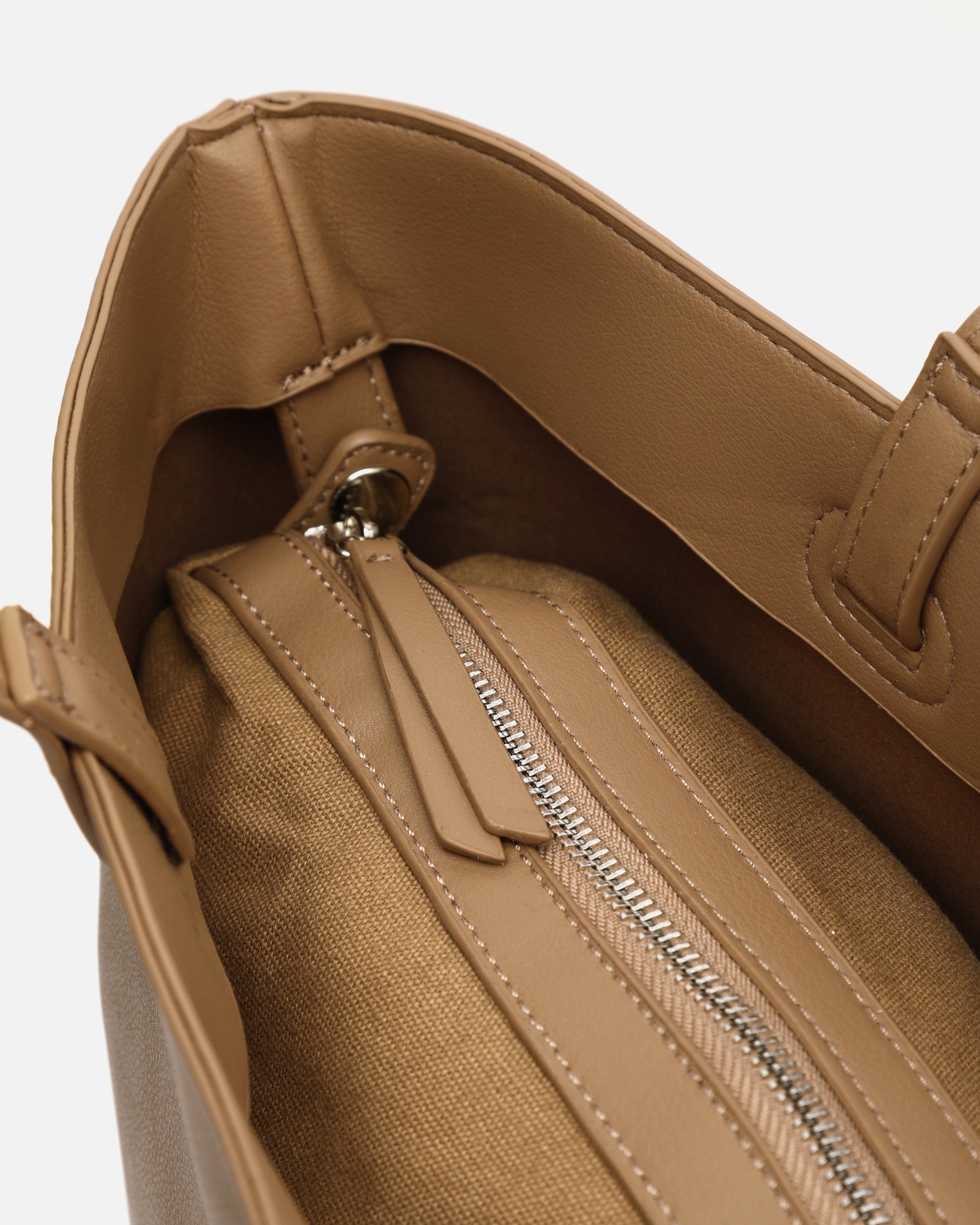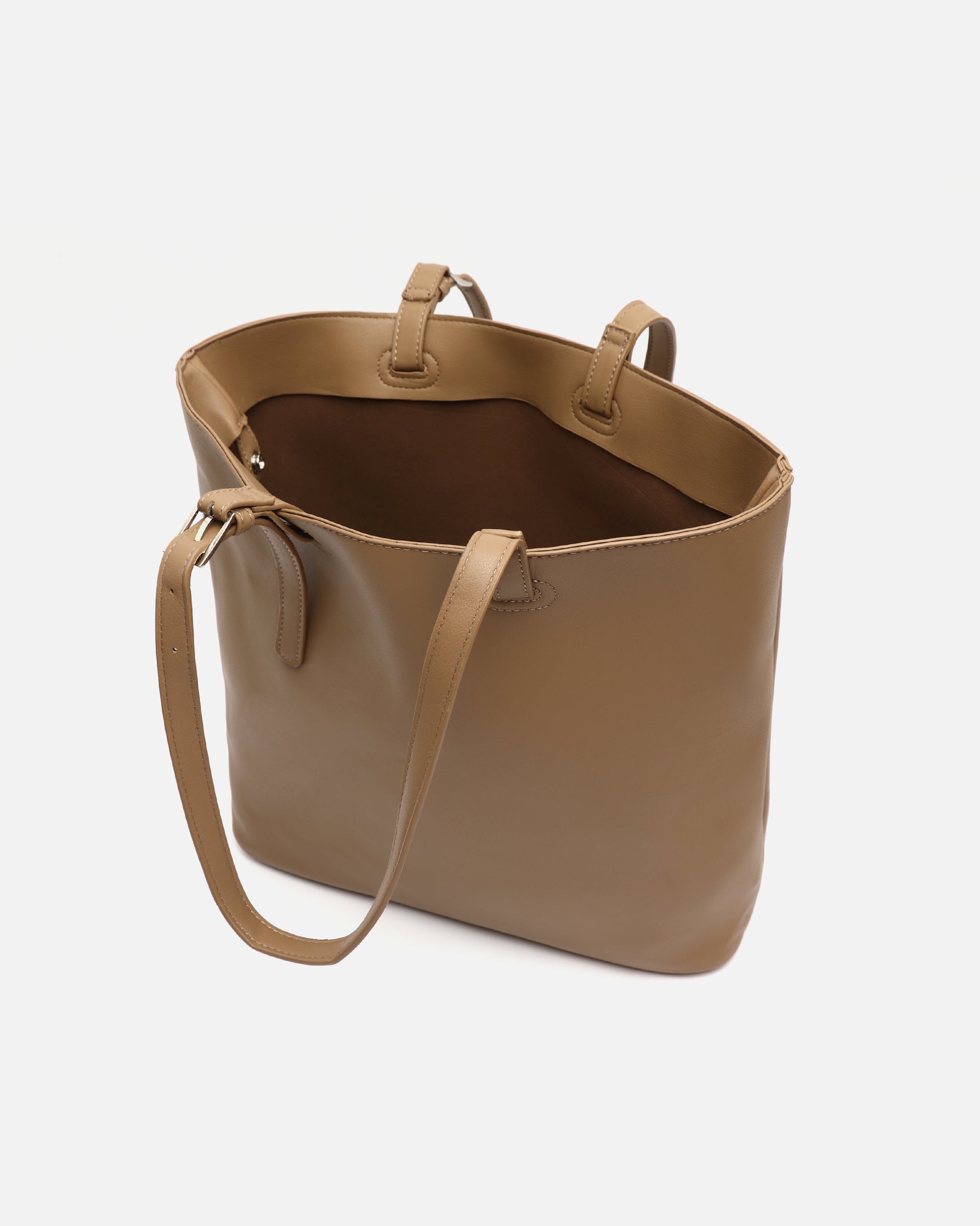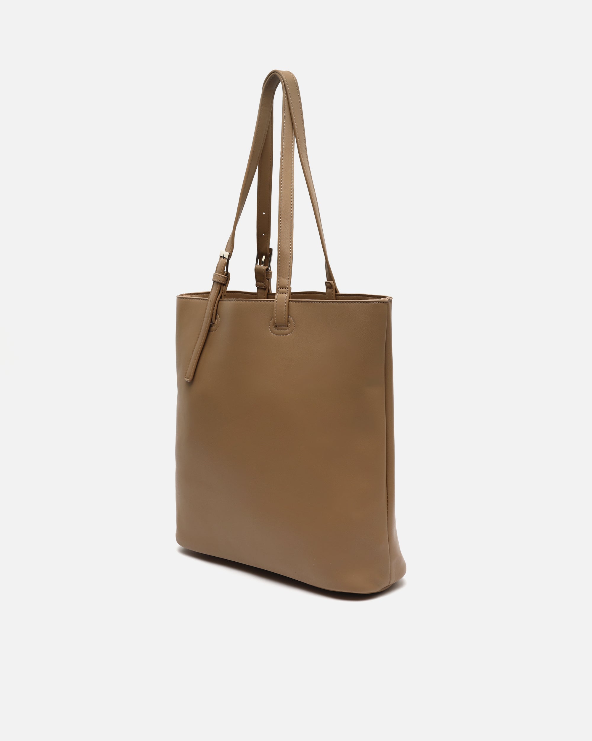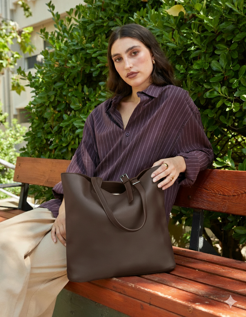 Made from soft-textured leather, its wide, open silhouette offers enough space to carry documents, a tablet, diary, purse and all your essentials without any hassle. It also includes a practical removable toiletries bag, ideal for storing make-up, keys or small items you want to keep close at hand. The long, adjustable handles are sturdy and designed to be carried comfortably on the shoulder, even on the longest of days. Its neutral tone makes it a versatile accessory, perfect for both formal office looks and more casual weekend outfits.