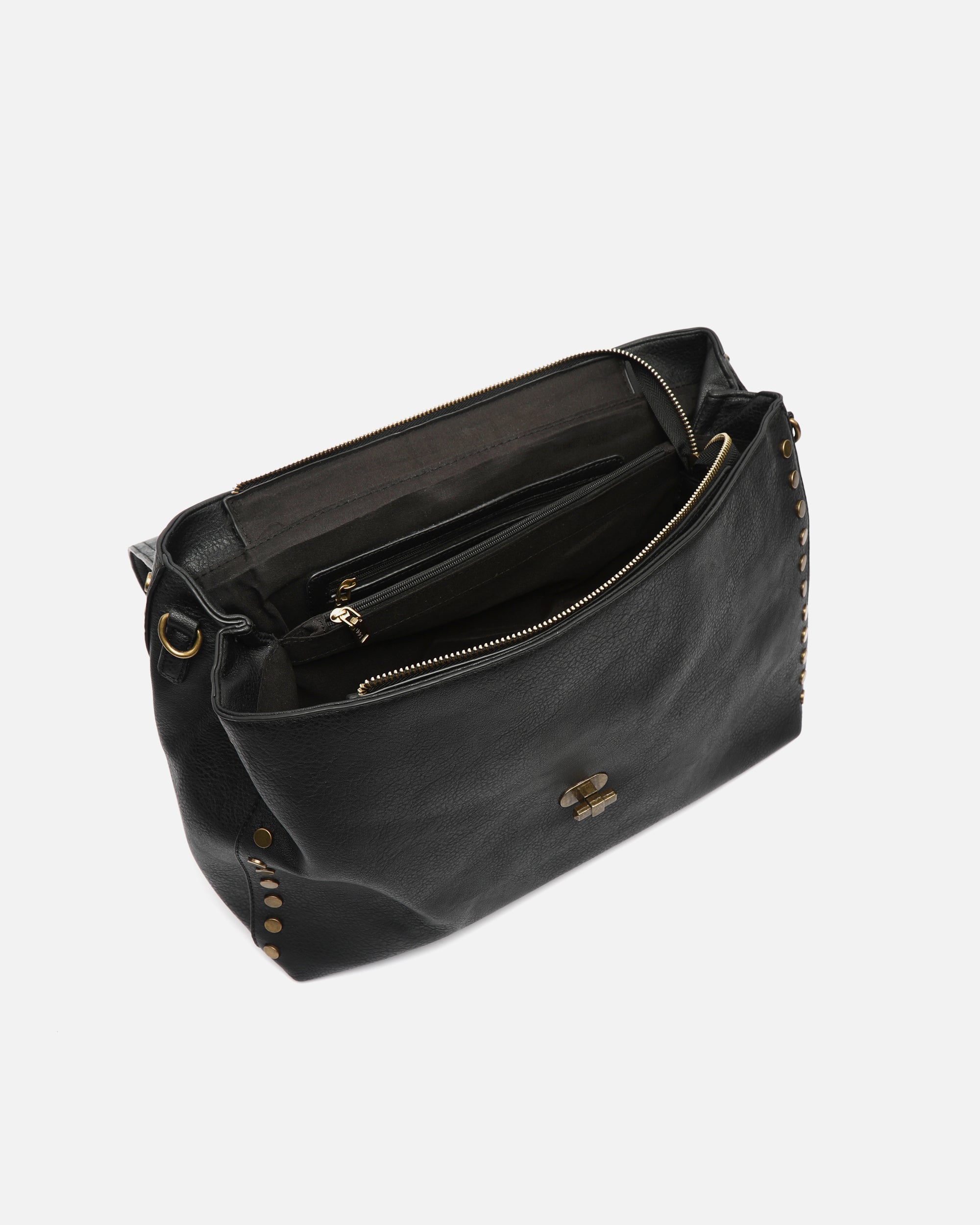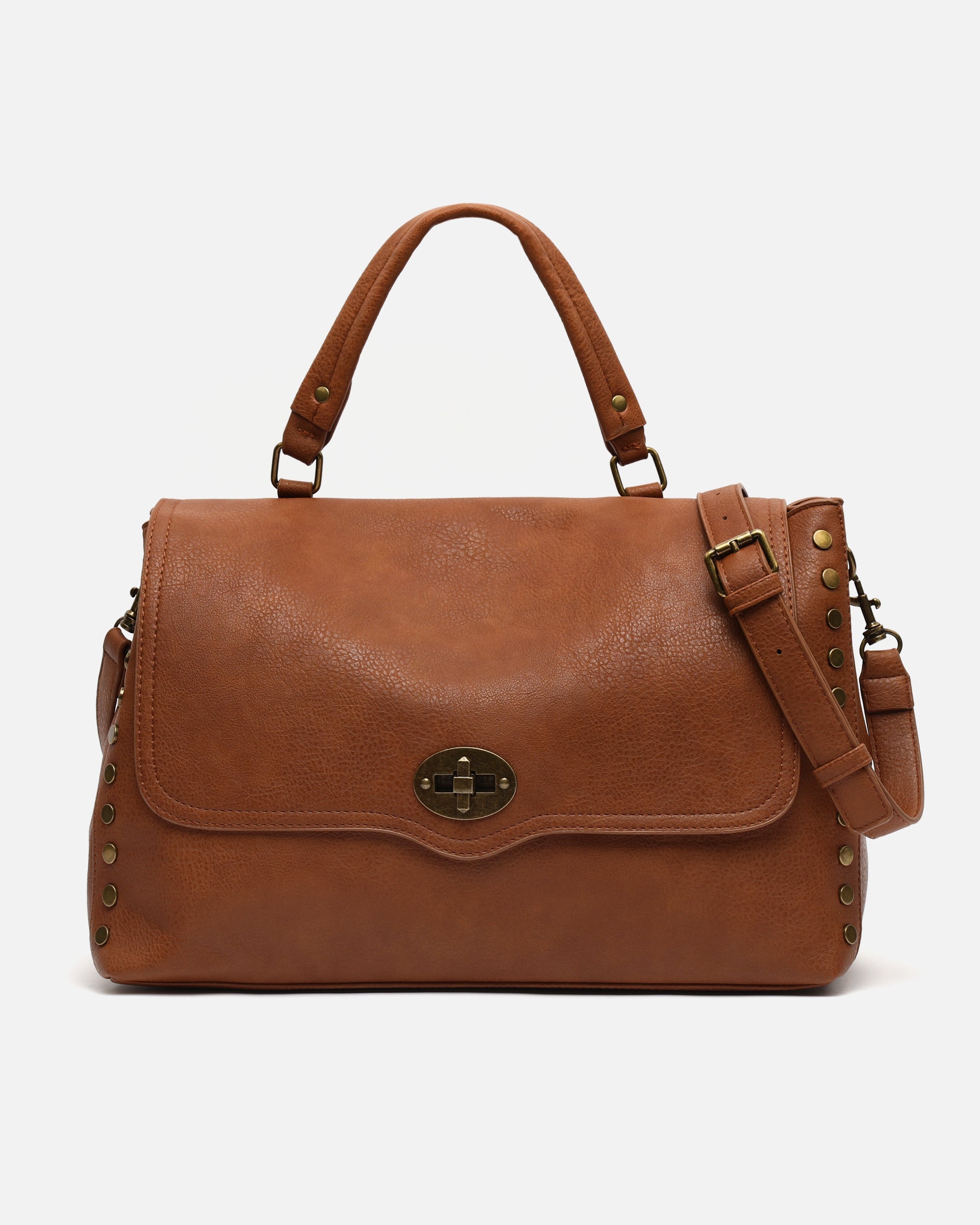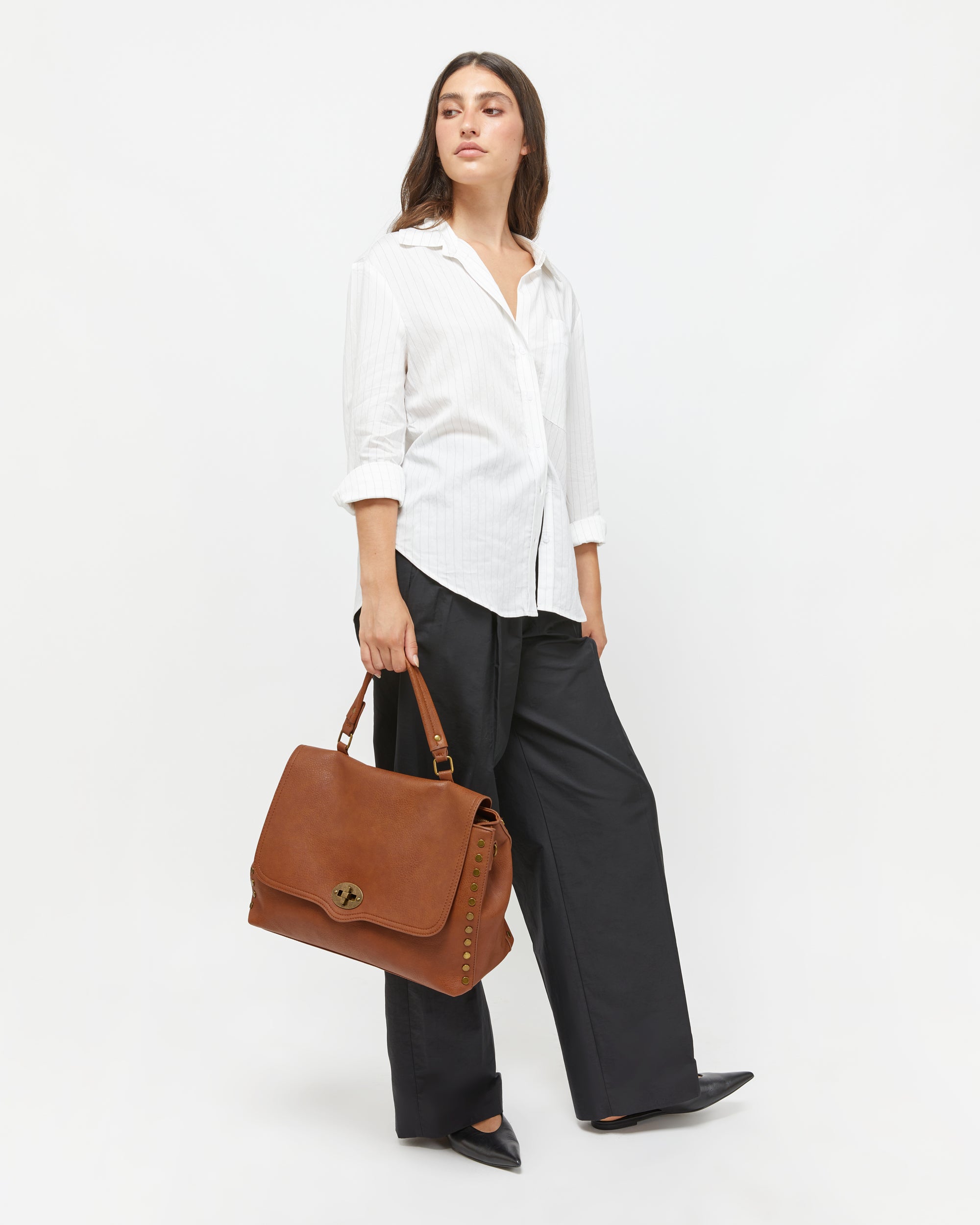 The large Aniada shoulder bag by Misako combines elegance and practicality in a timeless design. Crafted from soft-finish leather, its flap structure and aged metal details give it personality and a vintage feel.
