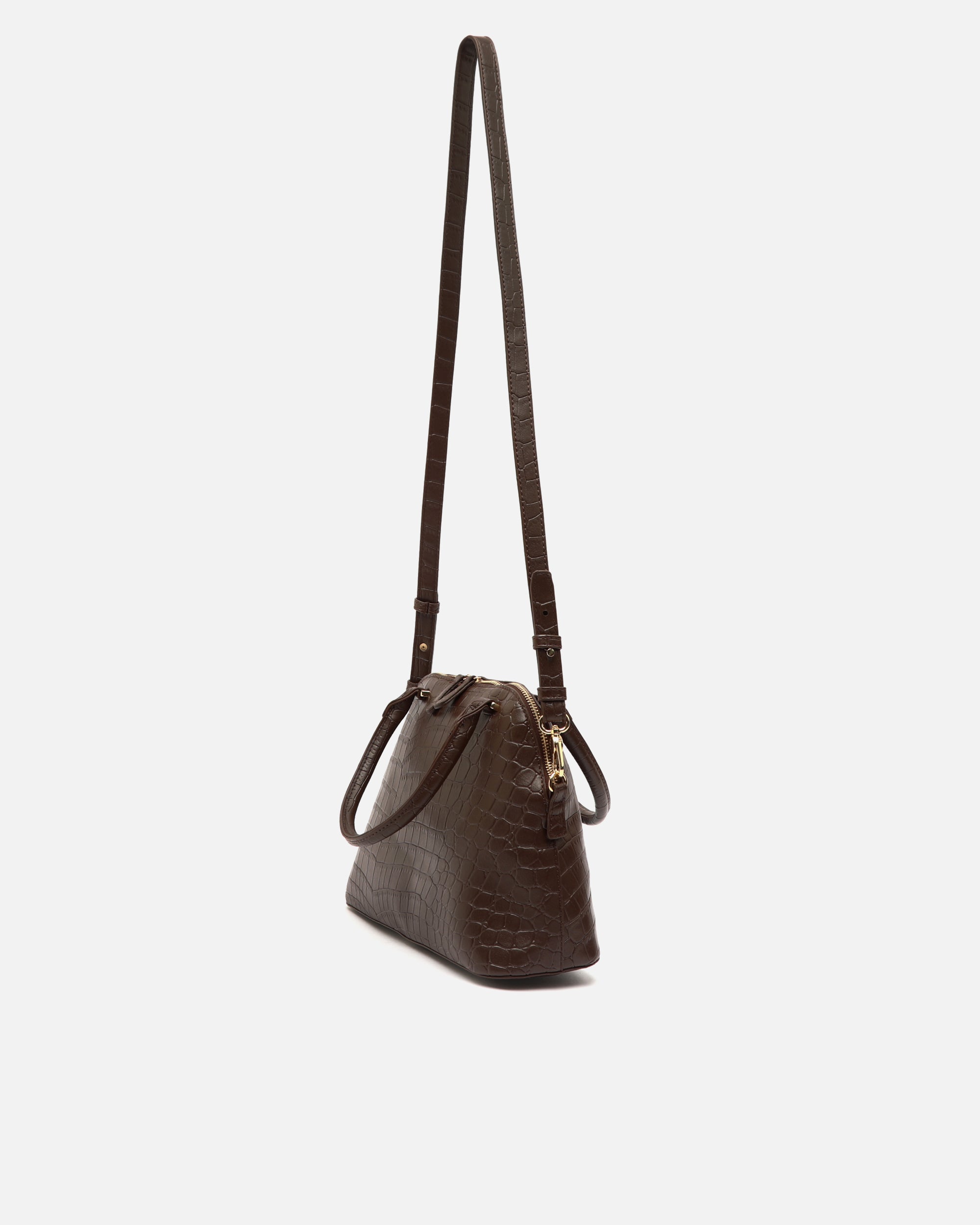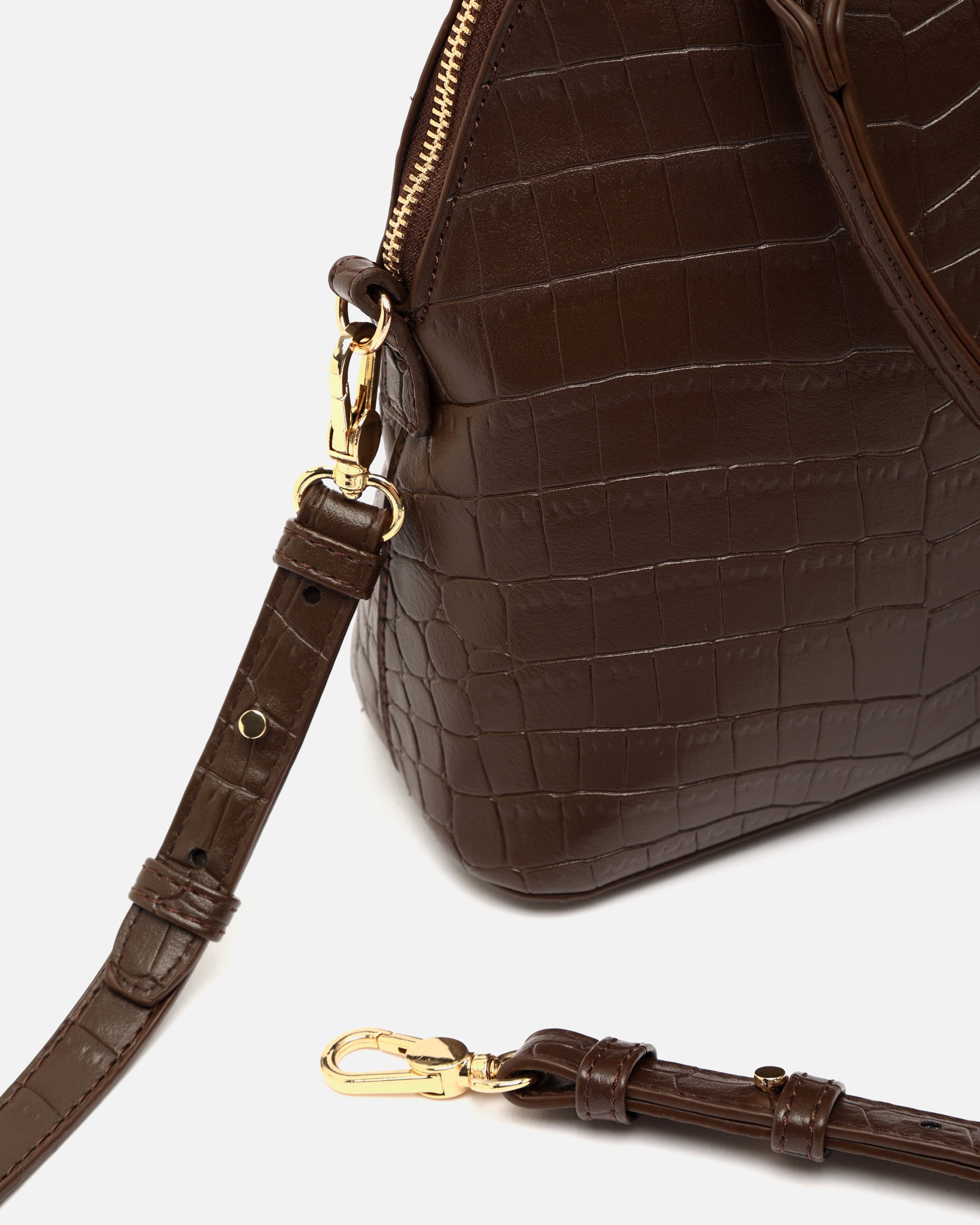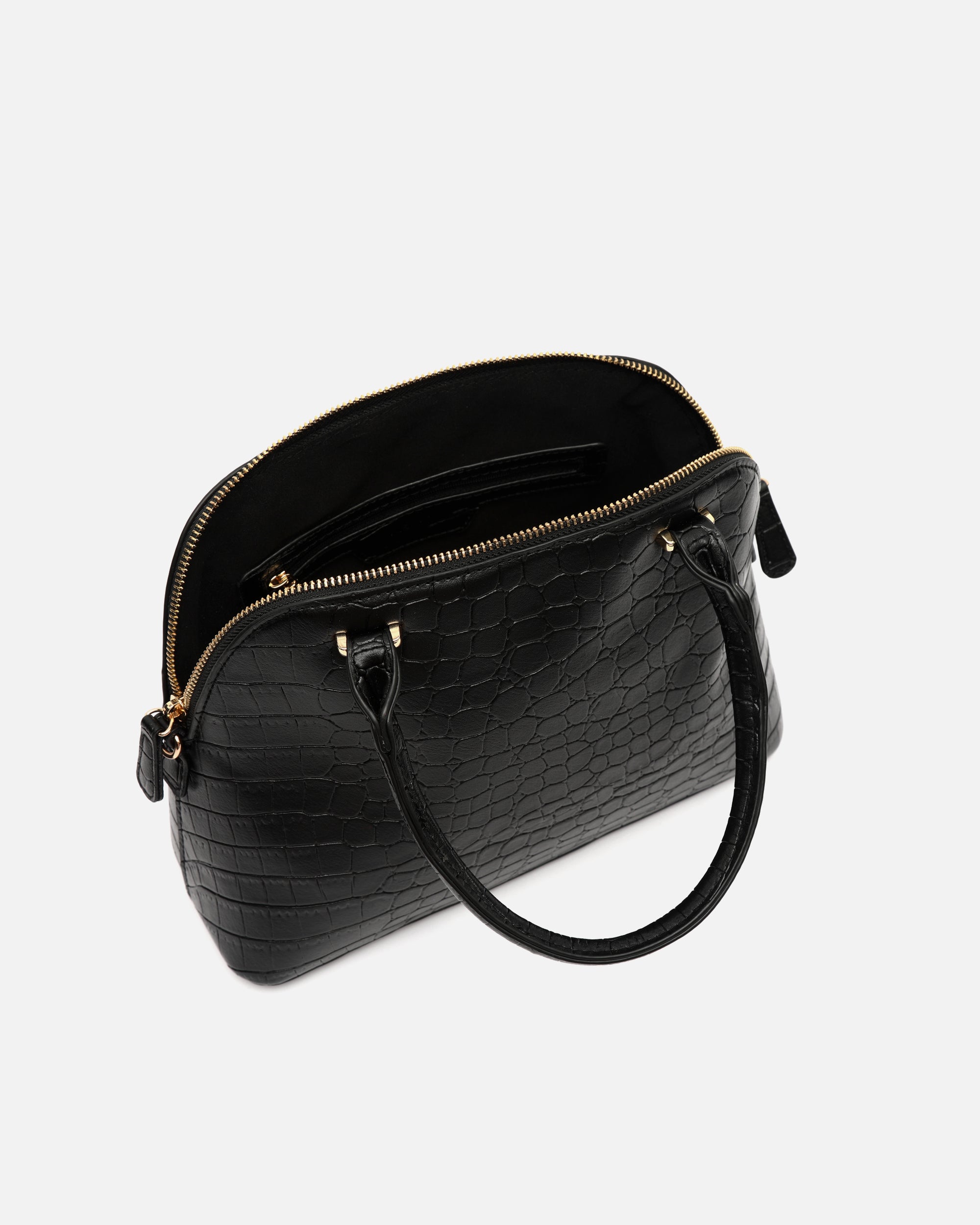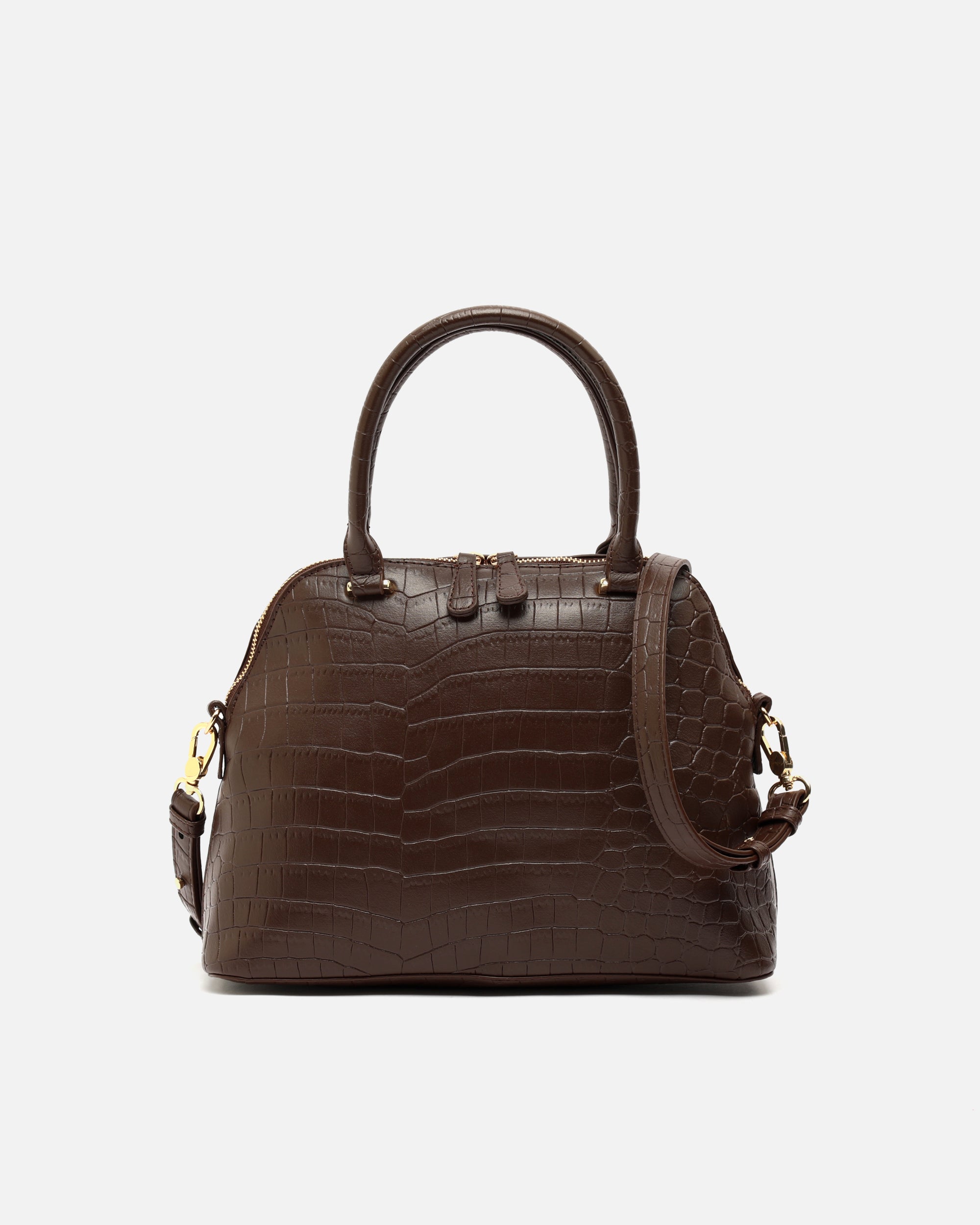 More than just a bag, Misako's Denixa is an accessory with lots of personality. It features an elegant bowling bag design with an animal print finish, adding texture and a touch of sophistication. Its structured profile and gold metal details make it a versatile piece, perfect for accompanying you on all your stylish adventures.
