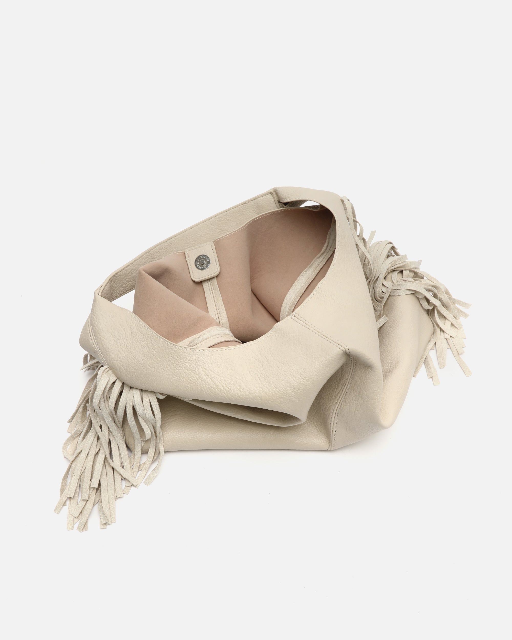 Frinpo-1 hobo bag with removable toiletries bag and fringe detail by Misako