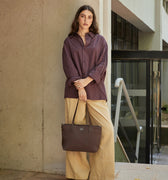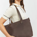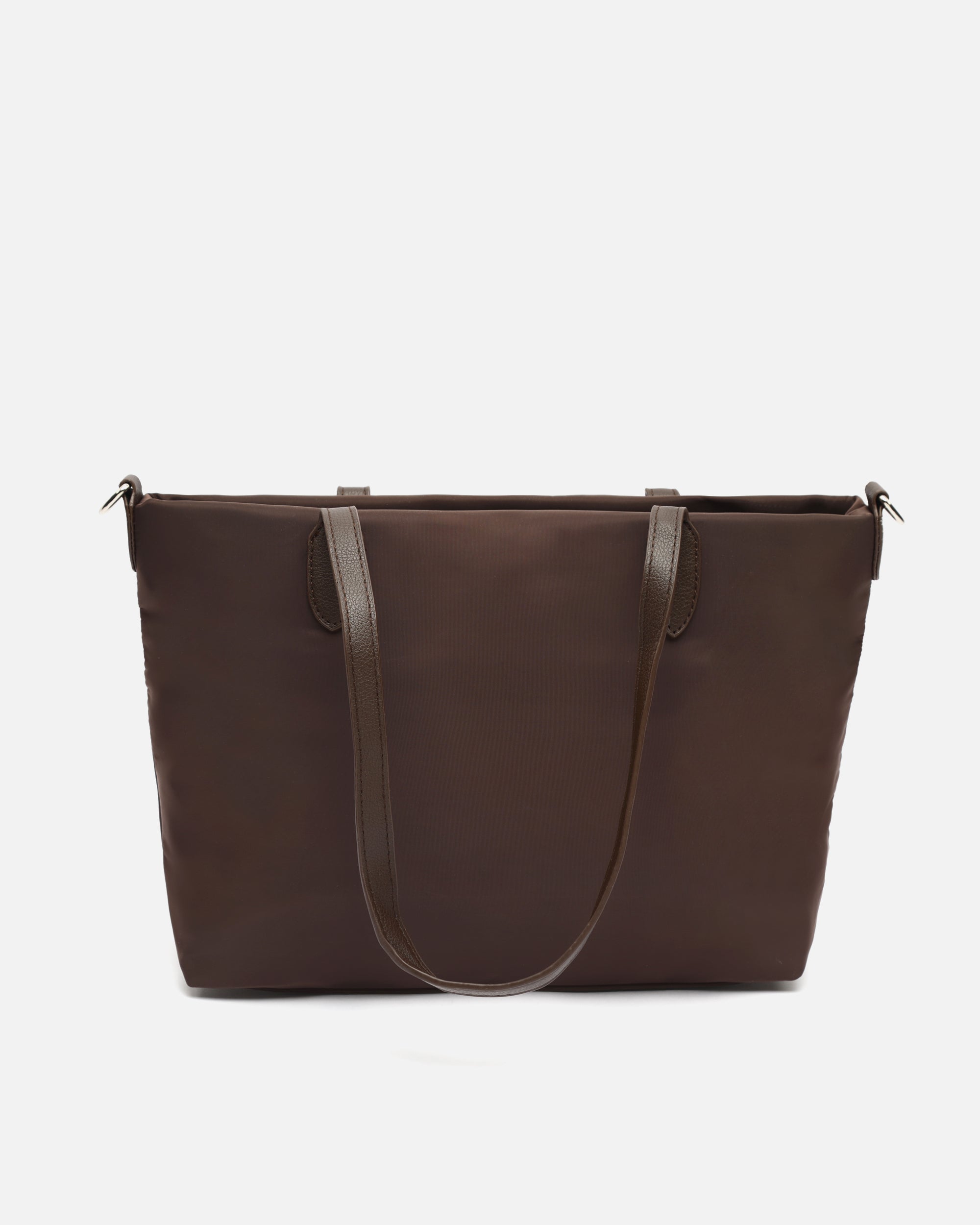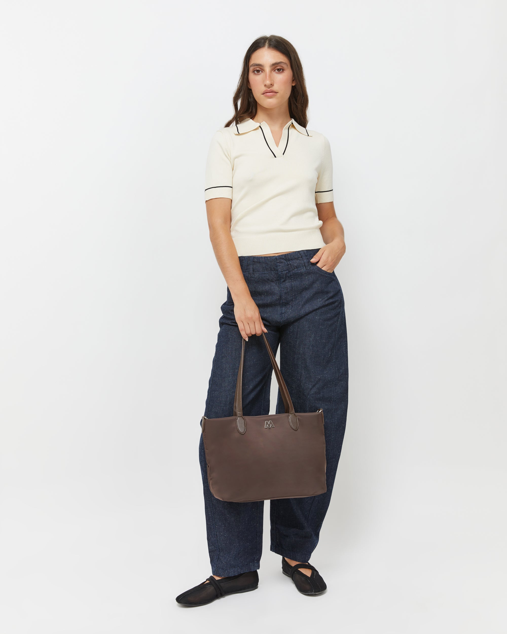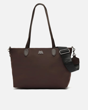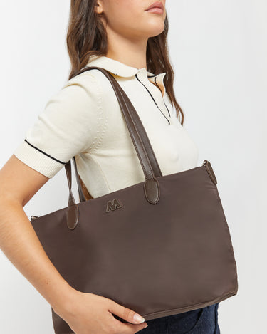 Designed to accompany you in style on your busiest days, Misako's Geran shopper bag combines unrivalled functionality with modern urban style. Crafted from durable, durable nylon with a matte finish, it features a secure top zip closure and incorporates distinctive details such as a stylish contrasting leather-effect front logo and leather-effect handles, perfect for carrying comfortably over the shoulder.