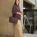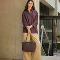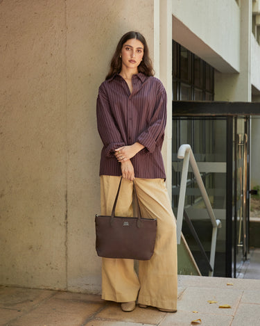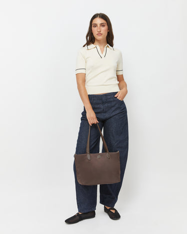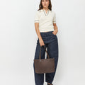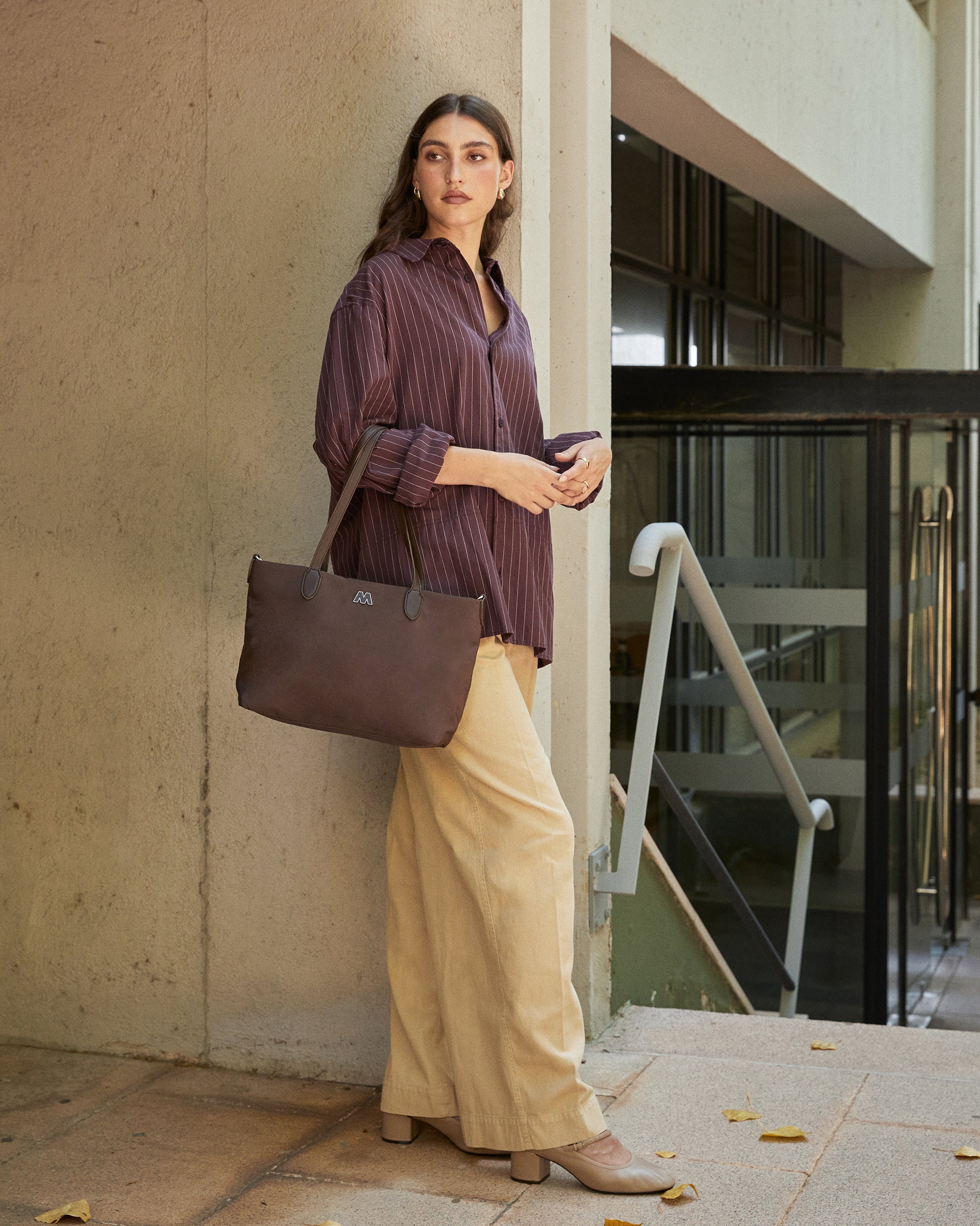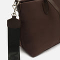 A wide, removable shoulder strap with tonal logo engraving runs along its surface, ideal for crossbody use during your busiest days. Inside, a zipped pocket allows you to securely store smaller items, keeping them within easy reach at all times.