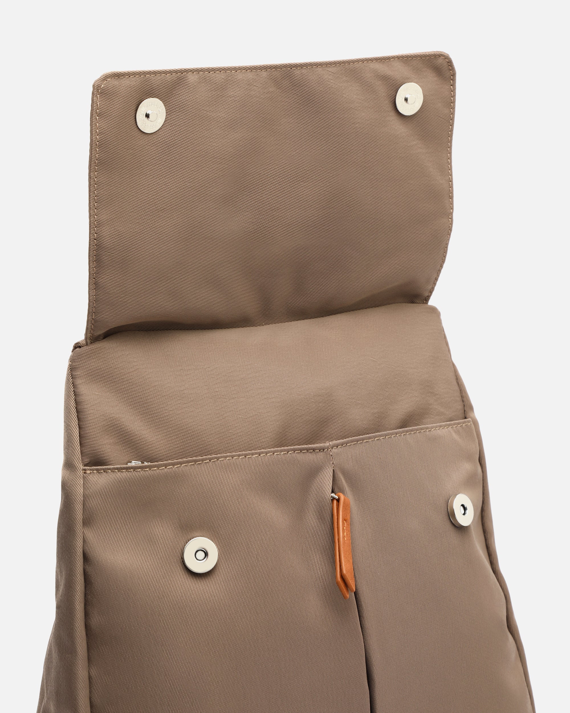 Its anti-theft main compartment, located at the back, keeps your most valuable belongings well protected. On the front, it has two zipped pockets, protected by an eye-catching flap with magnetic buttons, as well as an additional pocket for quick access to your essentials.