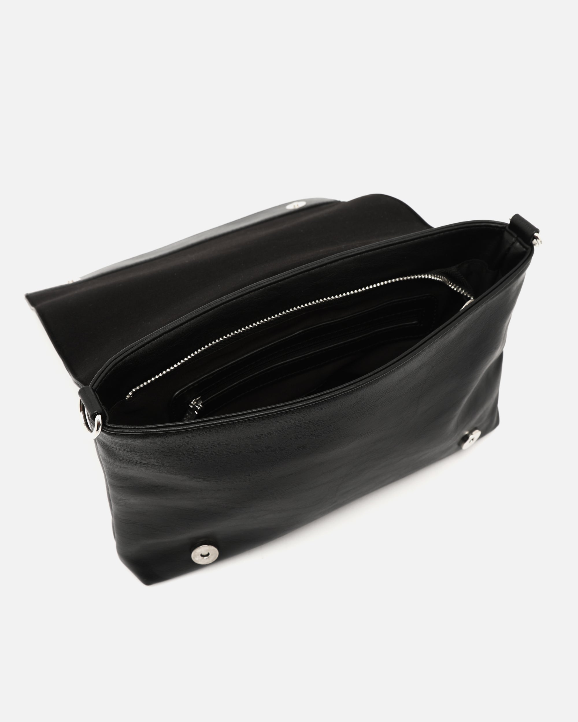 The main compartment is secured with a metal zip fastening and magnetic buttons under the flap, providing added protection for your belongings. The exterior features a quick-access back pocket to keep your essentials close at hand. It comes with an adjustable shoulder strap that can be worn across the body for comfort, over the shoulder for a more relaxed look or, if you have a special occasion, detach it and use it as a clutch.