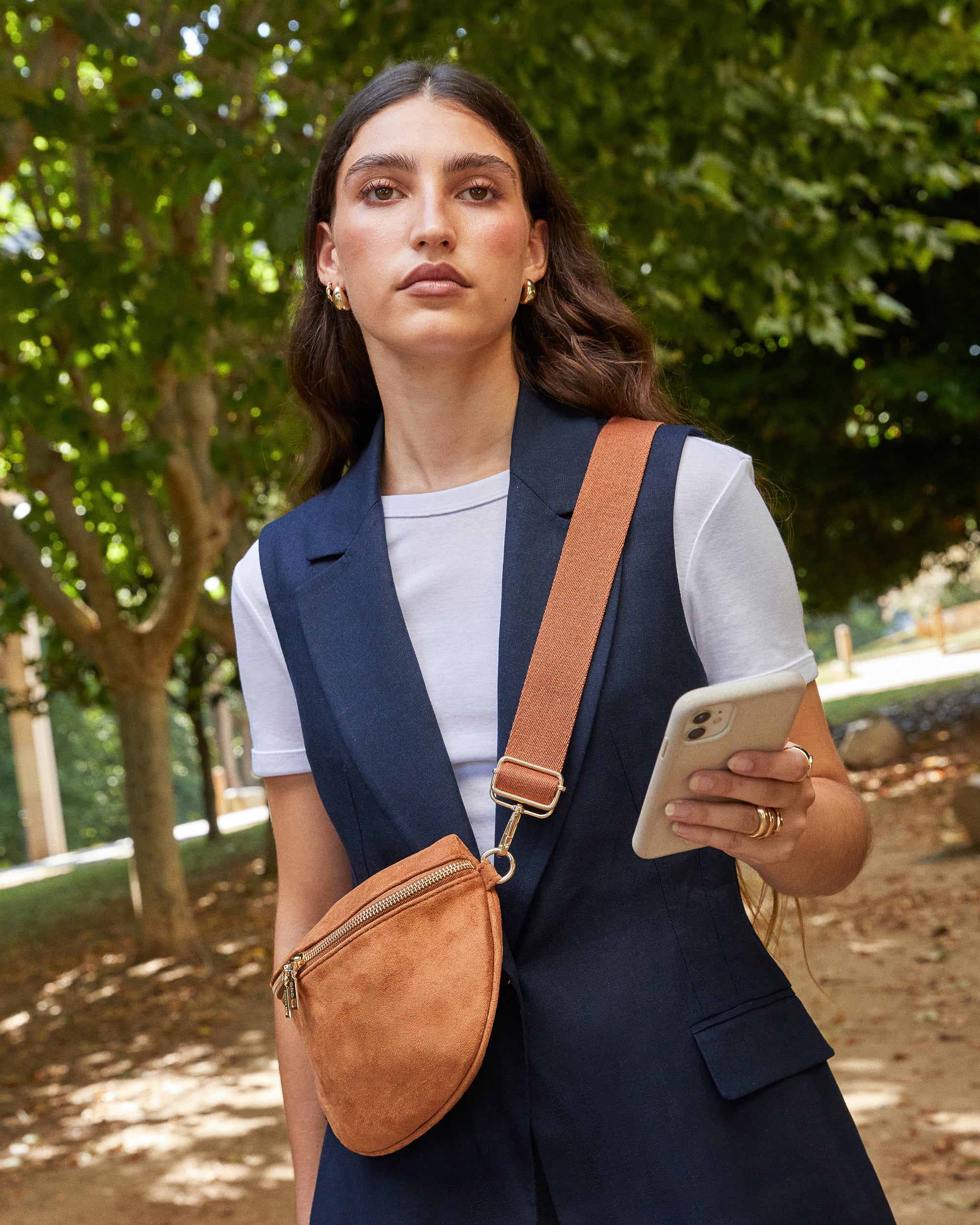 Compact, practical and stylish. Pologi by Misako is the ideal fanny pack for those who move fast, live life to the fullest and don't want complications. Its lightweight, hands-free format makes it the perfect accessory for urban walks, weekend getaways or more active days where comfort is key.