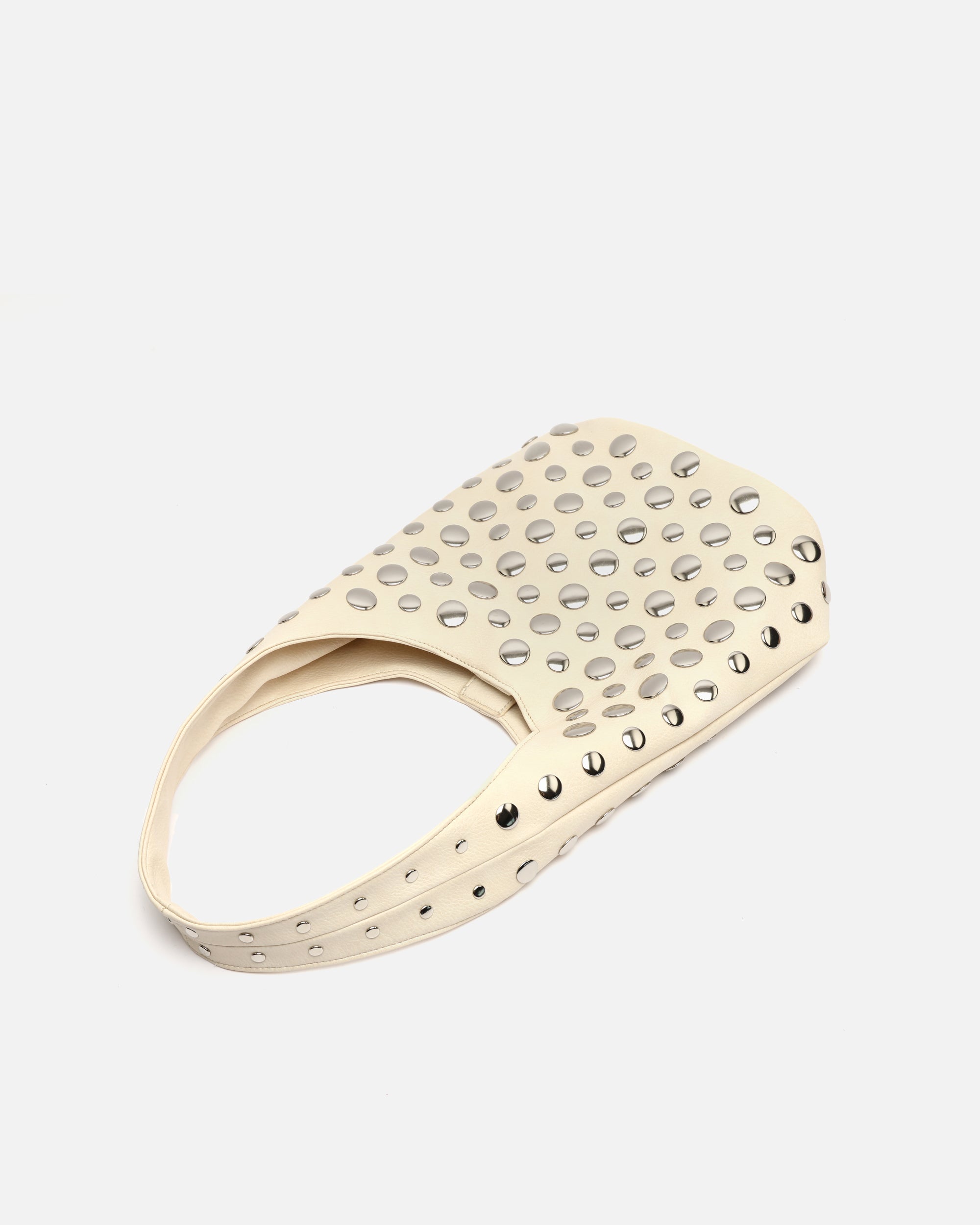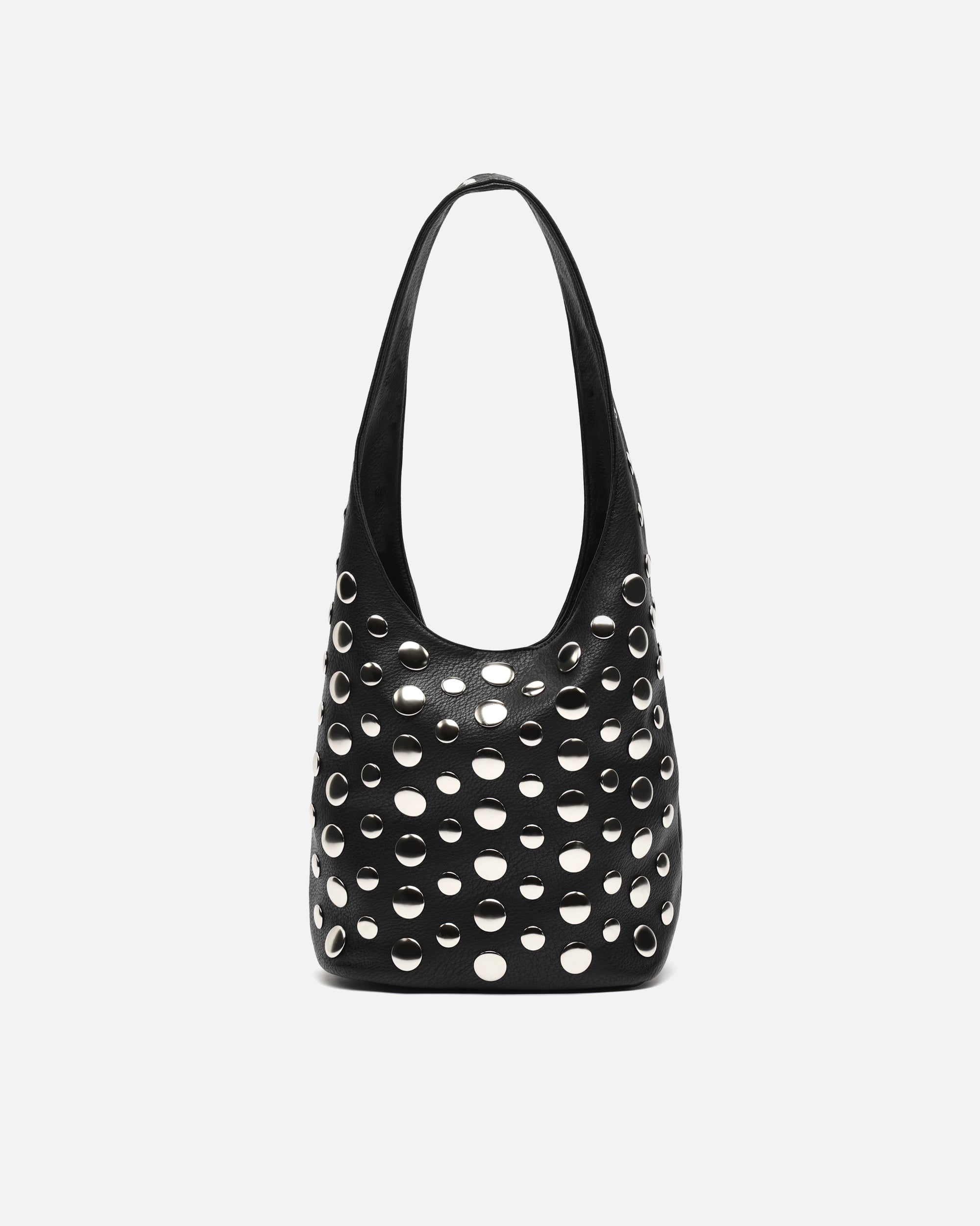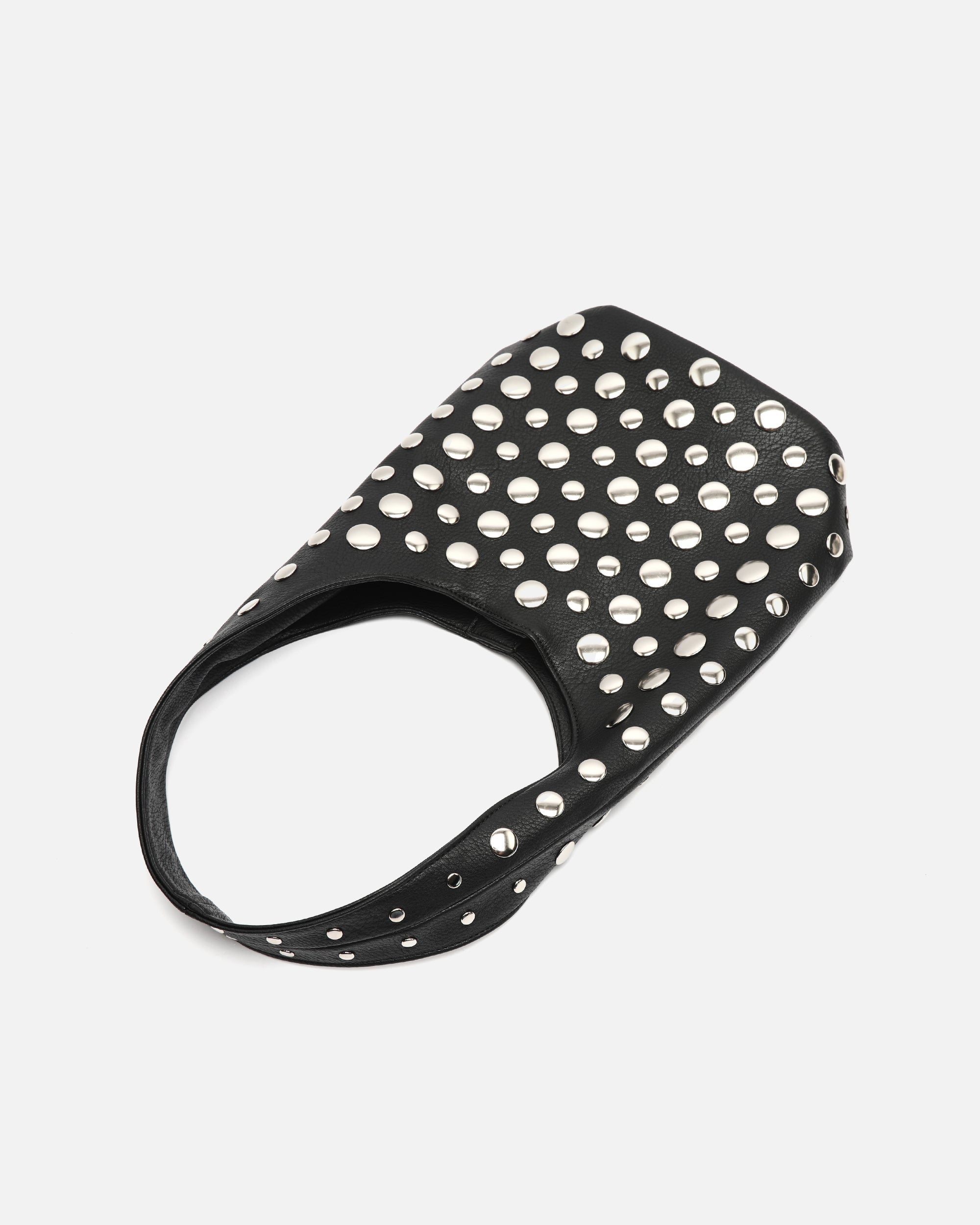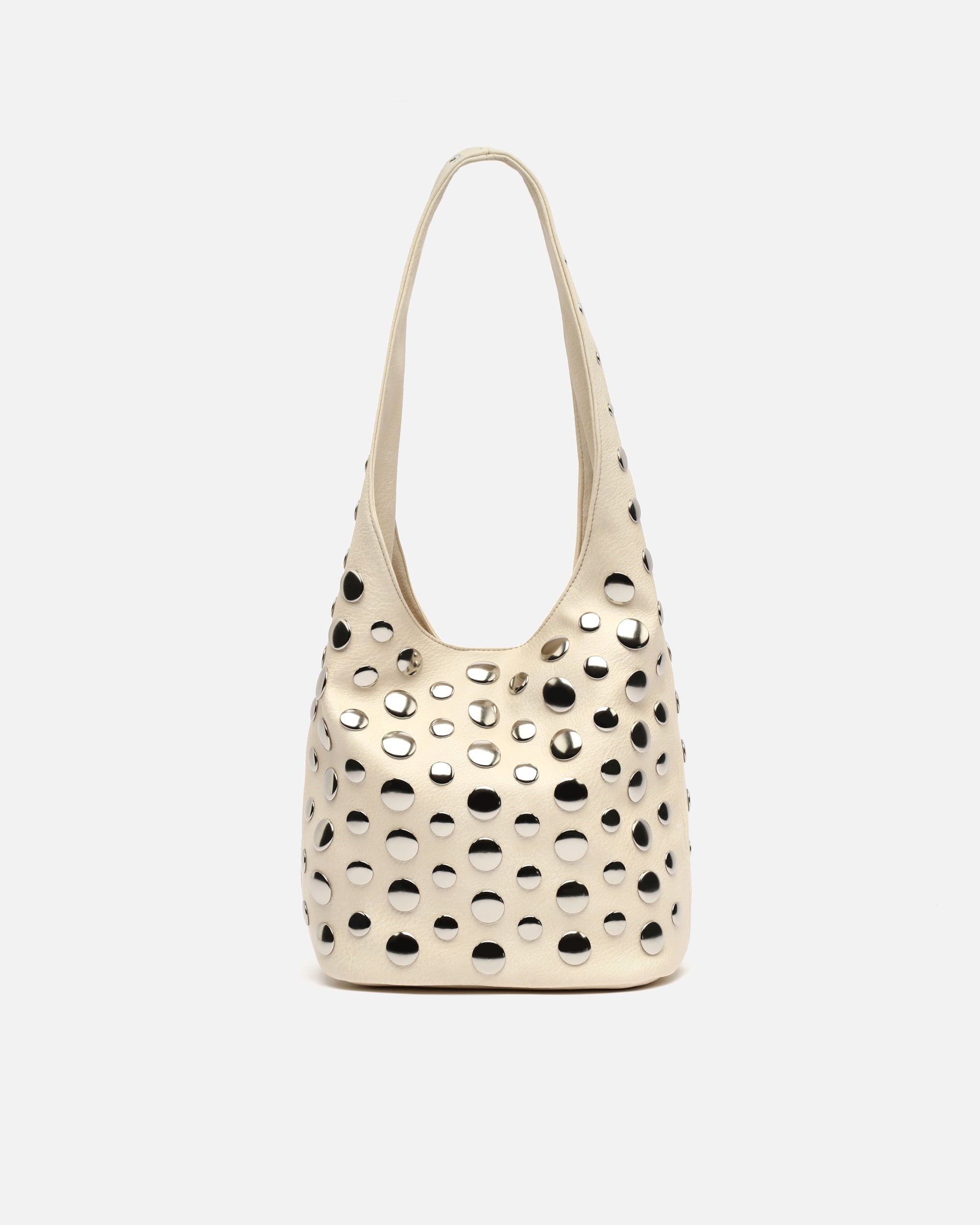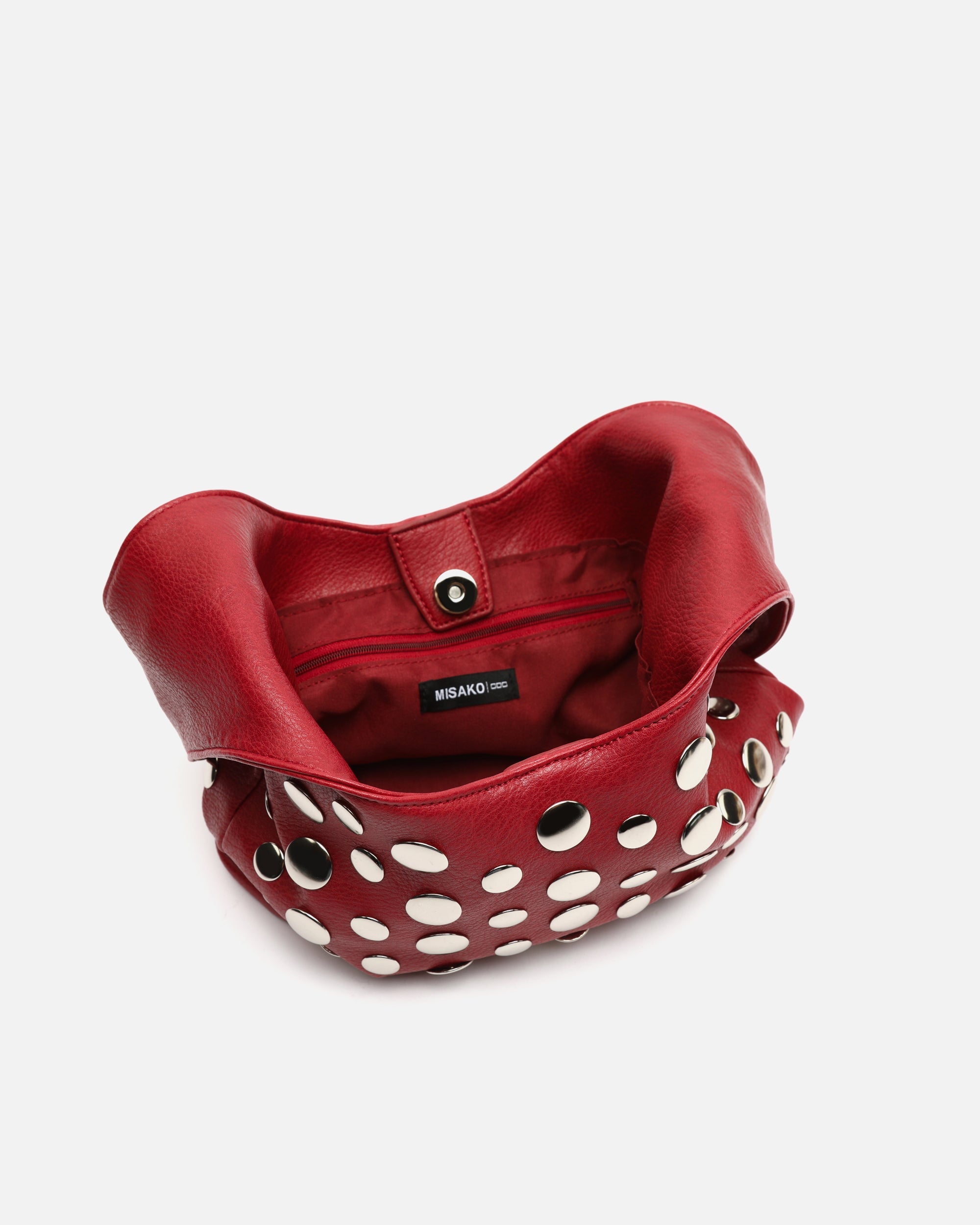 The Tudi bag by Misako is the accessory that will turn heads wherever you go. It is made from soft-finish faux leather with metallic details across the surface, giving it a modern and bold touch that is ideal for brightening up any look.