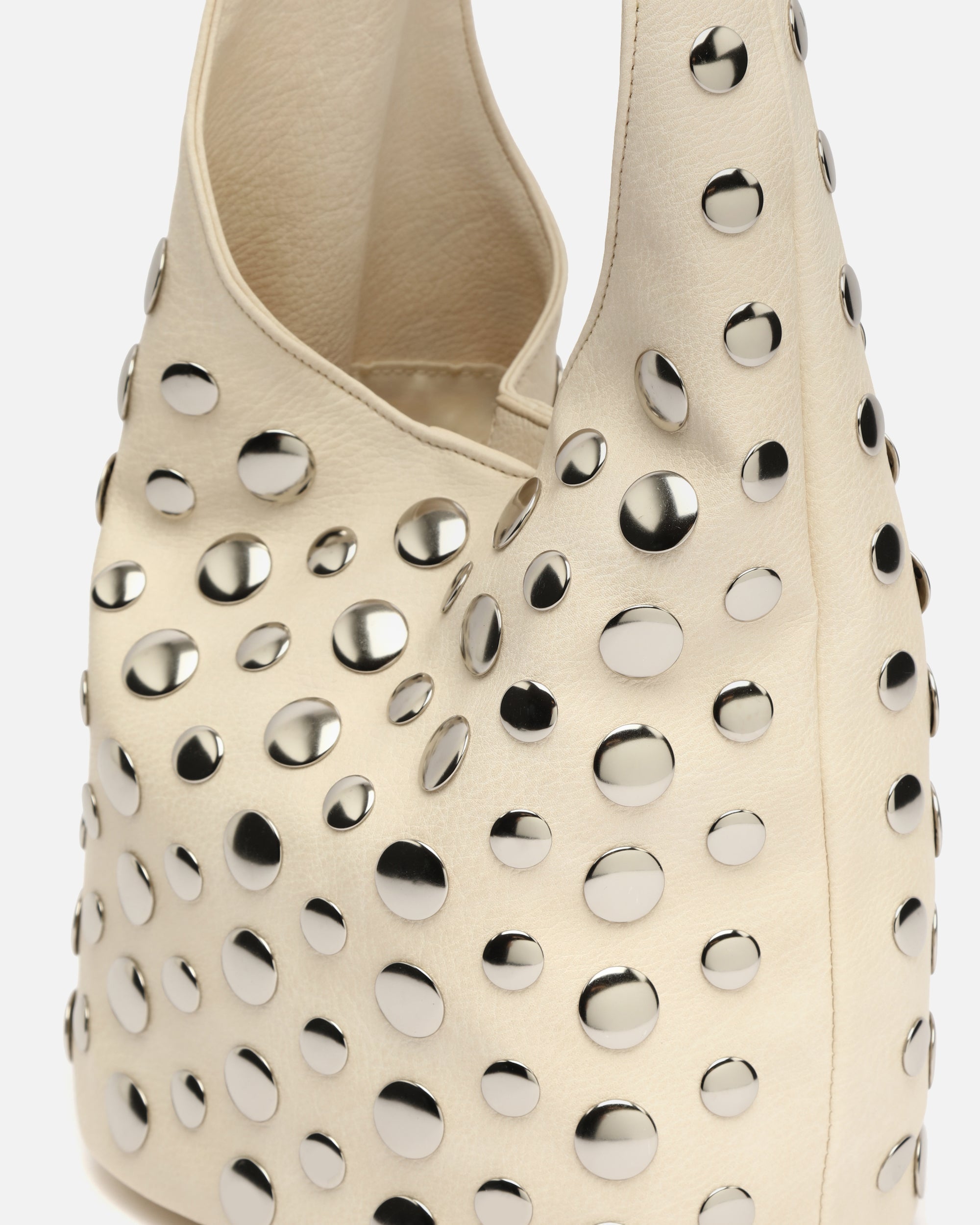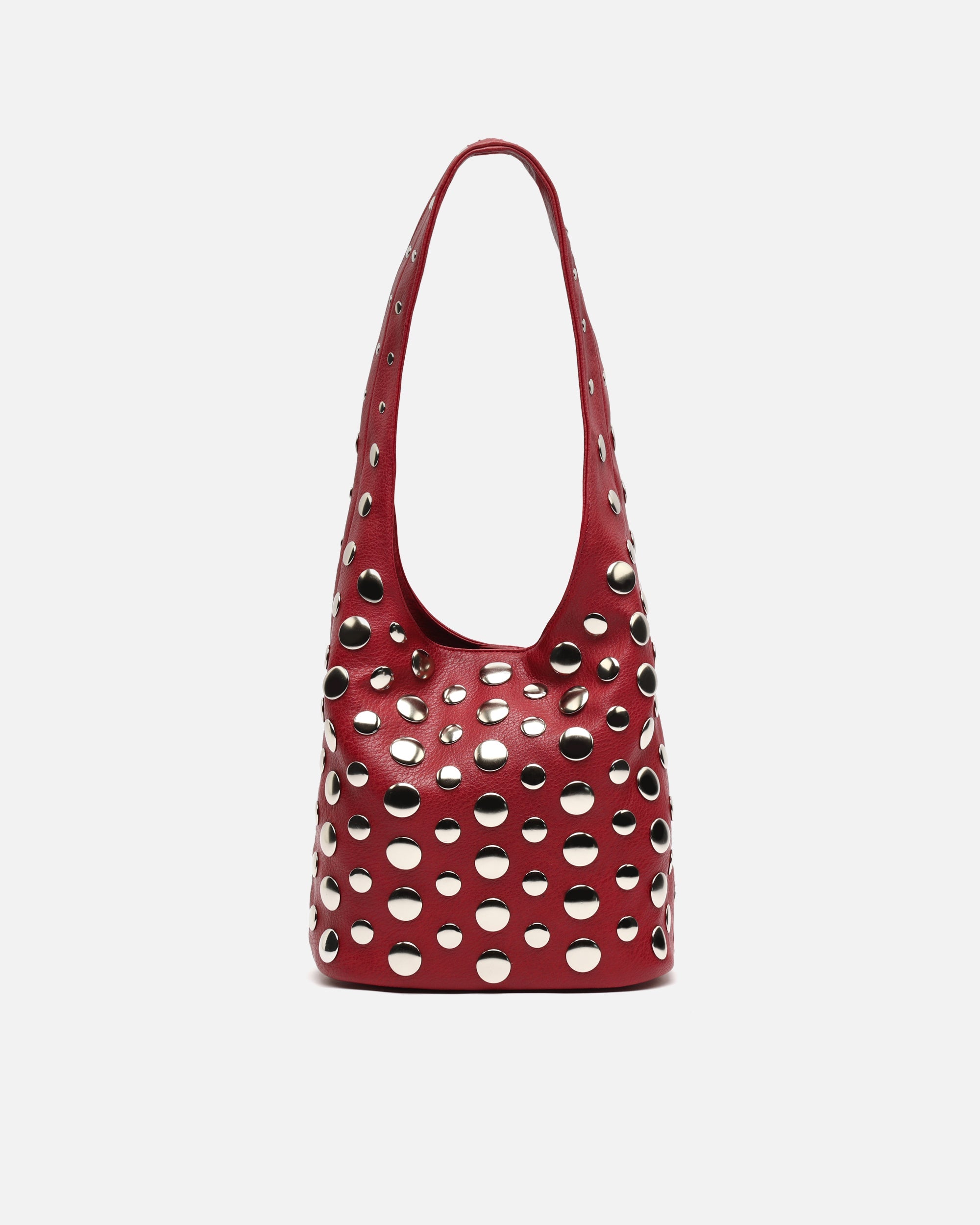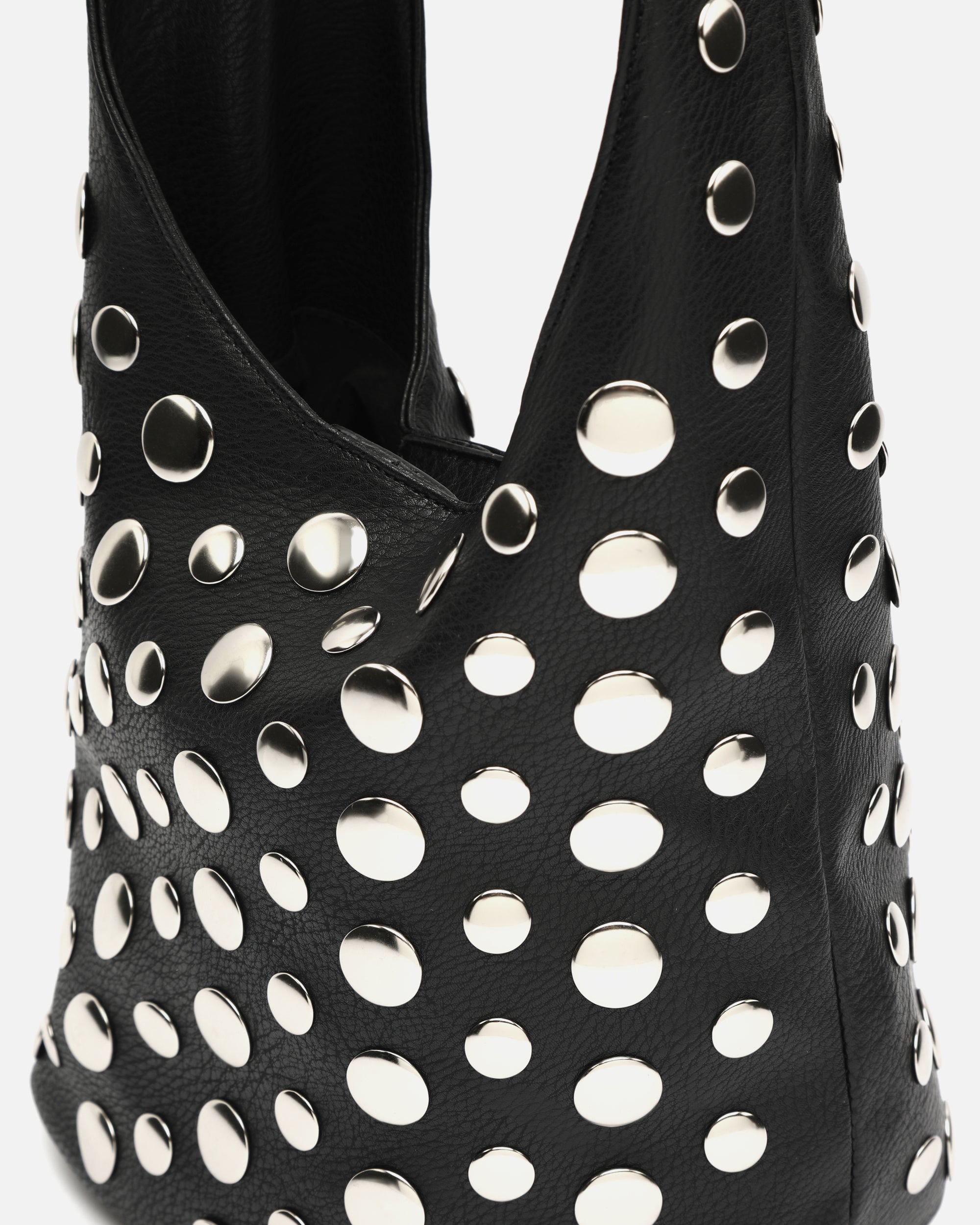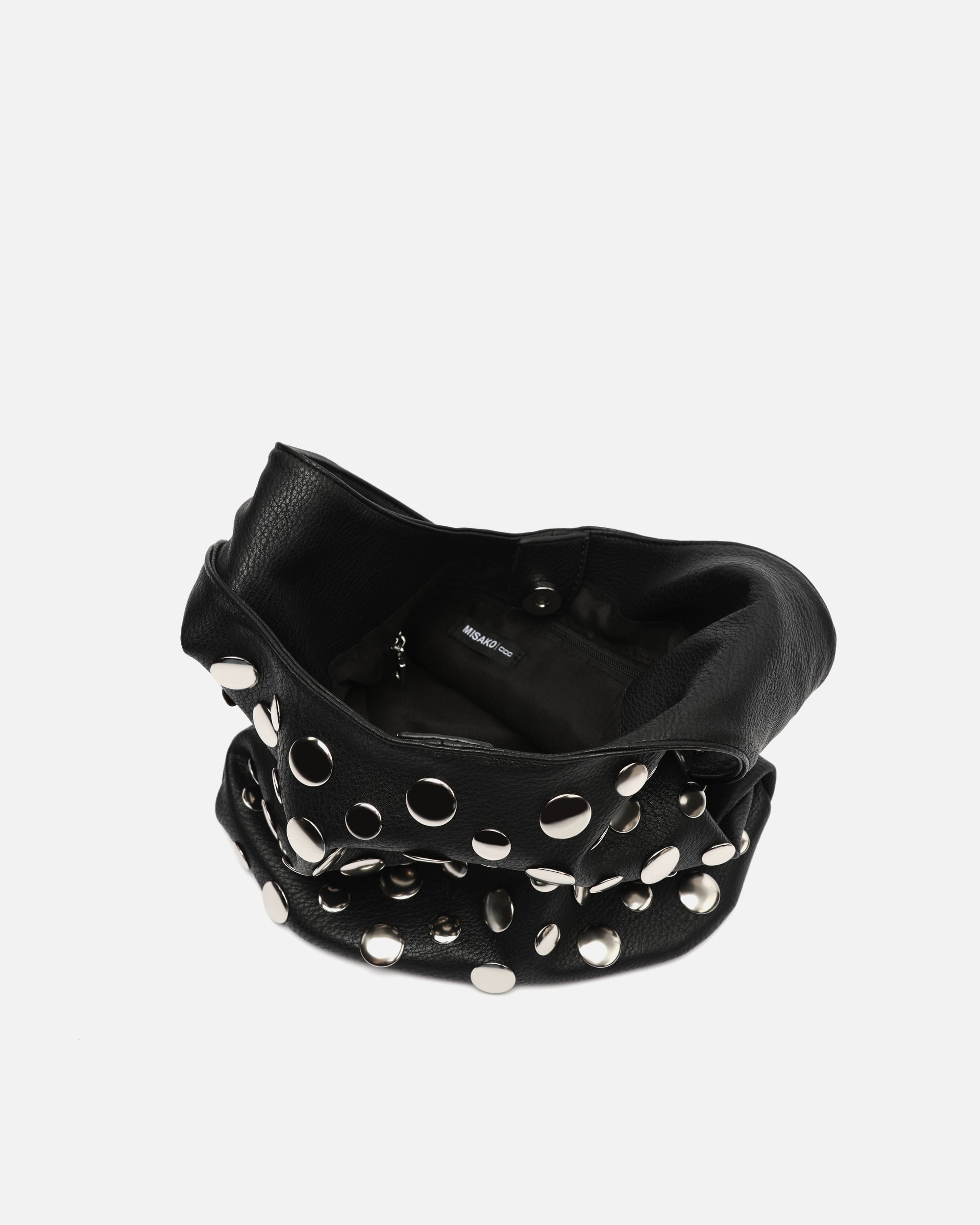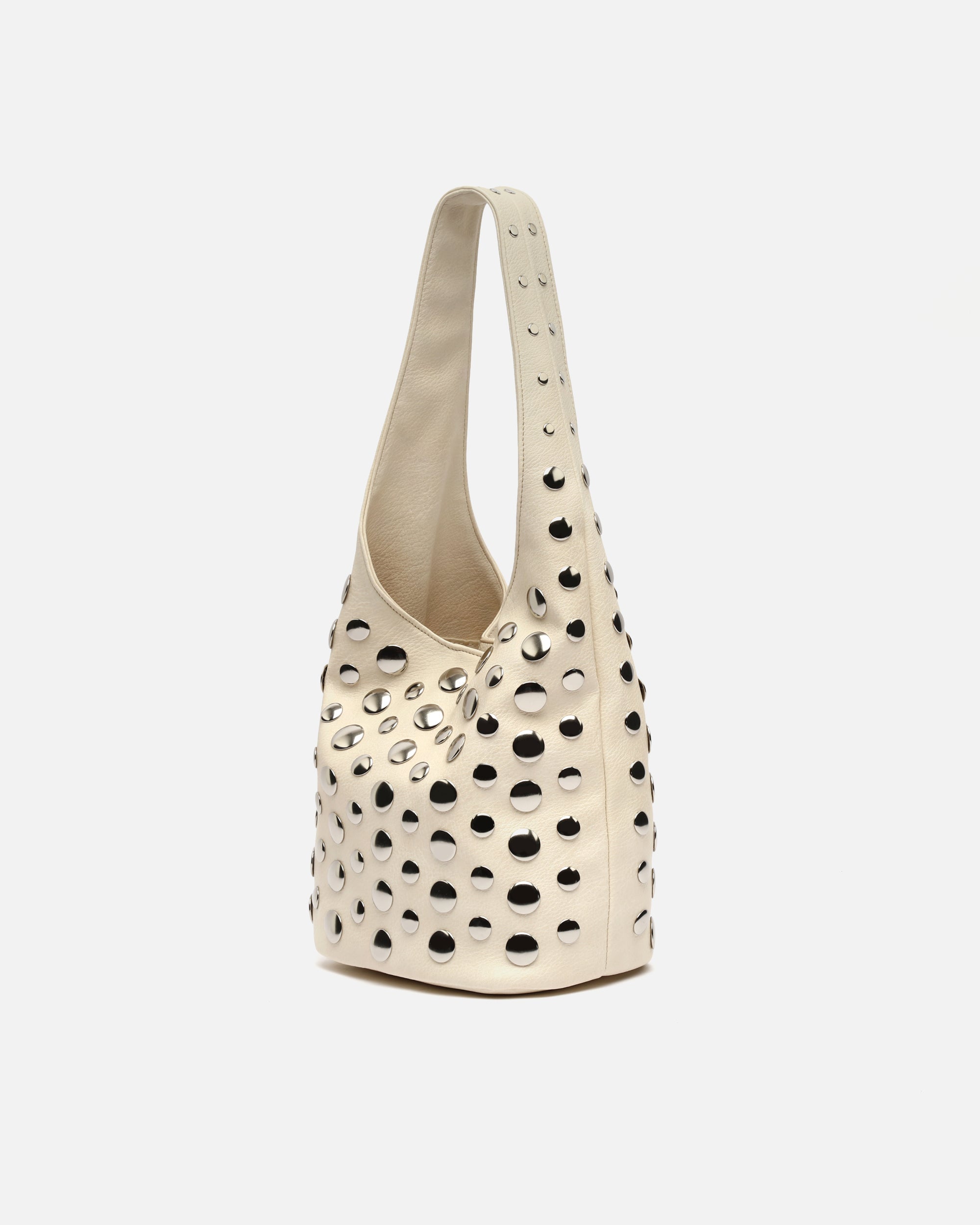 The Tudi bag by Misako is the accessory that will turn heads wherever you go. It is made from soft-finish faux leather with metallic details across the surface, giving it a modern and bold touch that is ideal for brightening up any look.