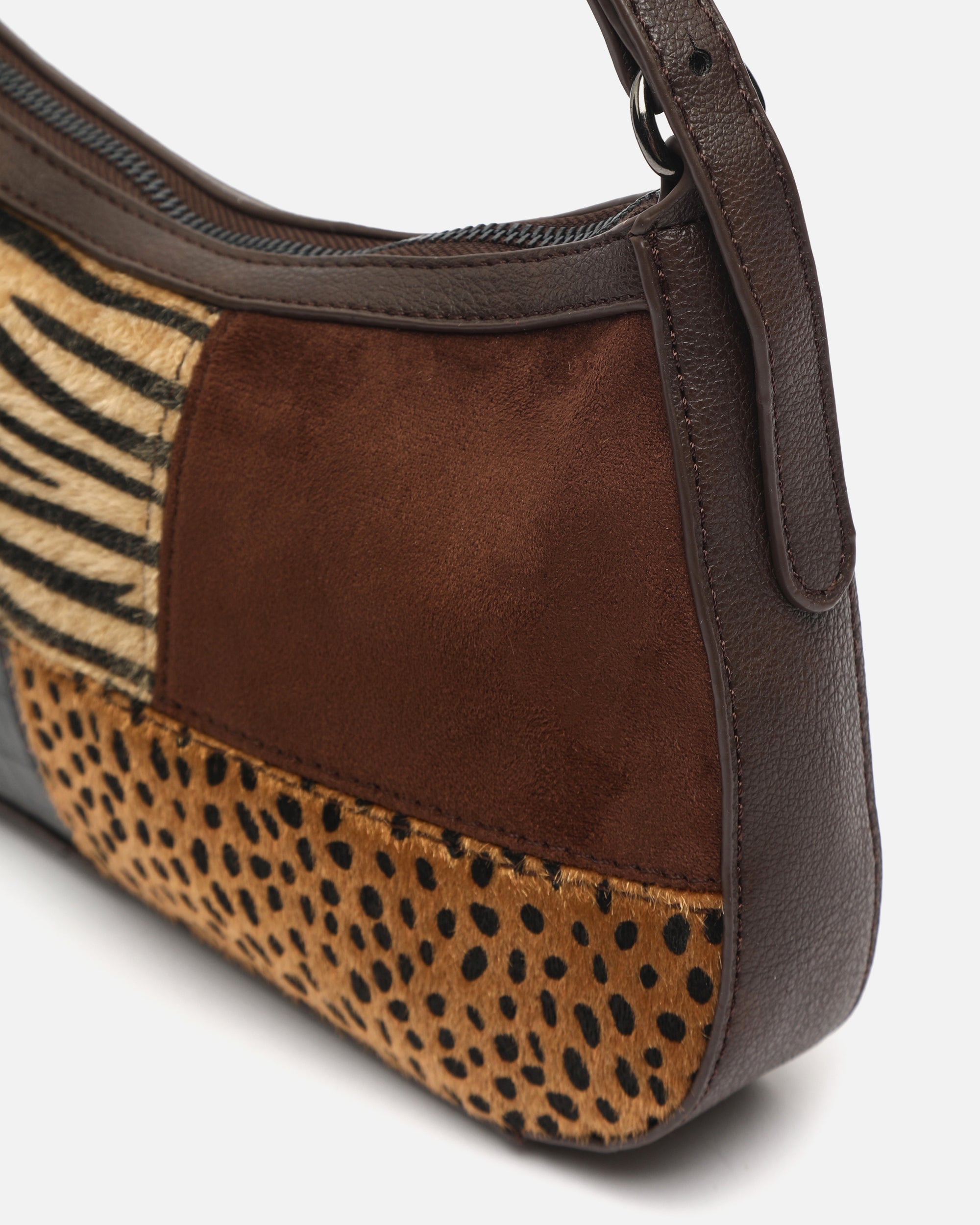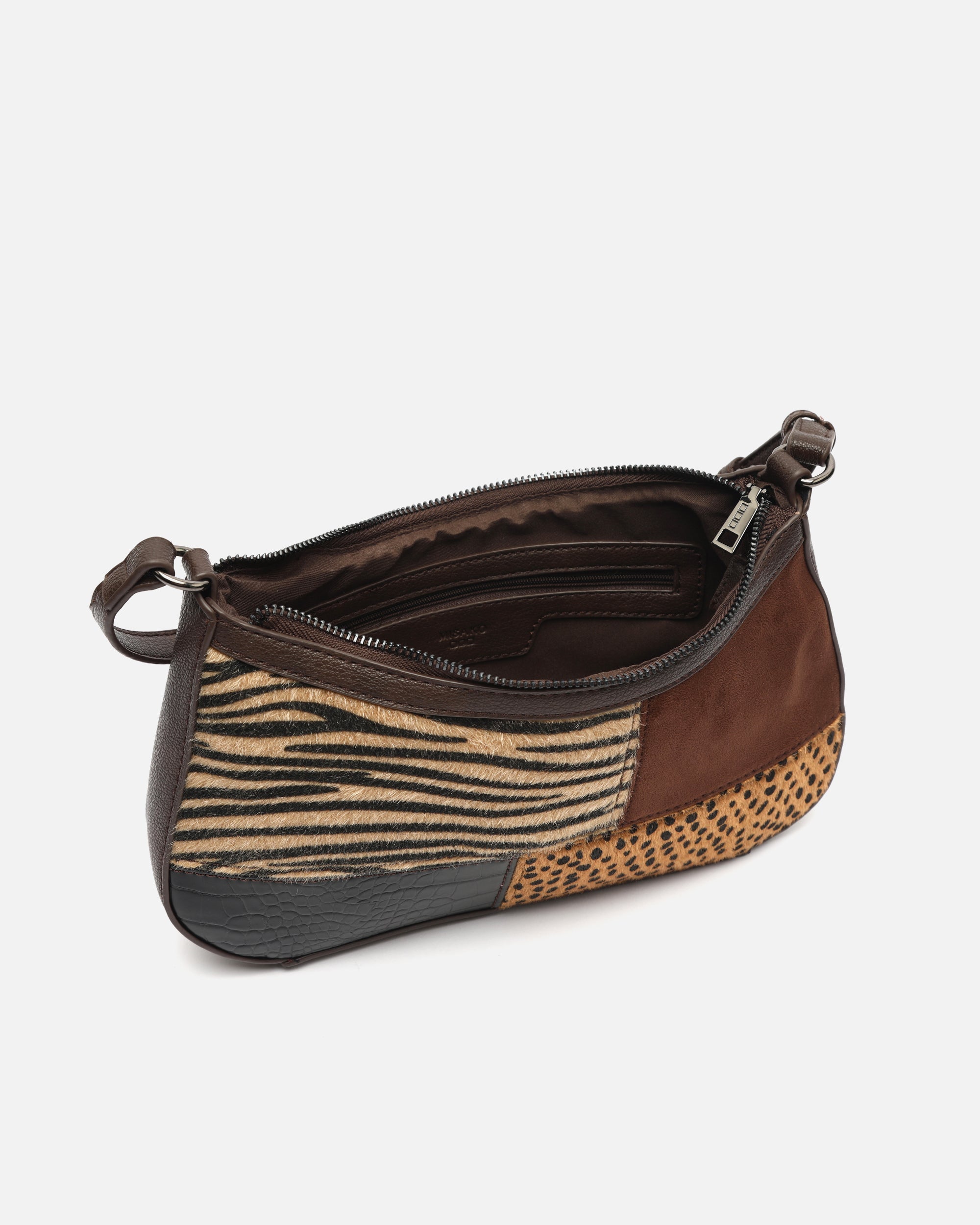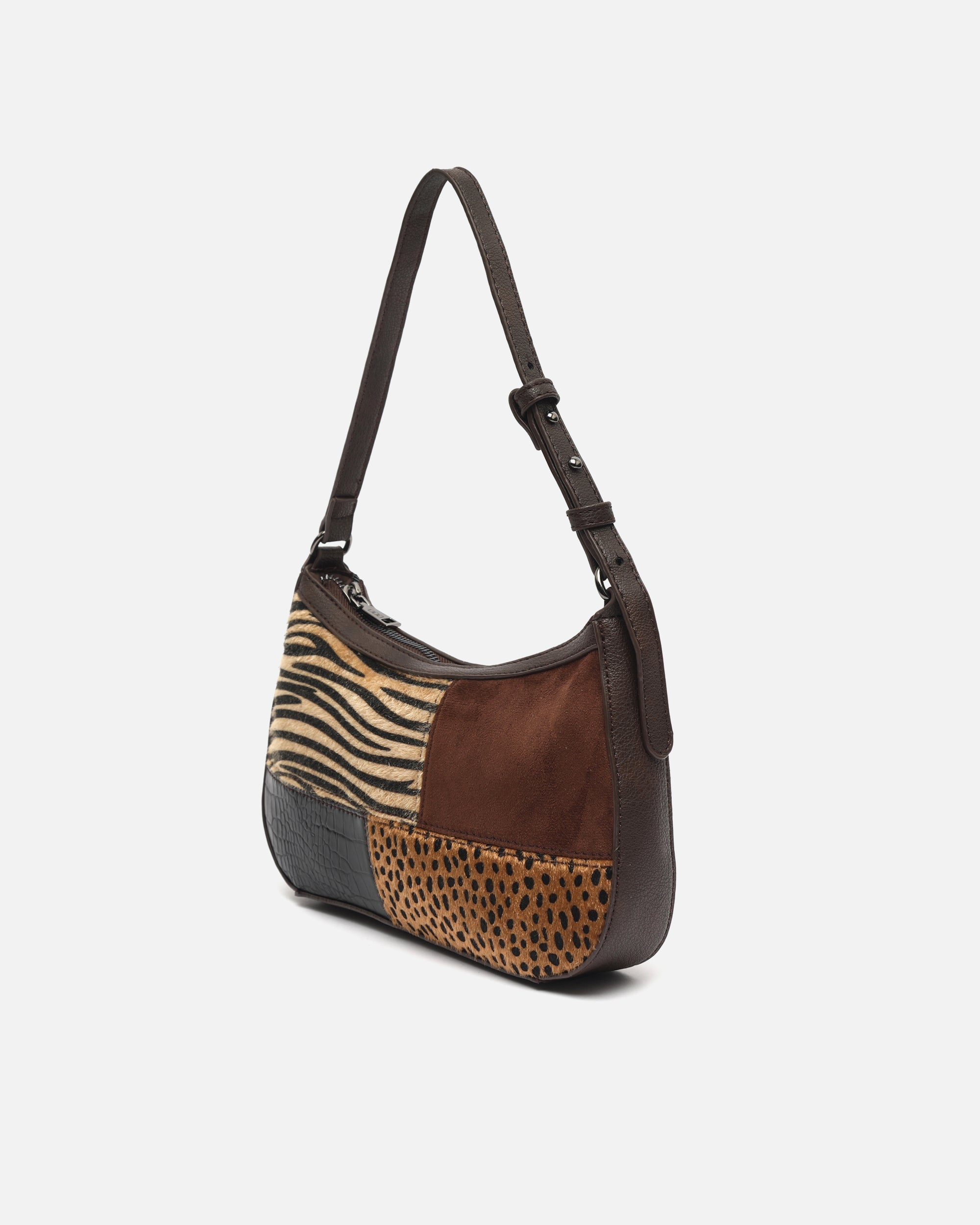 Zivera small shoulder bag with animal print patchwork pattern by Misako