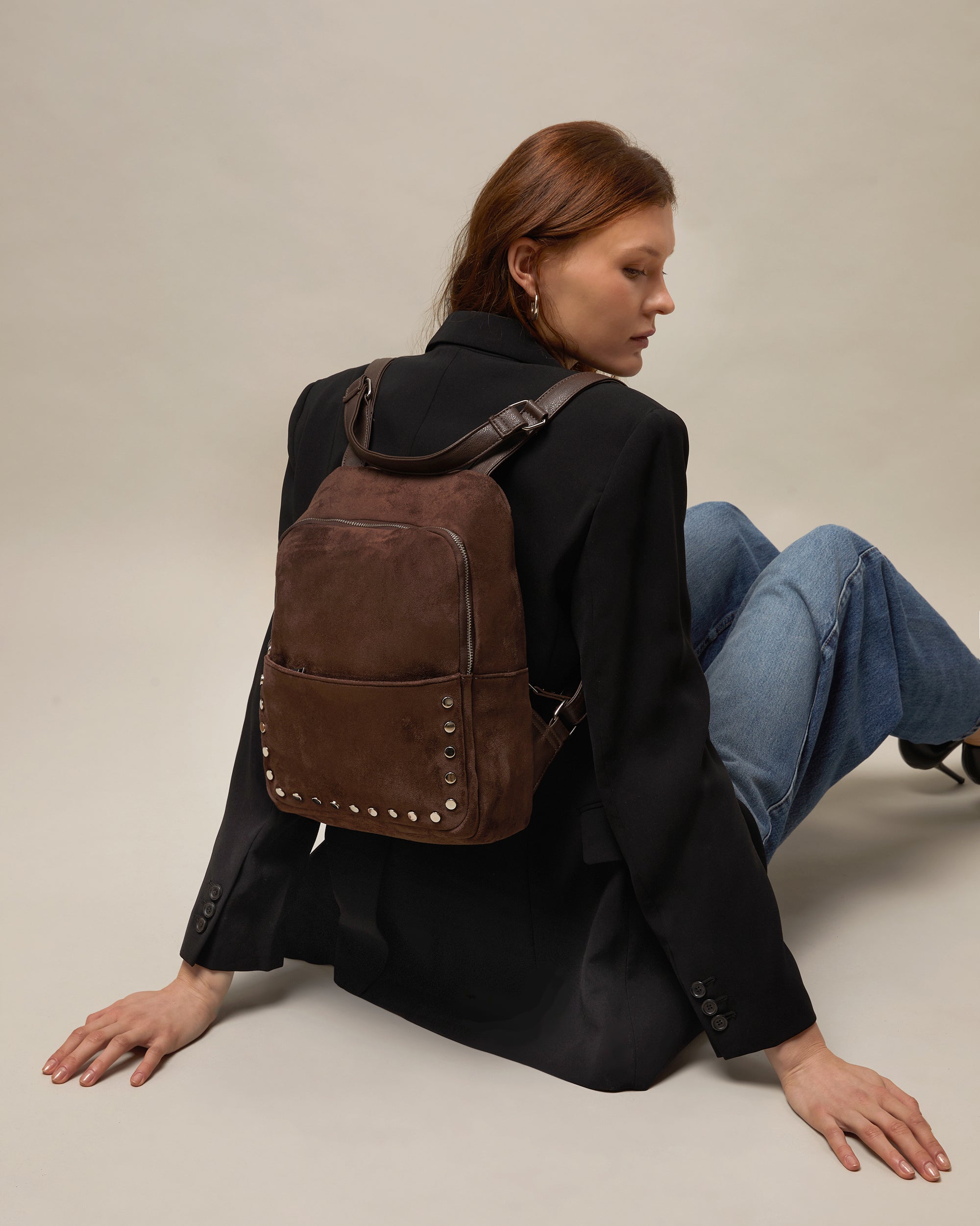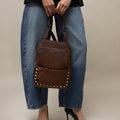 Junichi de Misako es la mochila que te permite moverte con total libertad y de forma segura. Está confeccionada en un elegante material efecto ante, con cuidados detalles como las tachas metálicas doradas en el bolsillo frontal, que le dan un toque de distinción.