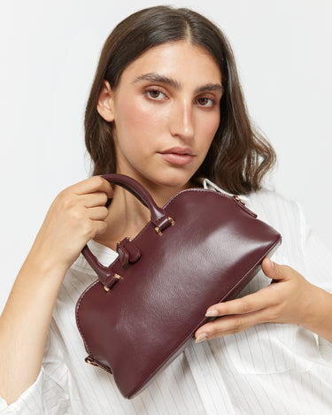 Le sac Denix de Misako est un accessoire intemporel qui allie élégance naturelle et fonctionnalité. Sa structure rigide et ses lignes épurées soulignent son design minimaliste, tandis que les détails métalliques dorés lui apportent une touche de sophistication.