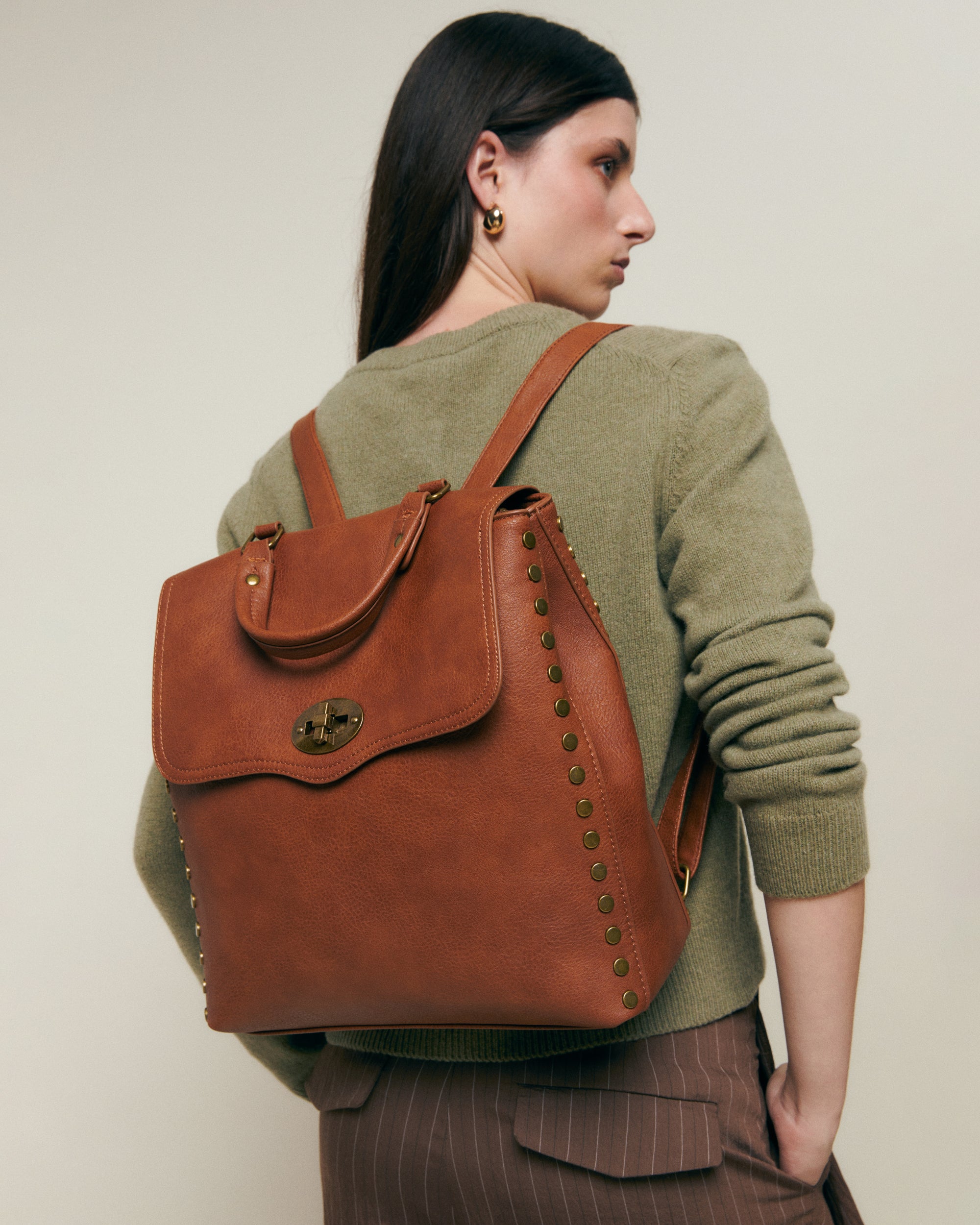 Sac à dos avec rabat et détails métalliques