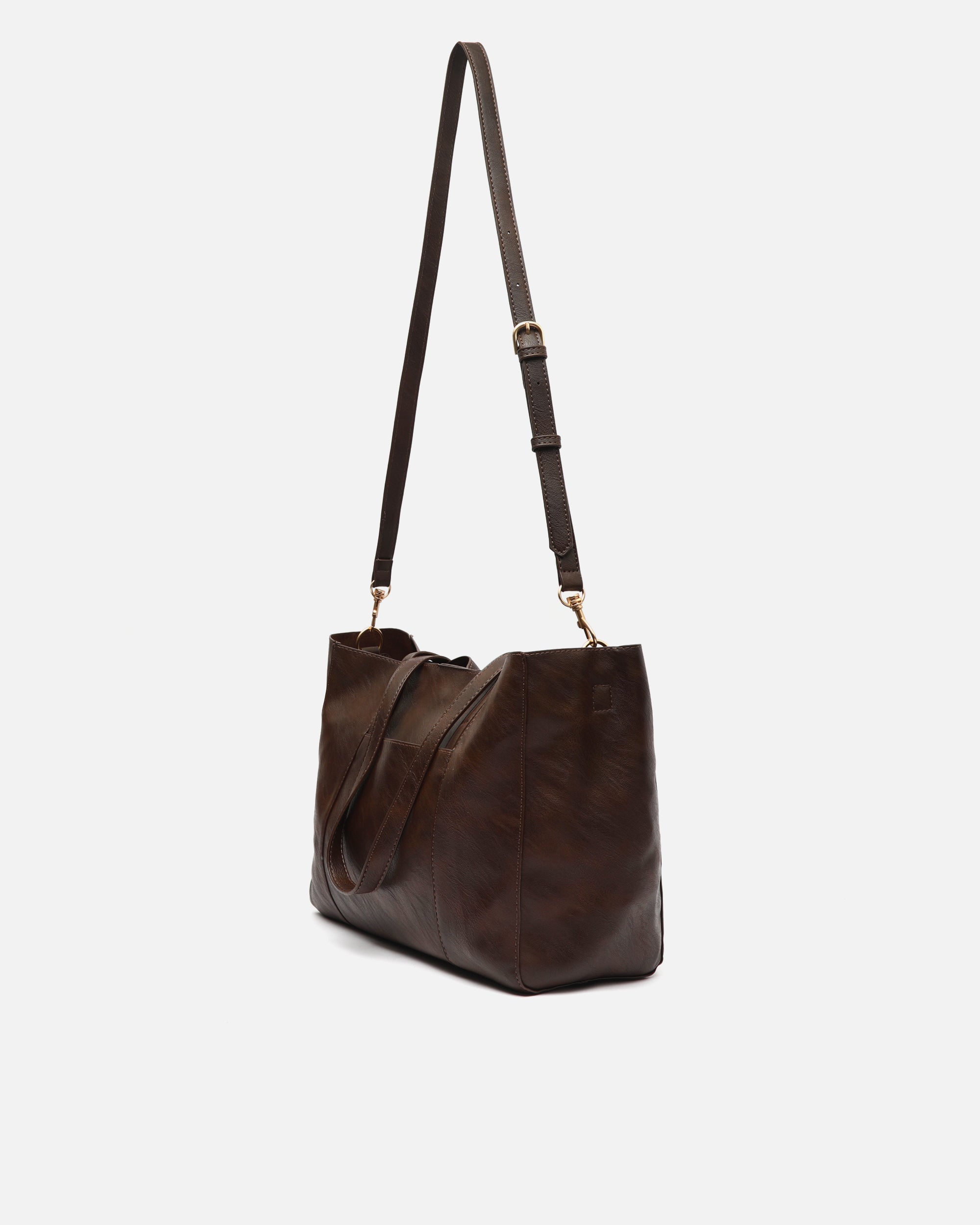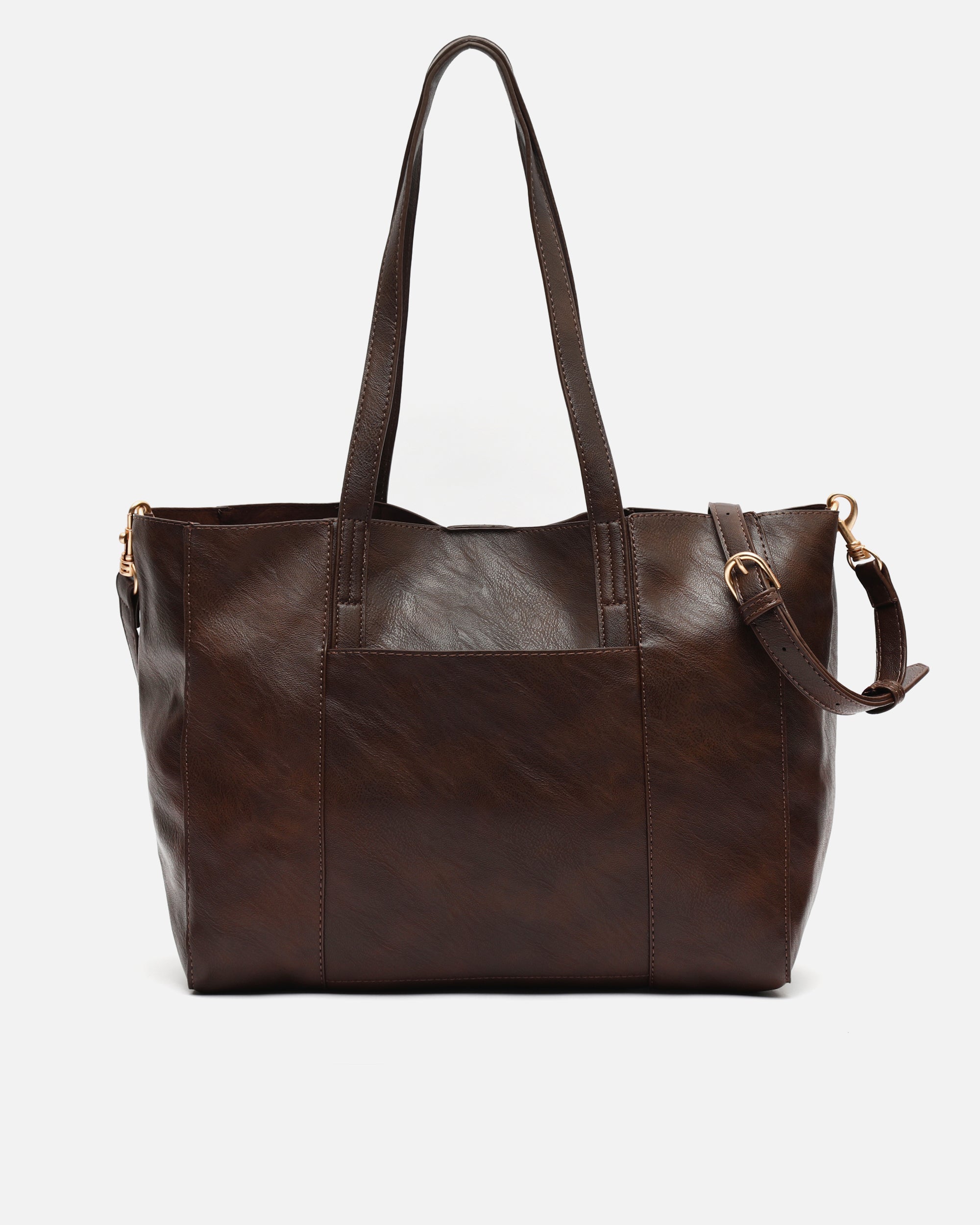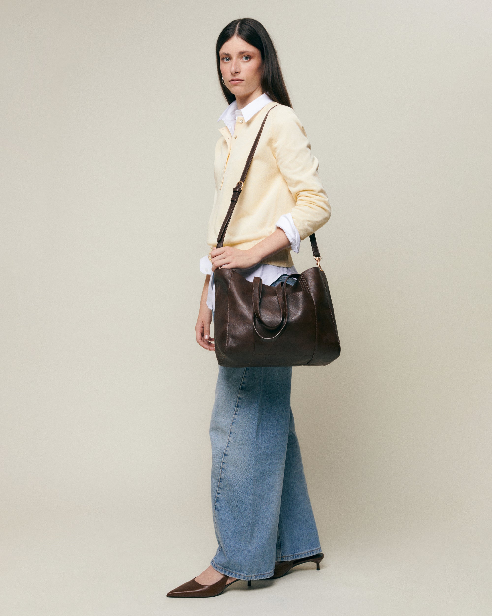 Delfino est le sac shopping de Misako qui réinterprète la silhouette classique du shopping, avec une finition effet cuir aux nuances qui lui confèrent une élégance naturelle et une polyvalence pour les looks de bureau décontractés ou plus formels et pour la saison événementielle. Il comprend une trousse de toilette intérieure amovible assortie, dotée d'un mousqueton et de fermoirs métalliques, qui peut être utilisée comme séparateur ou portée séparément comme pochette, organisateur, mini-sac ou pochette de voyage. Ses longues poignées intégrées et sa bandoulière réglable vous permettent de le porter à l'épaule ou en travers du corps, selon votre style et vos besoins. Complétez votre set avec l'un de nos sacs à main fonctionnels et préparez-vous pour cette saison avec tout ce dont vous avez besoin à portée de main.