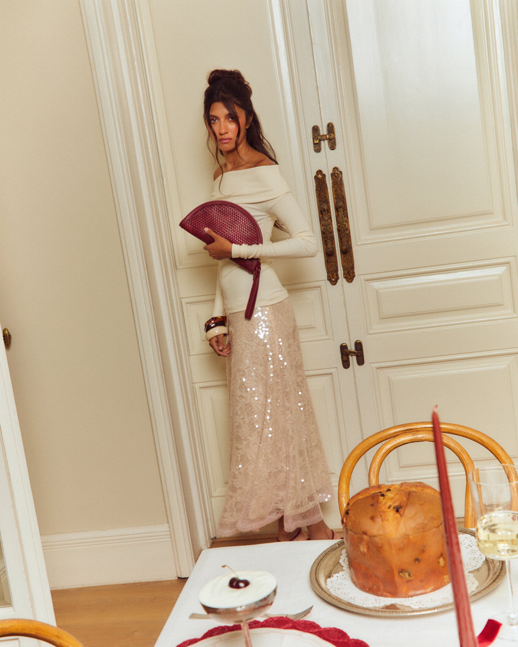 Empadi sac de soirée en demi-lune tressé avec bandoulière amovible de Misako