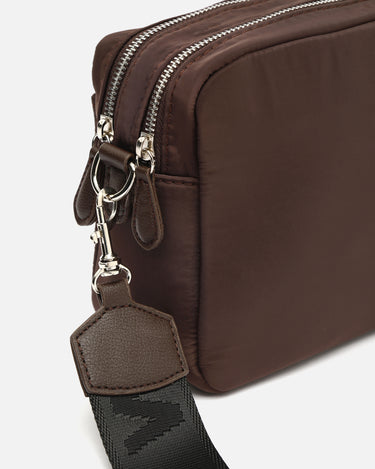 Gerani s'ouvre sur deux compartiments principaux séparés, tous deux fermés par une fermeture éclair argentée pour une organisation intelligente. Au dos, il y a une petite poche pratique, idéale pour transporter votre carte de voyage ou les objets que vous voulez garder à portée de main.