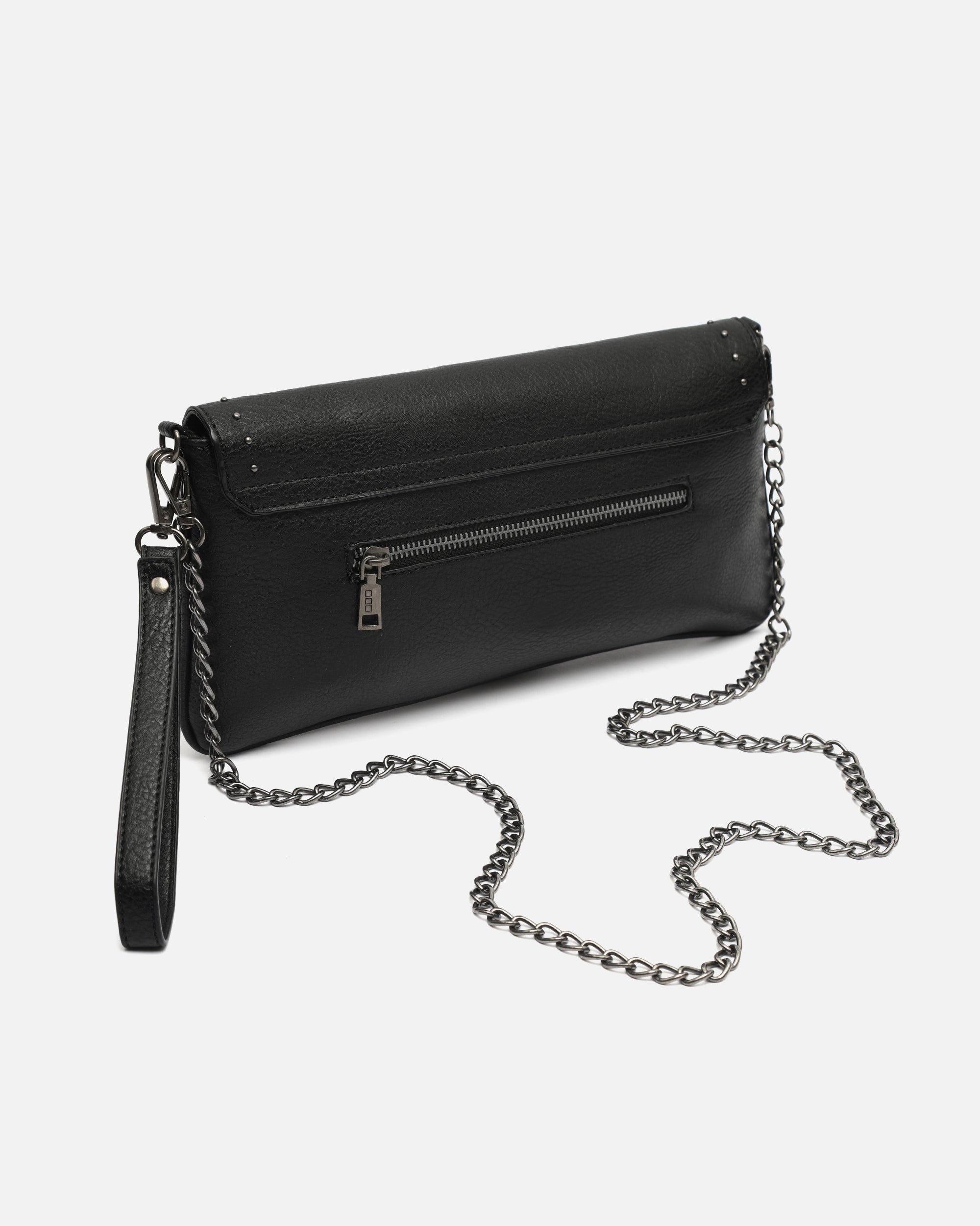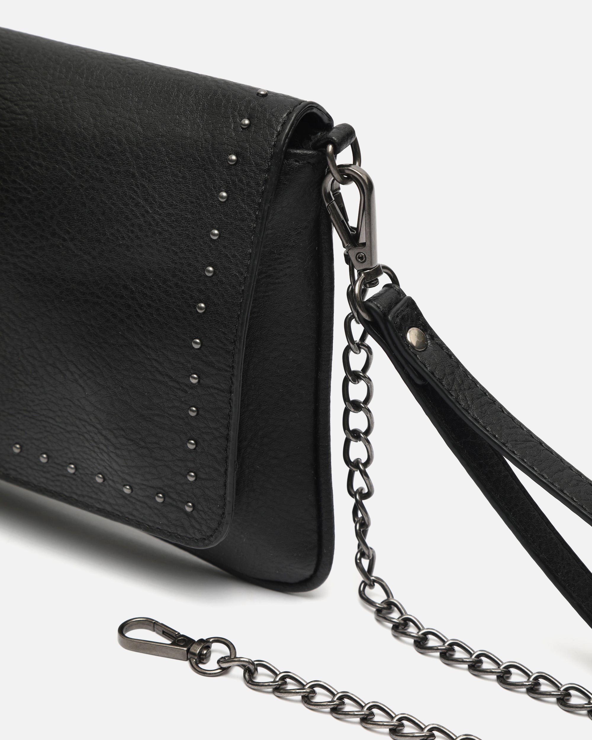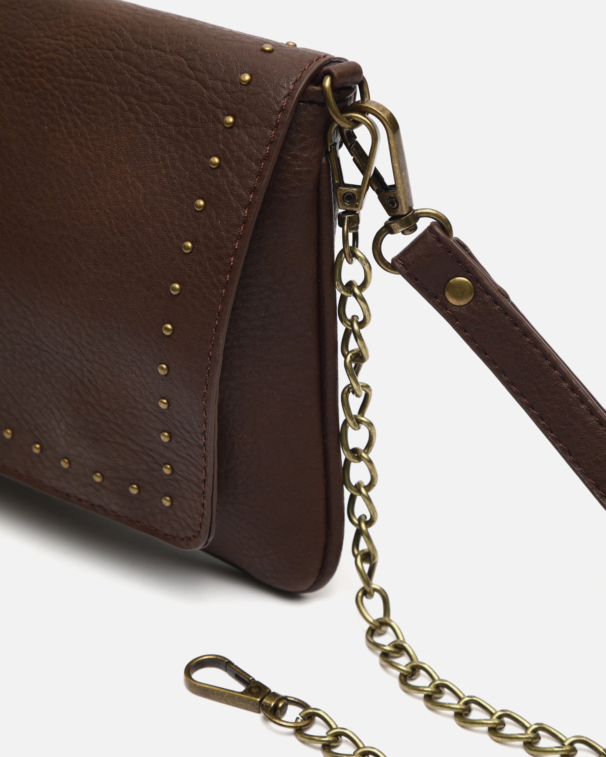 À l'extérieur, un élégant rabat avant avec de subtils détails métalliques rehausse son design sophistiqué, tandis que les fermoirs magnétiques protègent vos essentiels. Sa bandoulière en chaîne argentée amovible vous permet de le porter confortablement à l'épaule, et la poignée latérale vous offre la possibilité de l'utiliser comme une pochette. À l'arrière, une poche zippée permet d'accéder rapidement à l'essentiel et à l'intérieur, un autre compartiment vous aide à tout ranger.