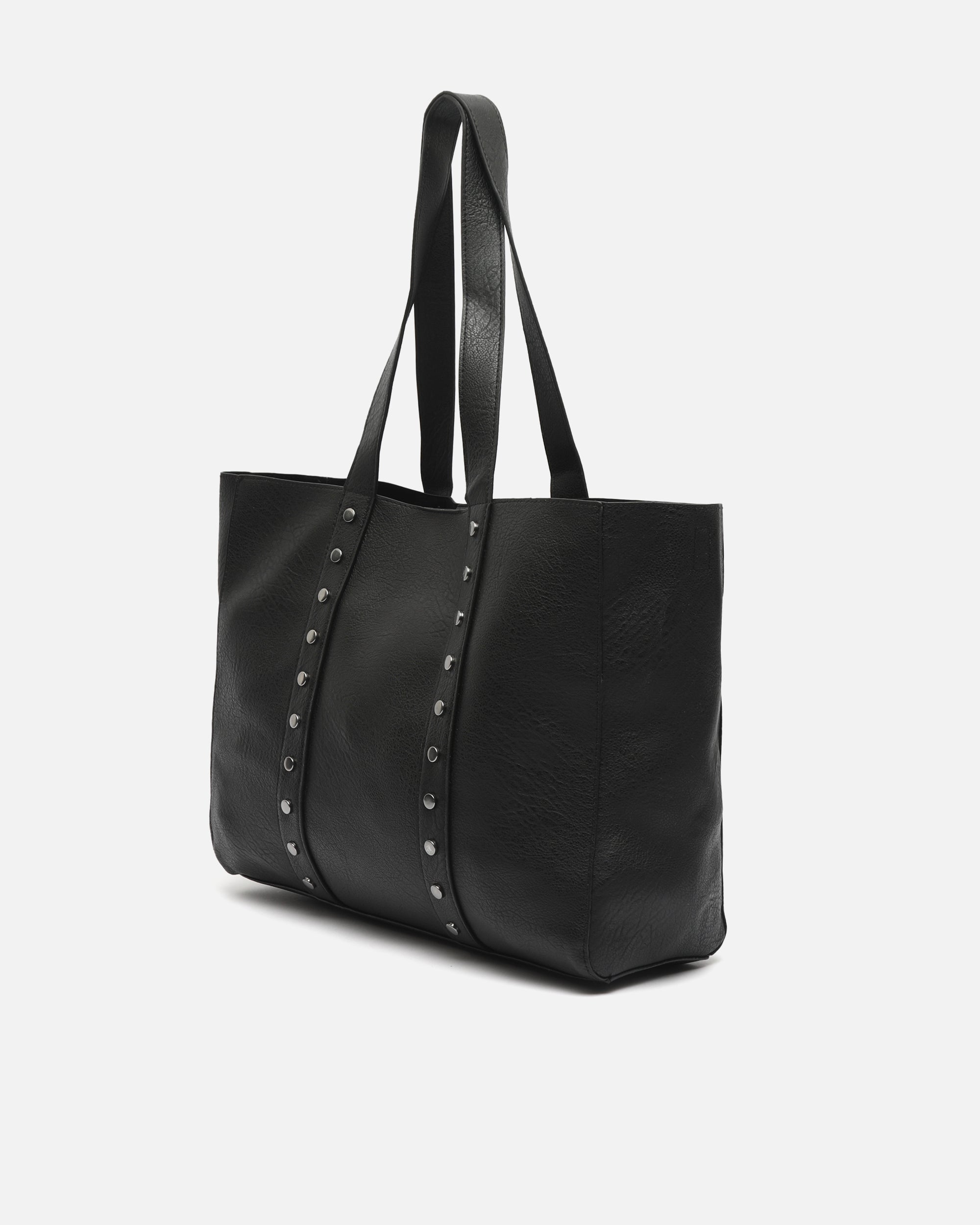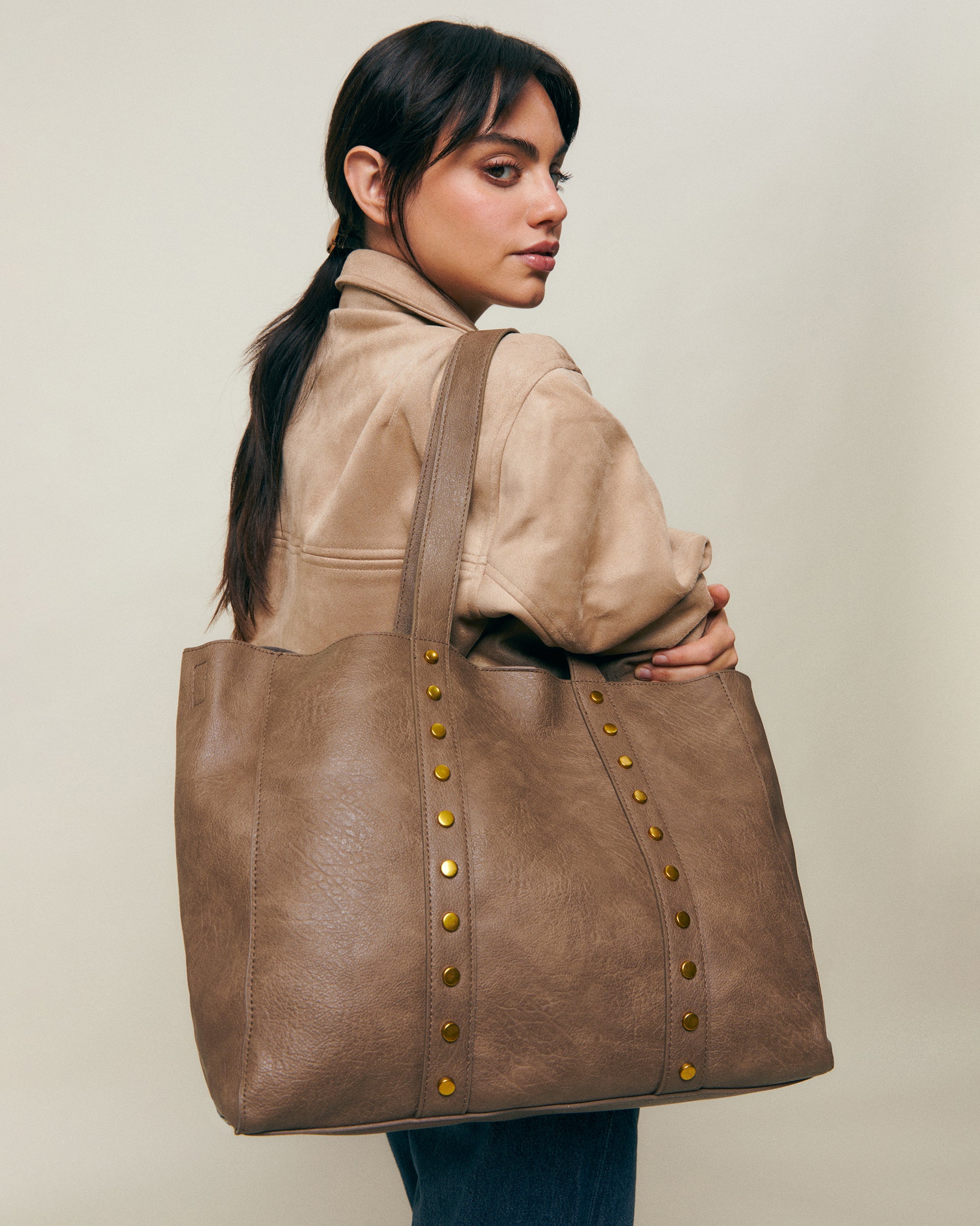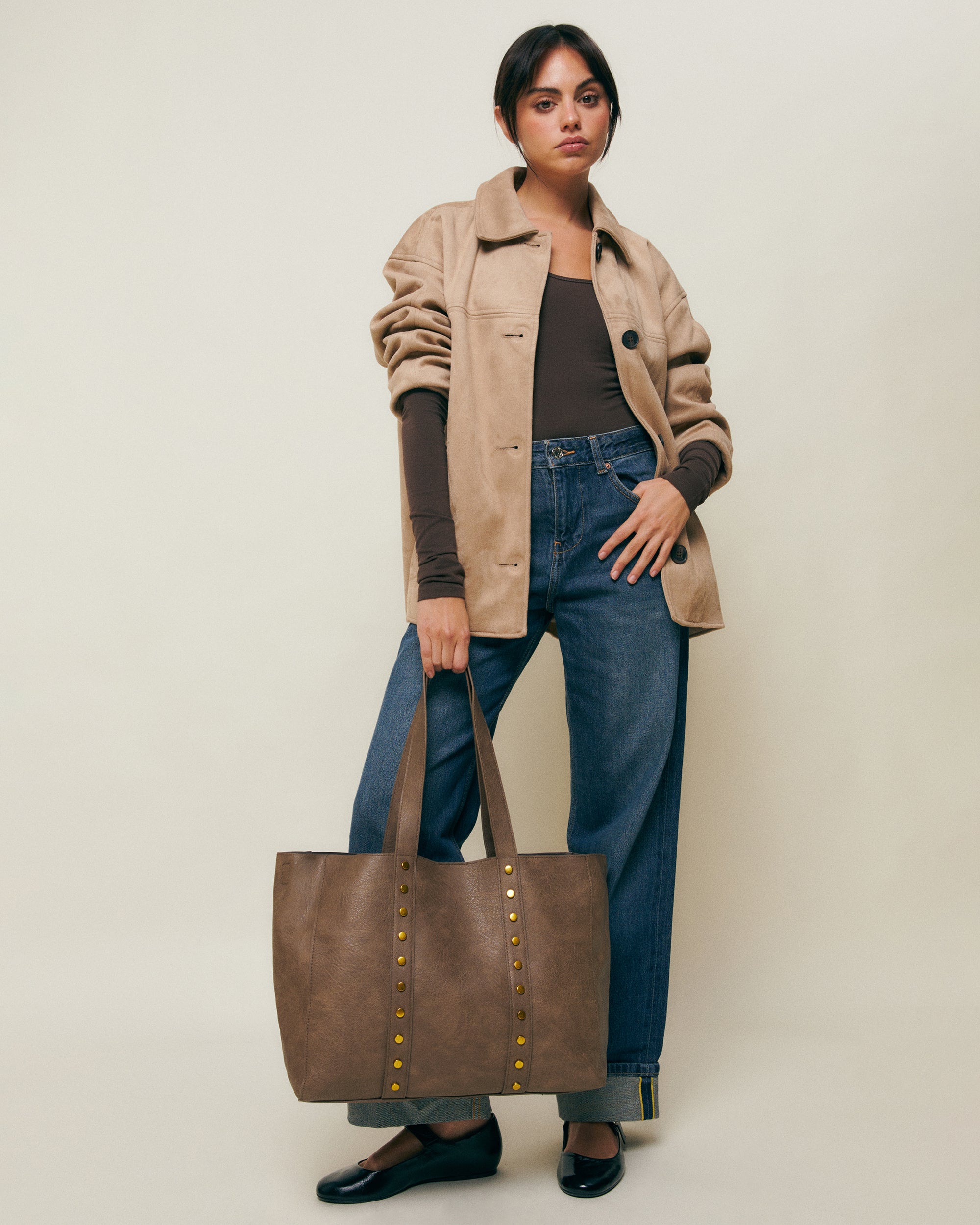 Junichi de Misako est un grand sac cabas qui se distingue par sa fonctionnalité et son design aux détails soignés. Confectionné dans un simili cuir de haute qualité et orné de clous métalliques sophistiqués sur le devant qui lui ajoutent une touche de caractère, ce modèle est un indispensable de votre garde-robe.