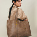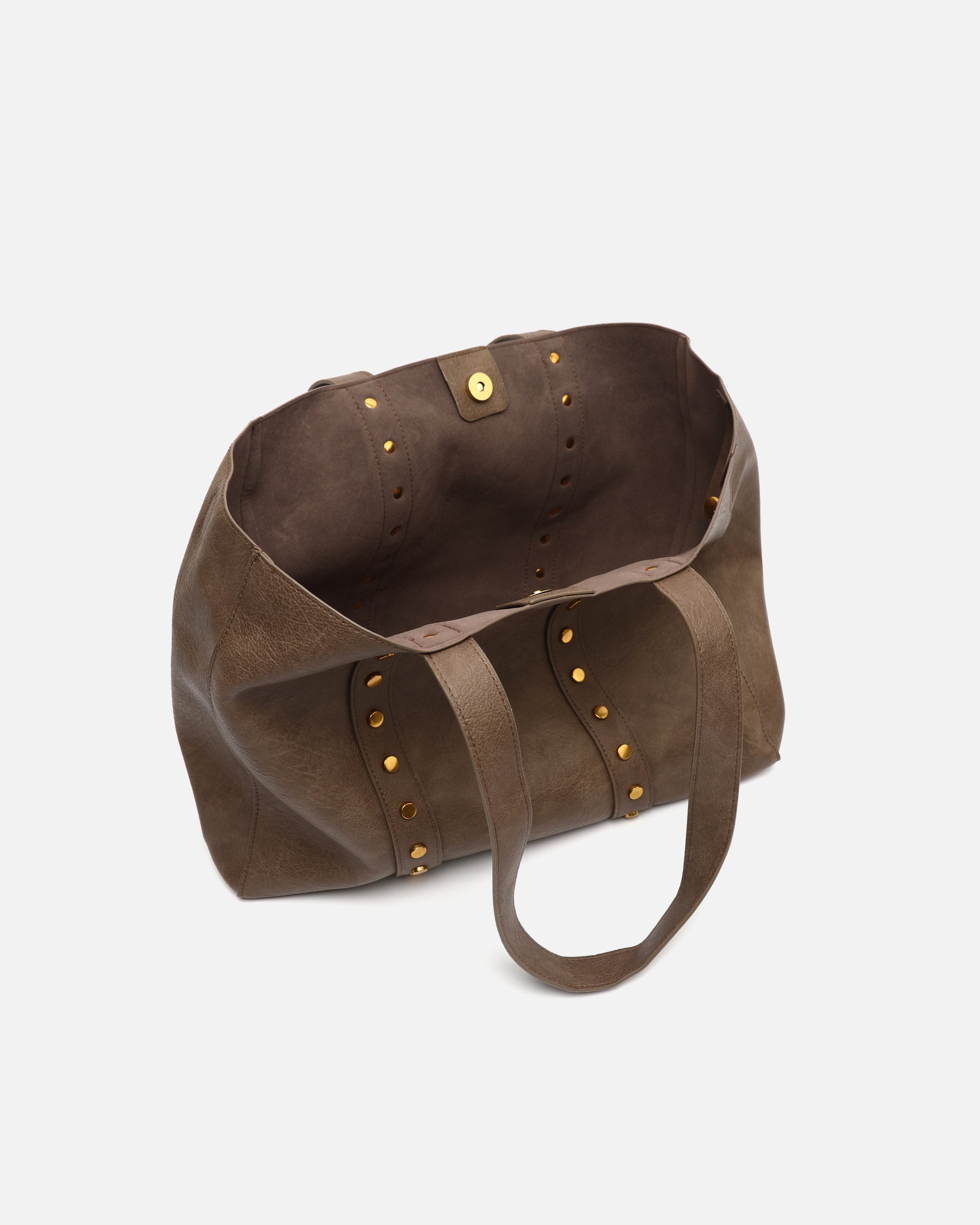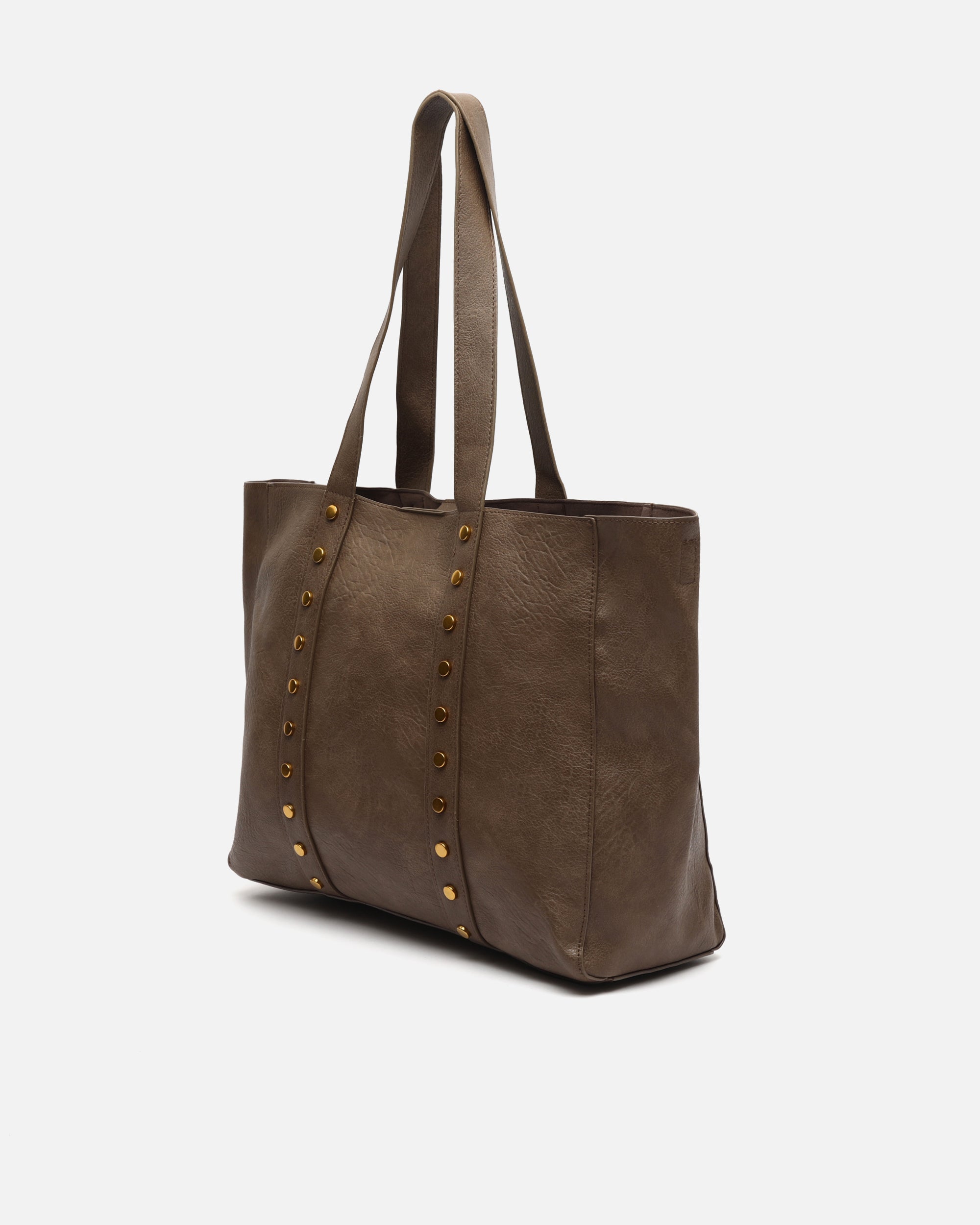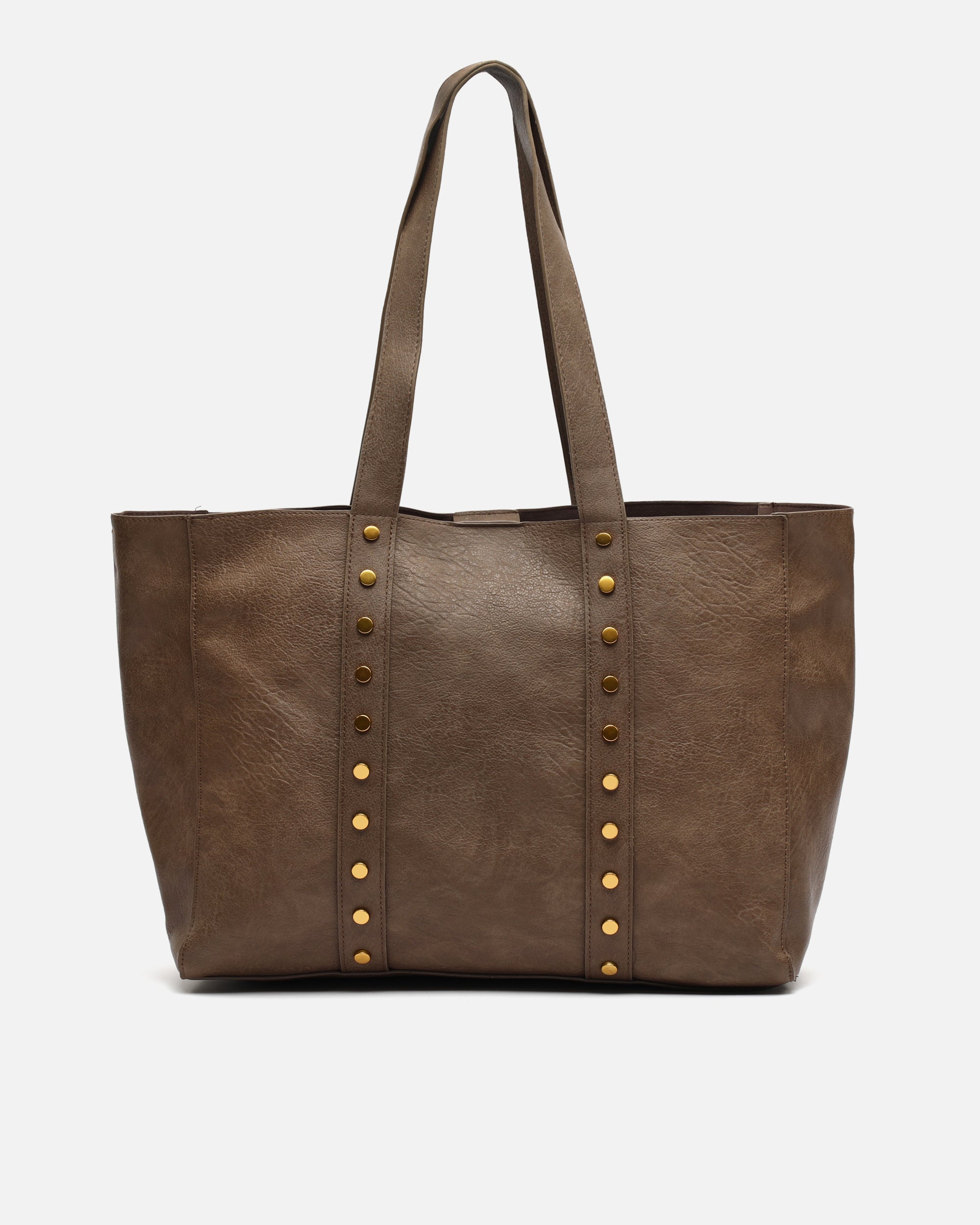 Junichi de Misako est un grand sac cabas qui se distingue par sa fonctionnalité et son design aux détails soignés. Confectionné dans un simili cuir de haute qualité et orné de clous métalliques sophistiqués sur le devant qui lui ajoutent une touche de caractère, ce modèle est un indispensable de votre garde-robe.