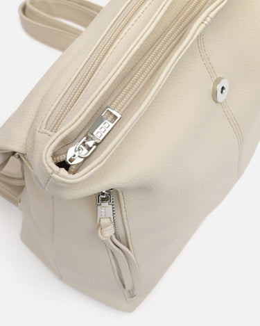 Confectionné dans un simili cuir à la texture douce, il se distingue par sa silhouette épurée et son rabat supérieur à fermeture magnétique. Les fermetures éclair latérales apparentes lui confèrent un aspect dynamique, tandis que la poche arrière antivol ajoute un plus en matière de sécurité. Son intérieur spacieux, avec double compartiment sous le rabat, en fait l'allié idéal pour les journées intenses où vous avez besoin d'espace et d'une organisation intelligente.