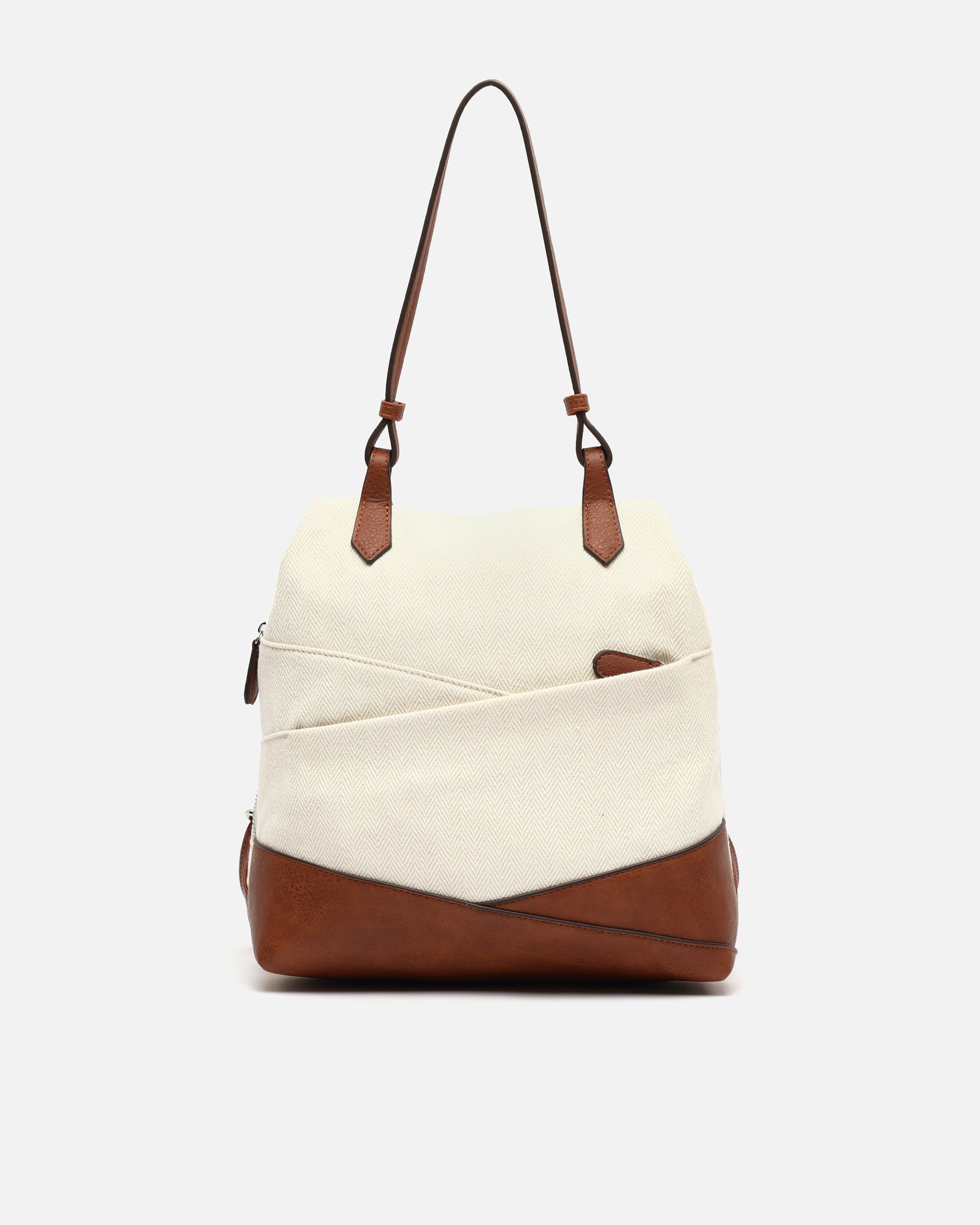 Fabriqué à partir d'une combinaison de tissus de haute qualité et de finitions en simili cuir qui lui confèrent une touche d'élégance. Sa fermeture principale est stratégiquement placée à l'arrière pour offrir une meilleure protection, tandis que ses fermetures éclair métalliques, ses poches extérieures et ses longues poignées apportent confort et organisation. Les anses permettent de le porter confortablement à l'épaule ou sur le dos, s'adaptant ainsi aux routines actives ou aux escapades du week-end.