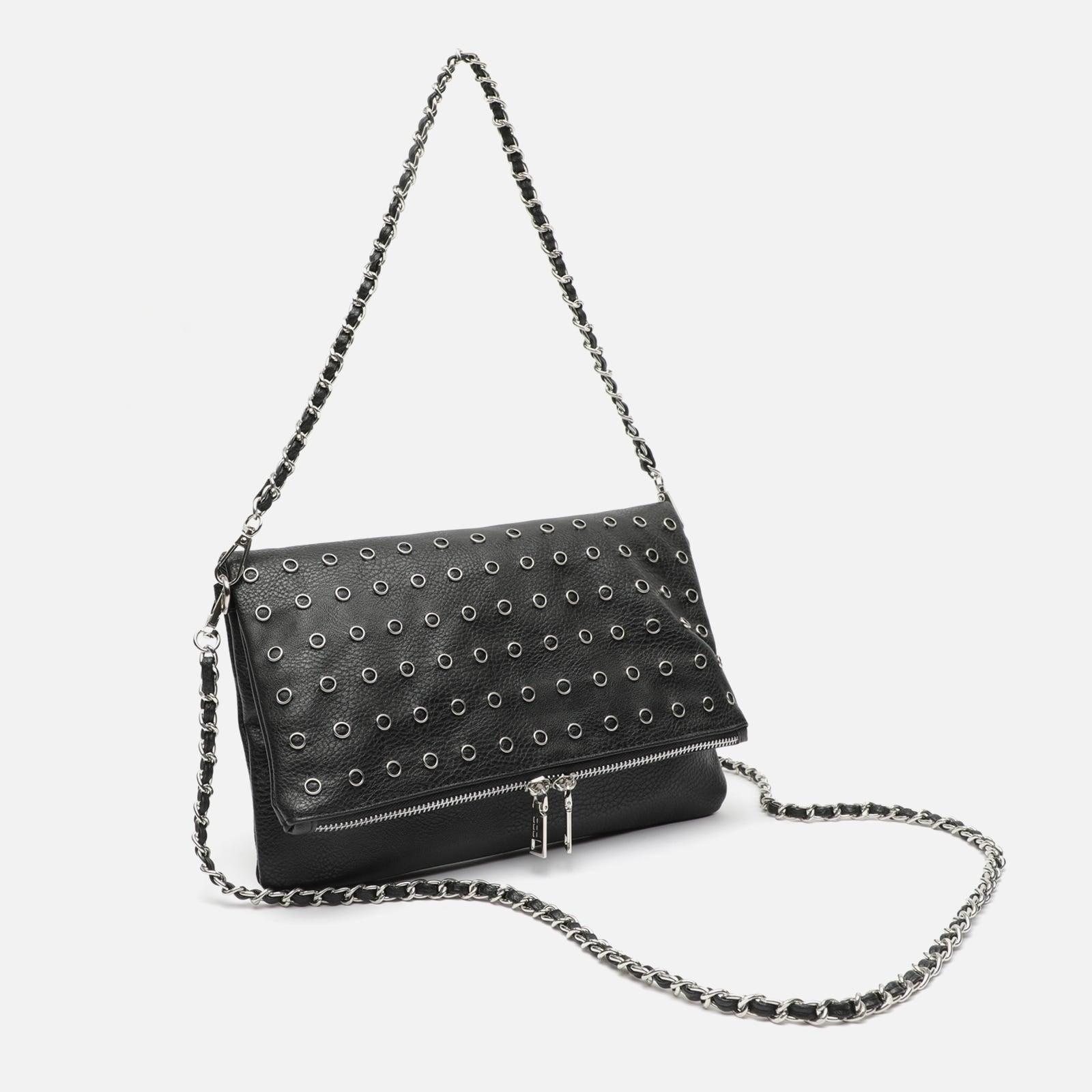Sac à bandoulière avec détails métalliques et double poignée