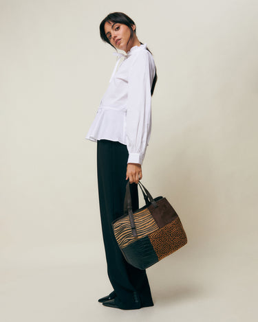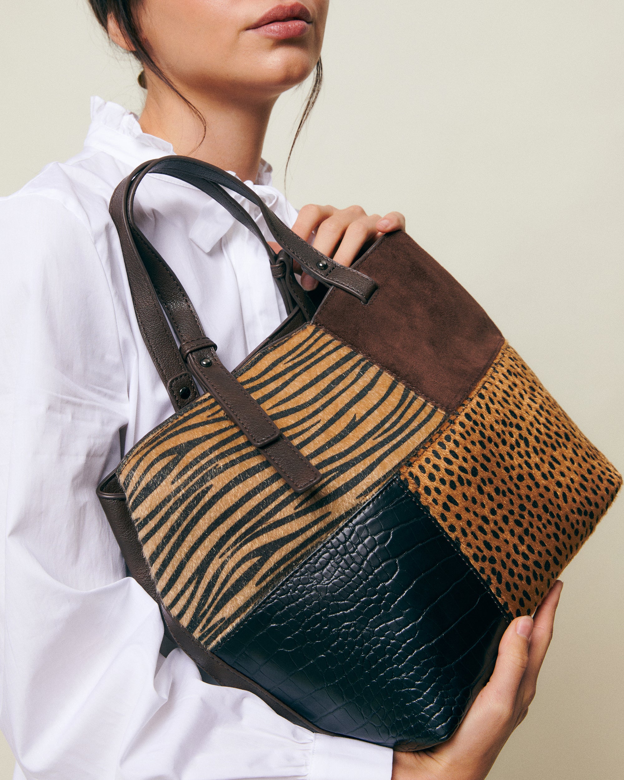 Ziver grand sac à bandoulière à imprimé patchwork animalier