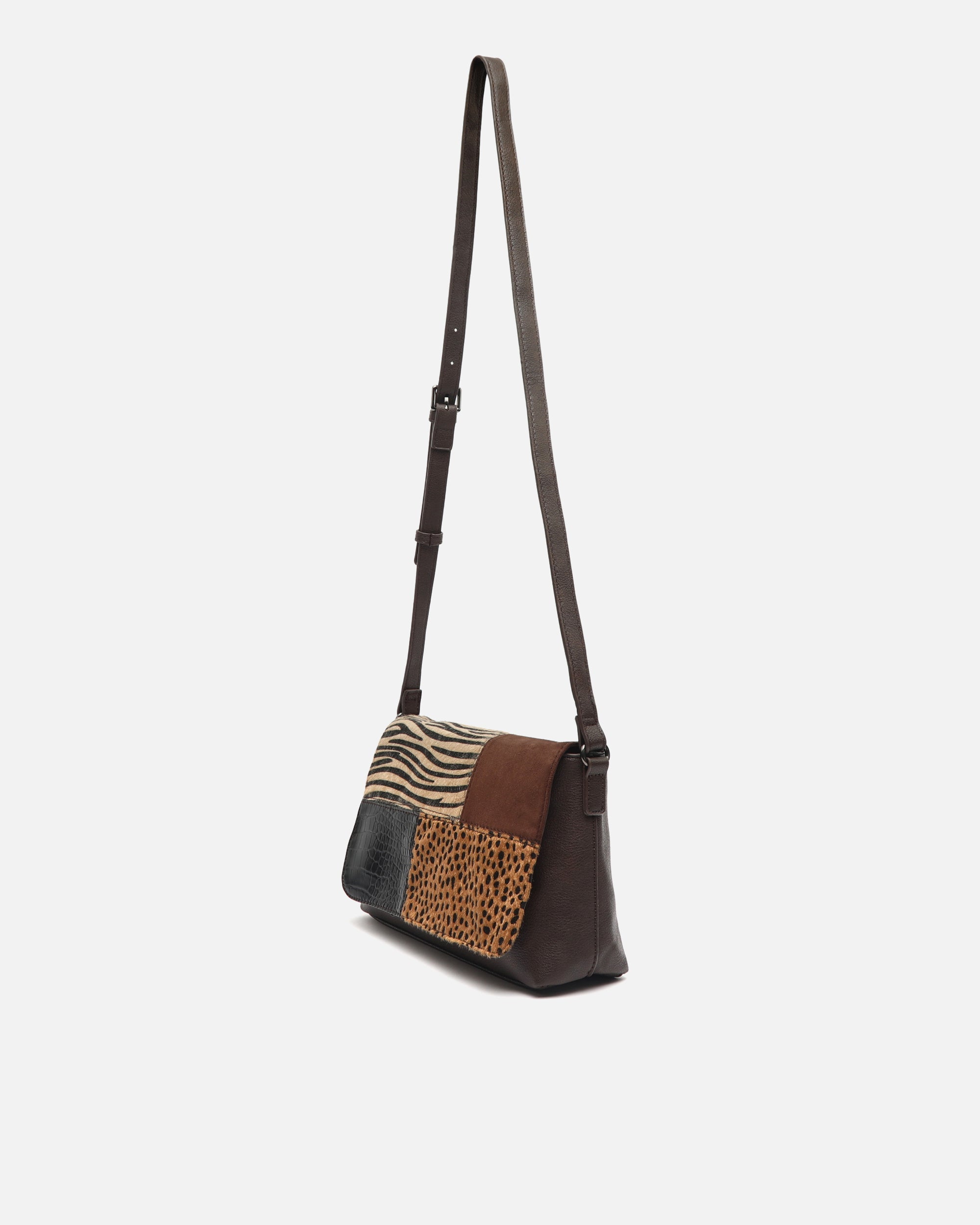 Sac à bandoulière à rabat avec imprimé patchwork animalier
